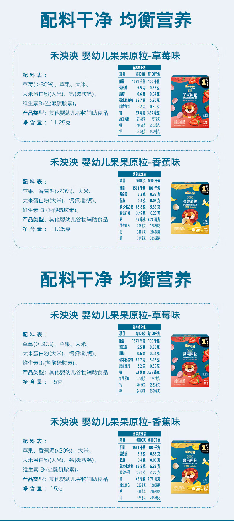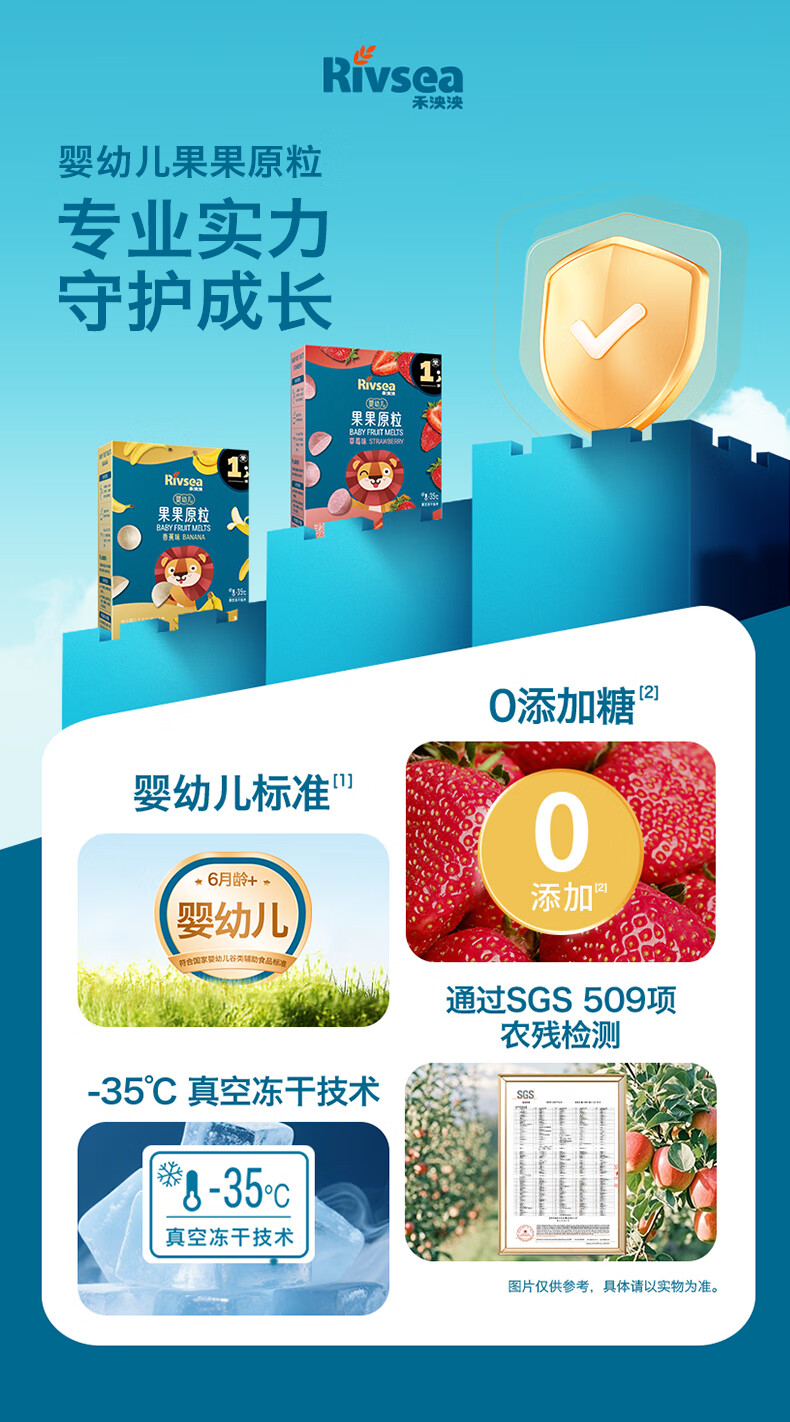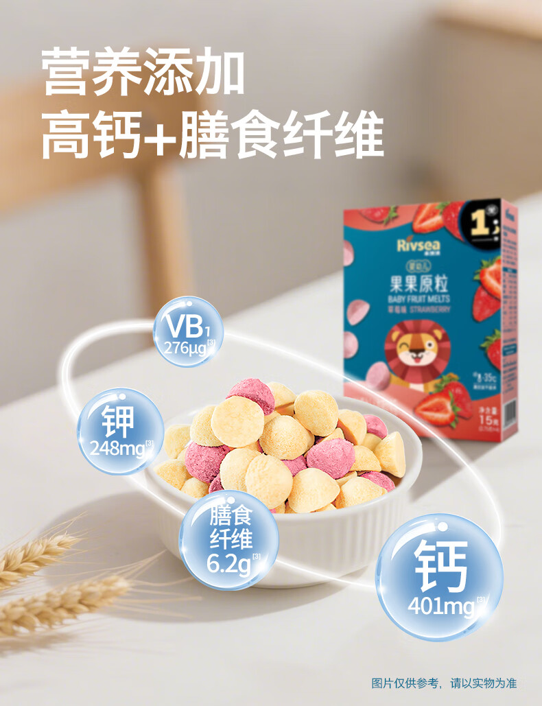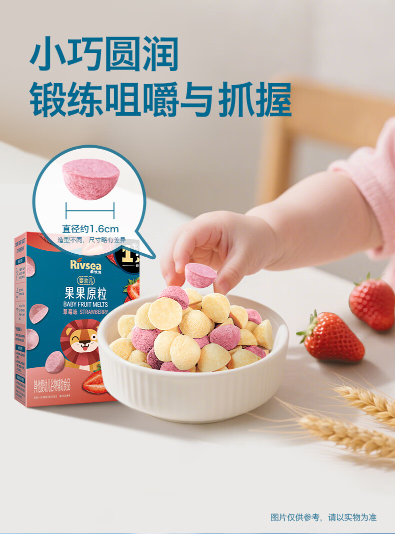 禾泱泱婴幼儿果果原粒草莓味15g高钙宝宝零食小巧练抓握6月+