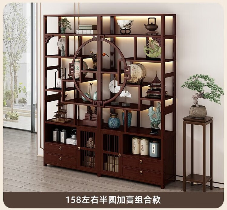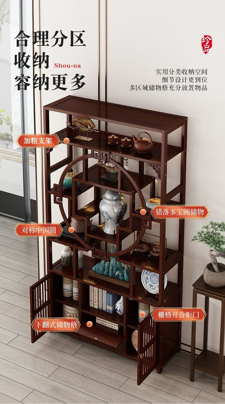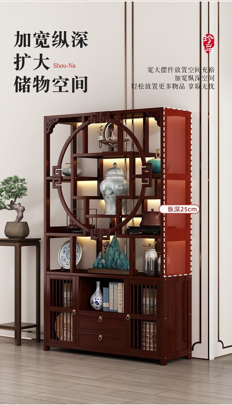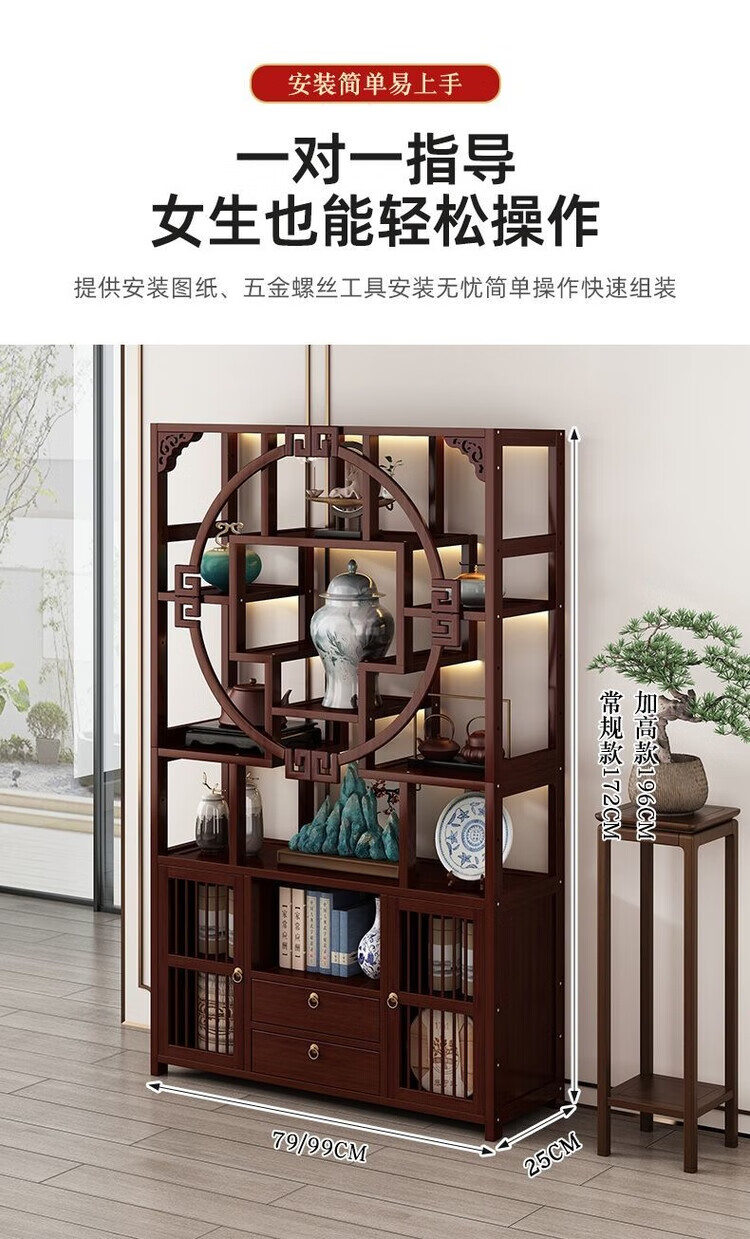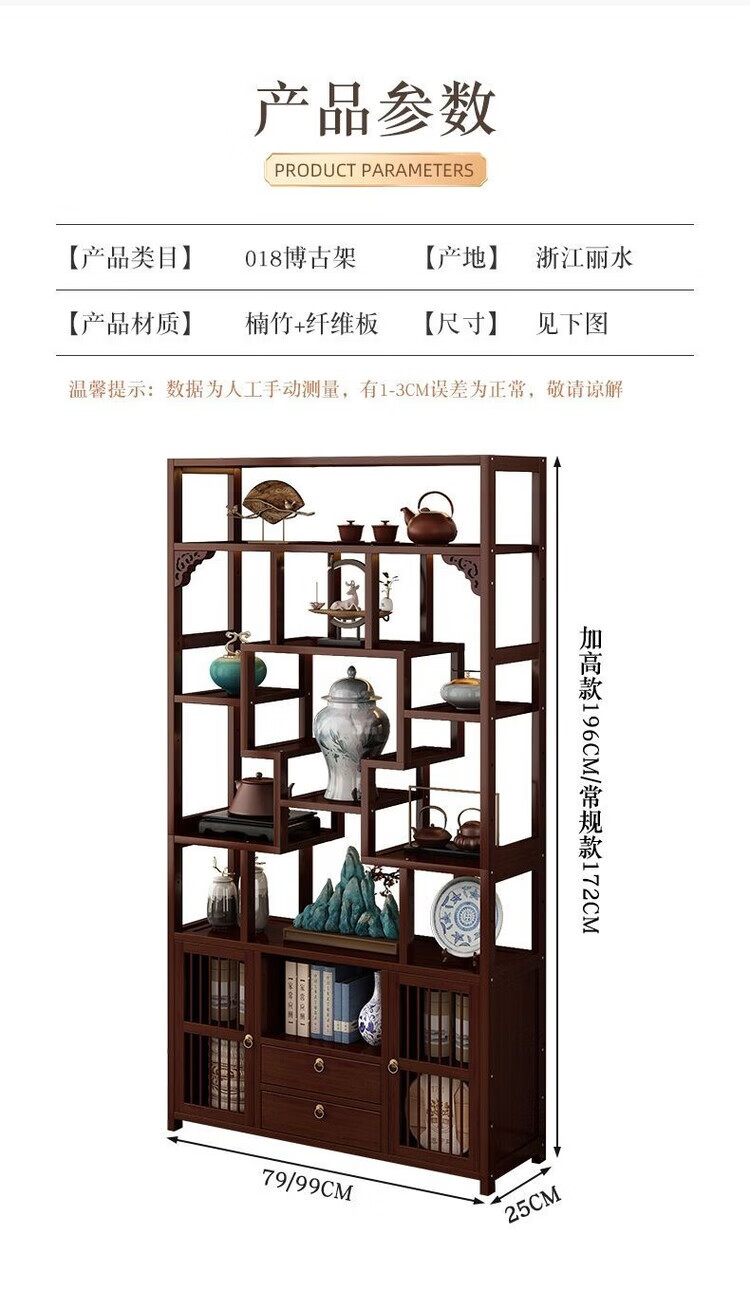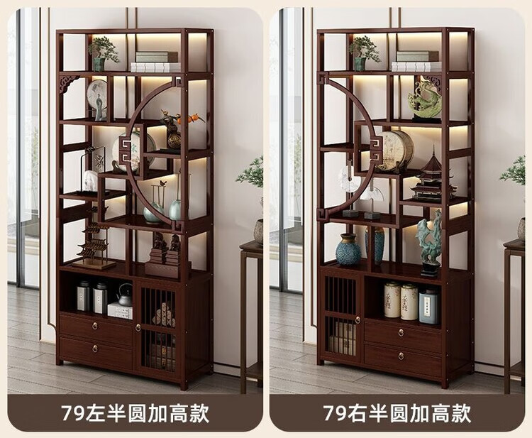 倘然之家茶室博古架清仓竹制茶柜收纳展示架客厅隔断酒柜紫砂壶摆放多宝阁 【升级加厚】长79cm左侧柜款