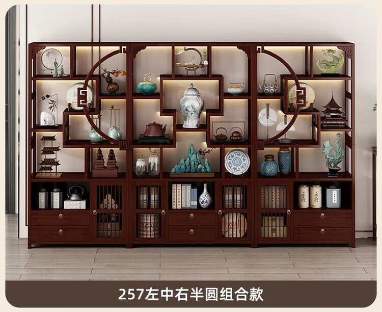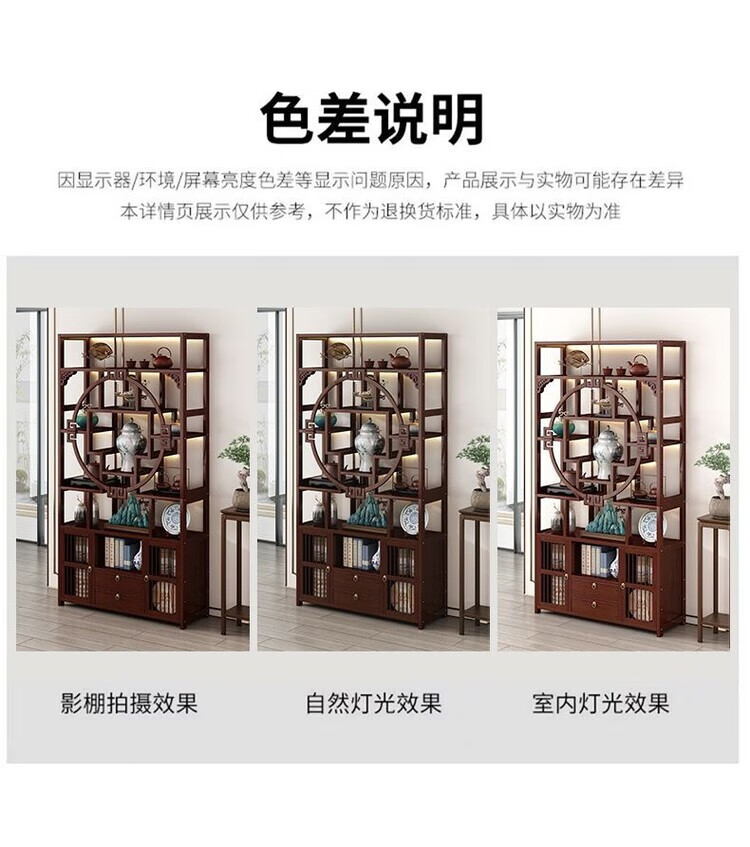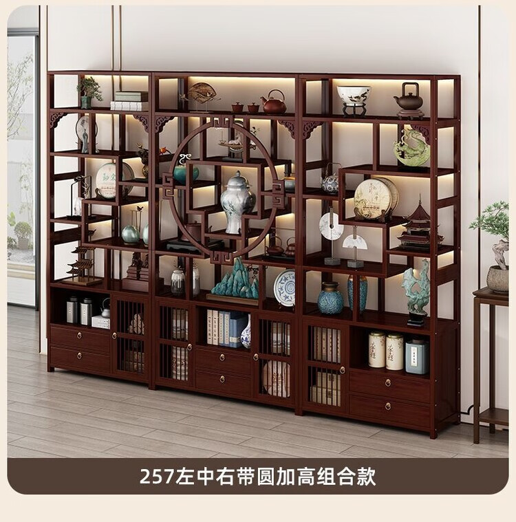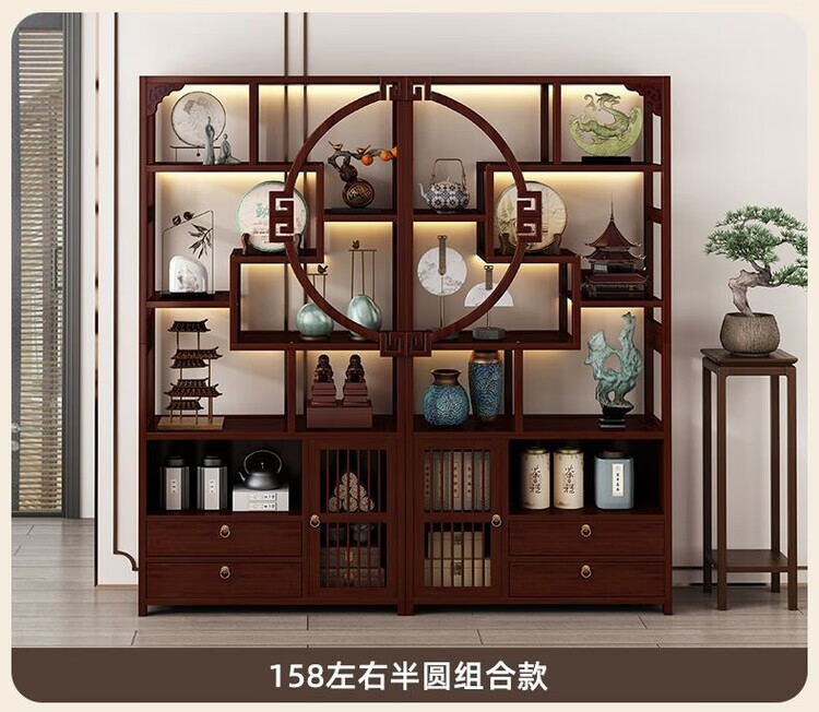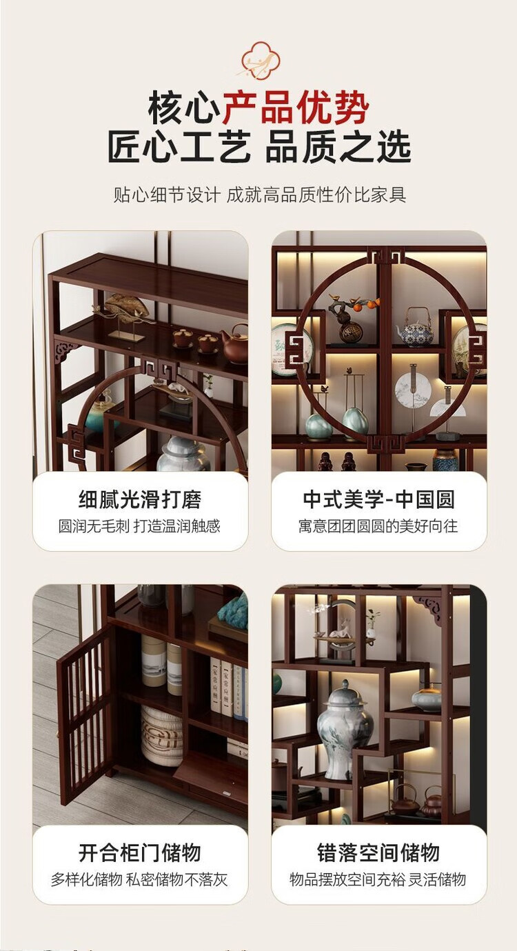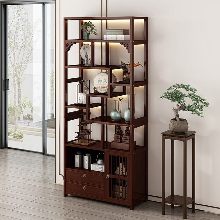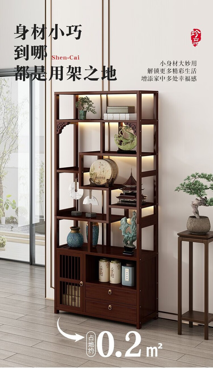 倘然之家茶室博古架清仓竹制茶柜收纳展示架客厅隔断酒柜紫砂壶摆放多宝阁 【升级加厚】长79cm左侧柜款
