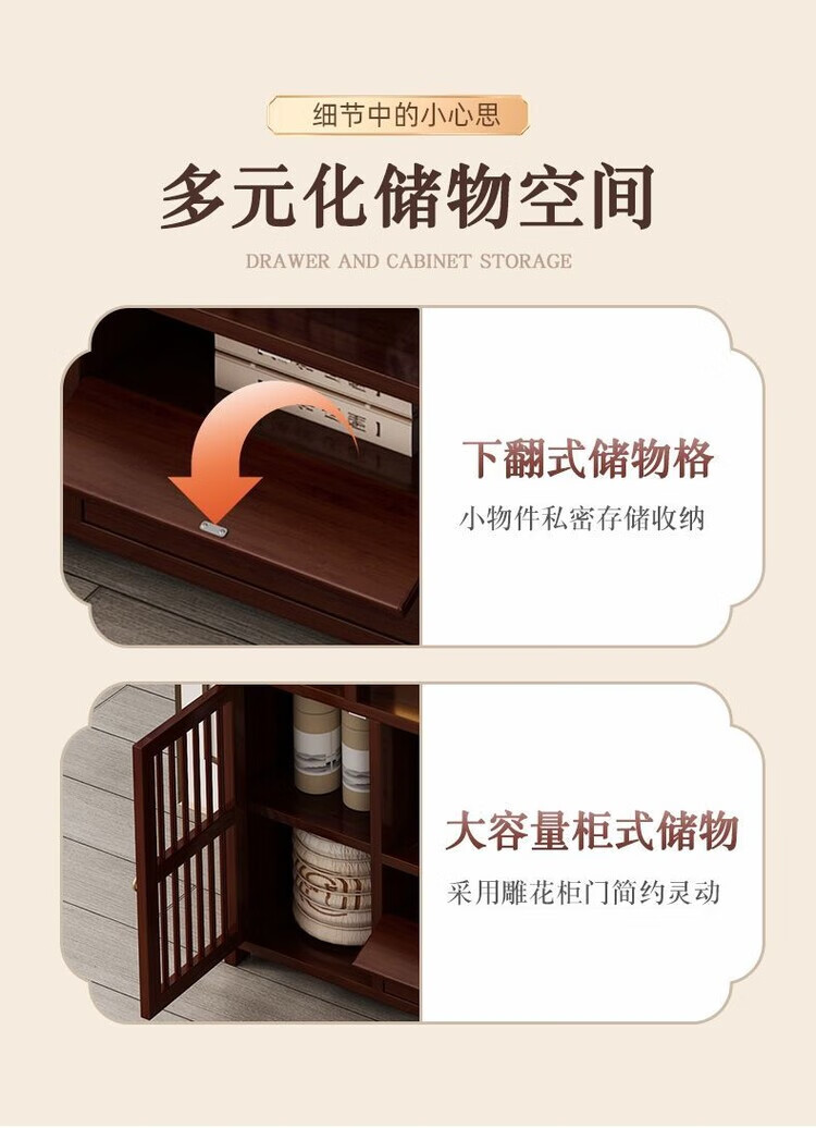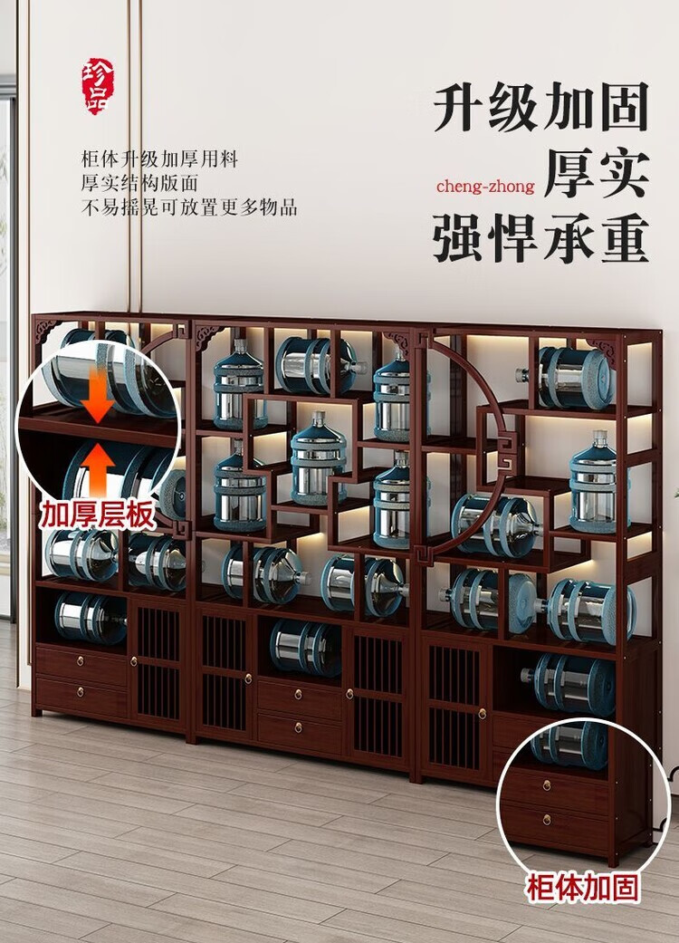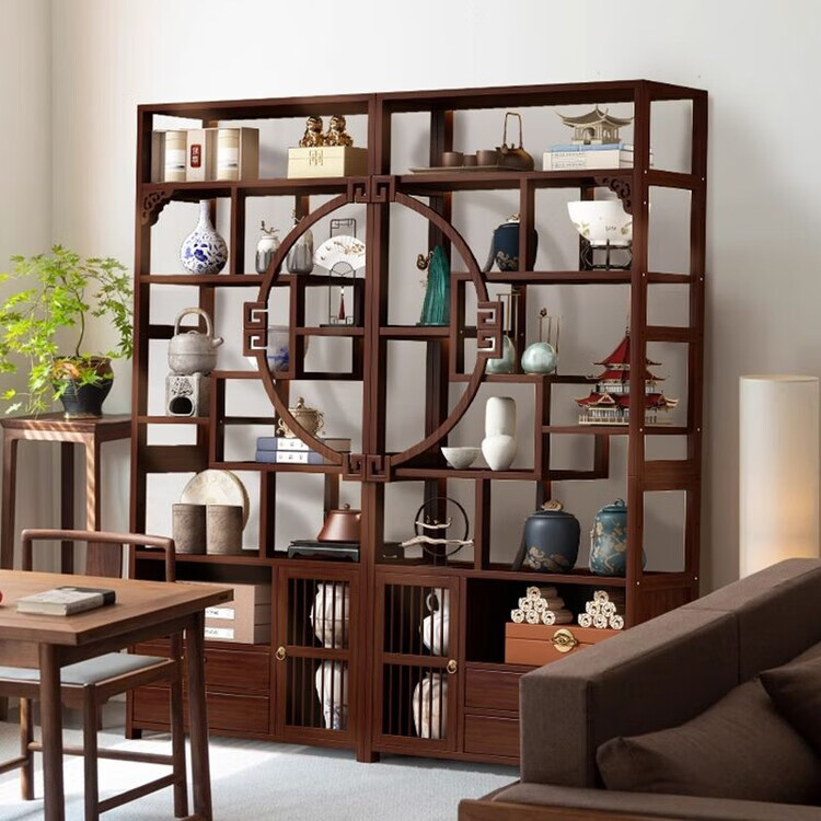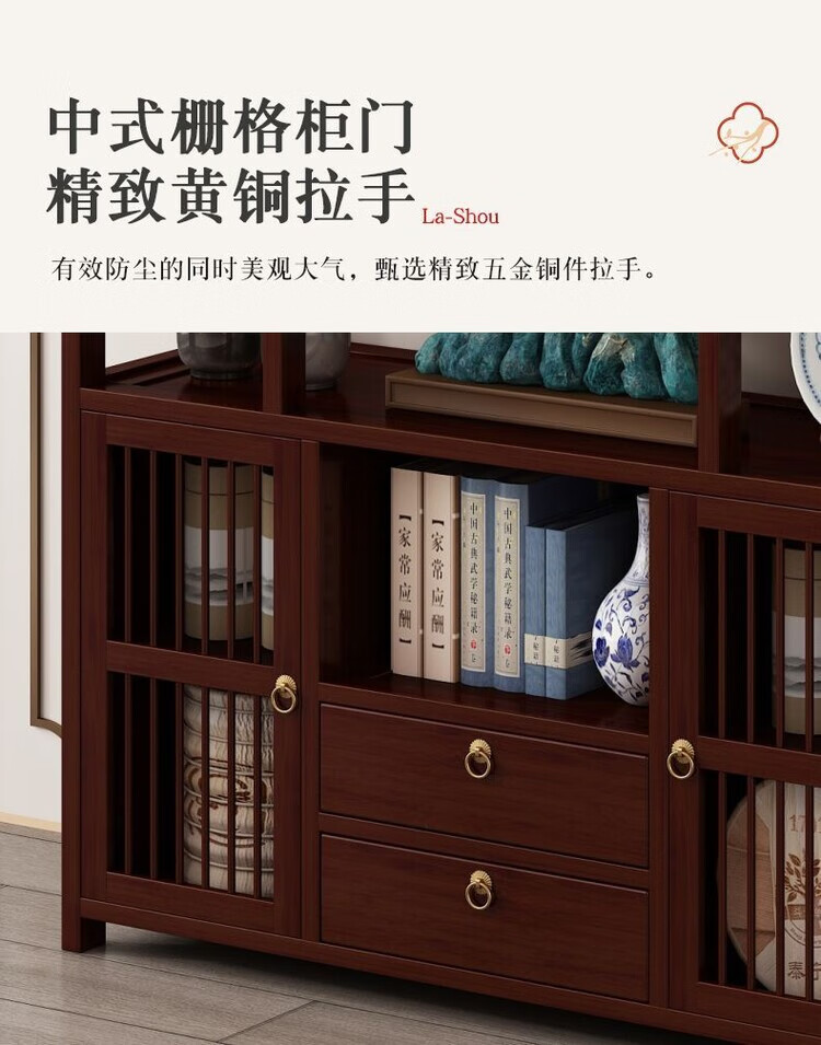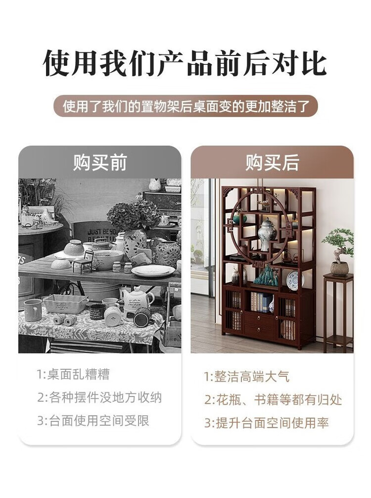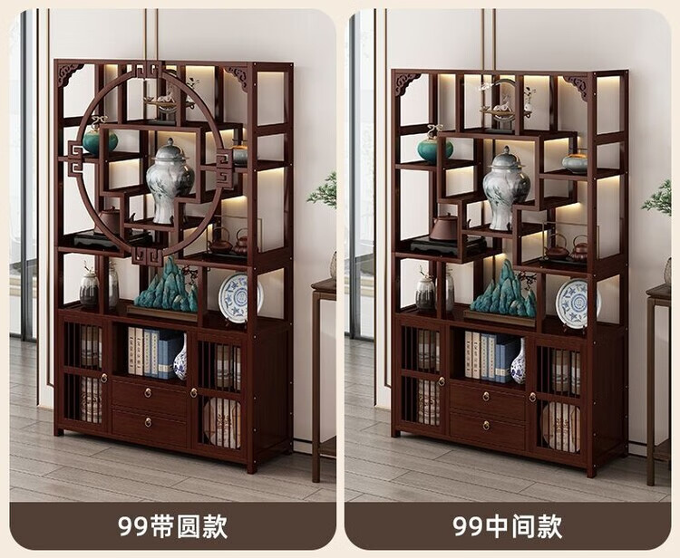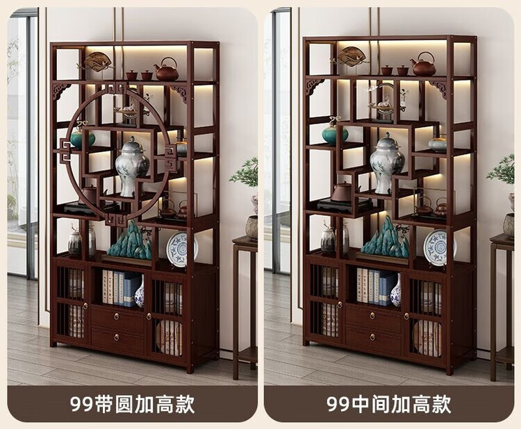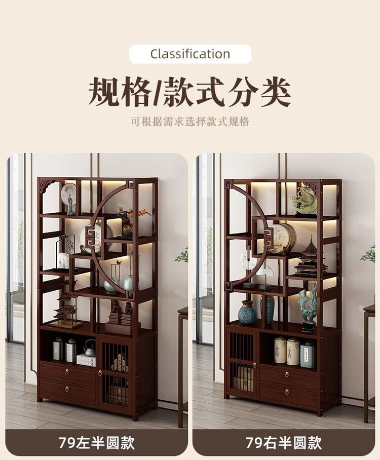 倘然之家茶室博古架清仓竹制茶柜收纳展示架客厅隔断酒柜紫砂壶摆放多宝阁 【升级加厚】长79cm左侧柜款