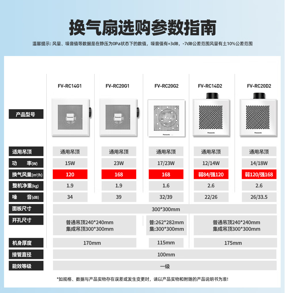 松下(Panasonic)排气扇吸顶式厨房抽风机吊顶卫生间强力排风扇通风管道换气扇 FV-RC20G1排风量168【通用吊顶】