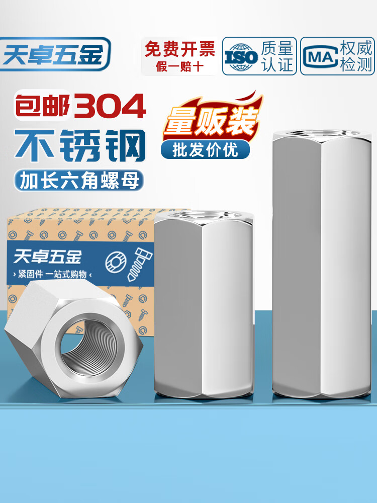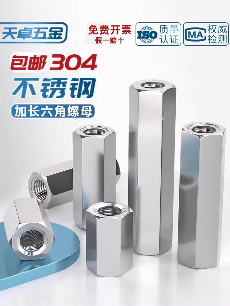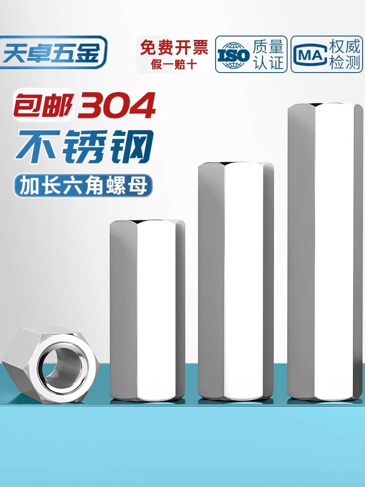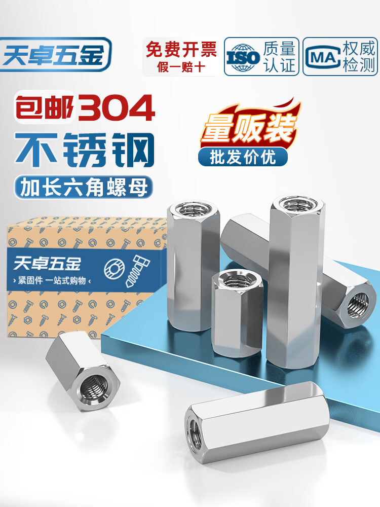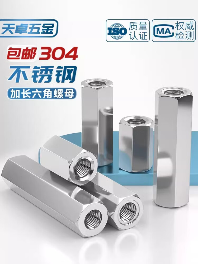 天卓五金304不锈钢六角加长螺母螺丝帽丝杆牙条对接螺杆接头连接母MM3-M24 M2*3*S4-30个