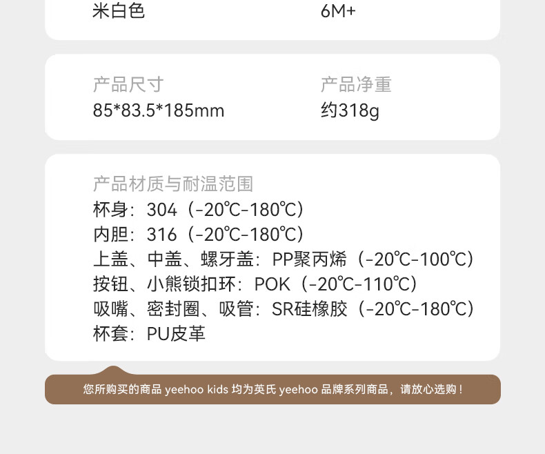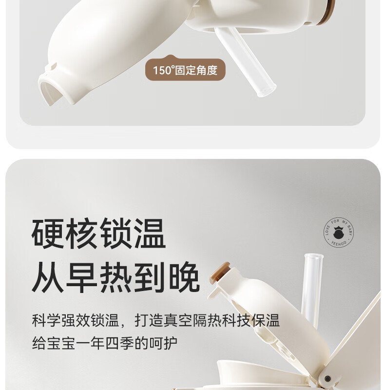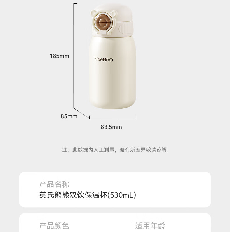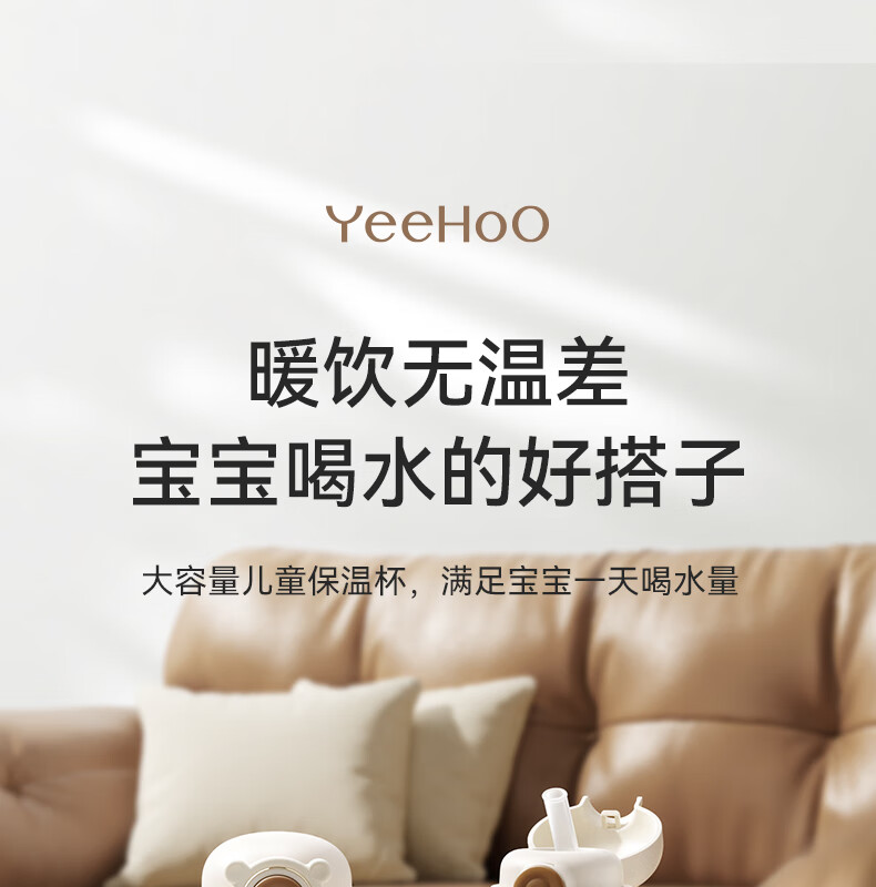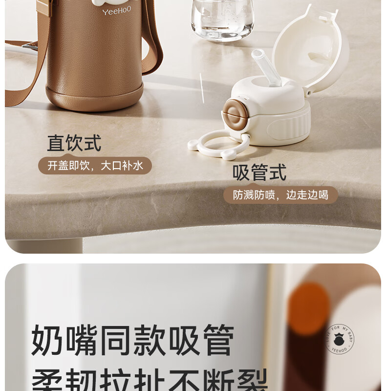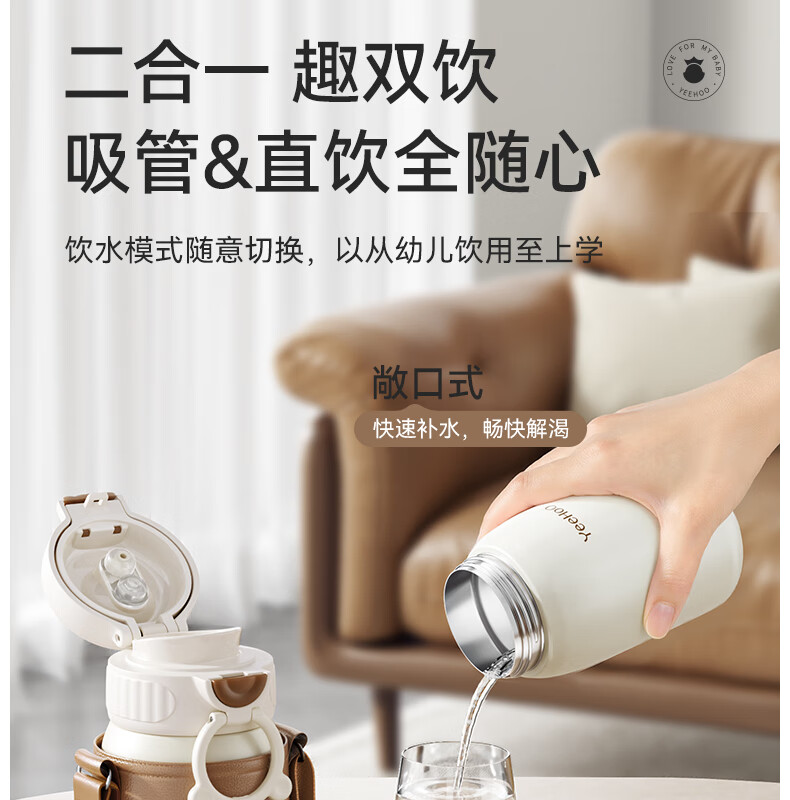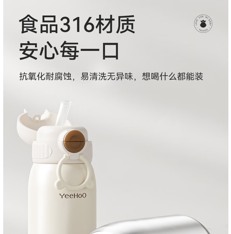 英氏(YEEHOO)儿童保温杯宝宝1到3岁婴儿奶瓶吸管直饮水杯婴幼儿园一岁以上 儿童双饮保温杯【吸管+直饮】+杯套
