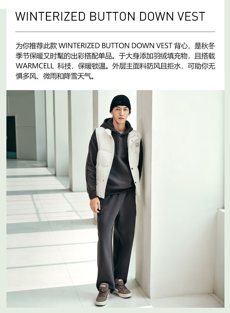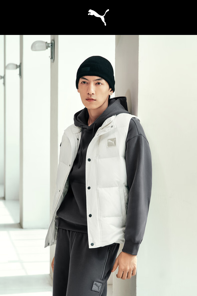 彪马(PUMA)防风拒水80绒鸭绒羽绒运动背心男新款冬季保暖马甲635755 黑色-01 M (175/96A)