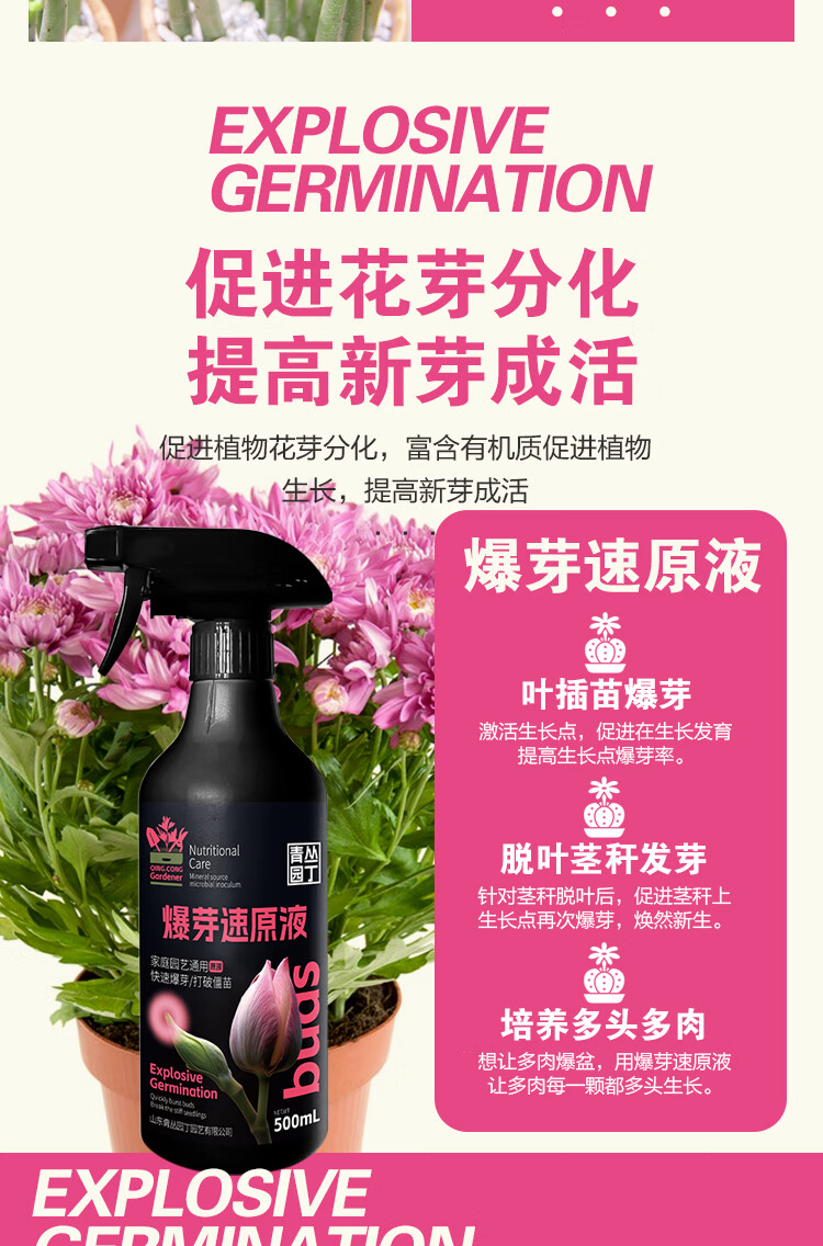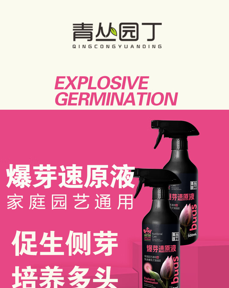 青丛园丁爆芽速原液多芽促芽催芽分化叶插花植物通用型营养液绿植肥料 爆芽速原液500ml*拍2发4瓶【粉丝福利】
