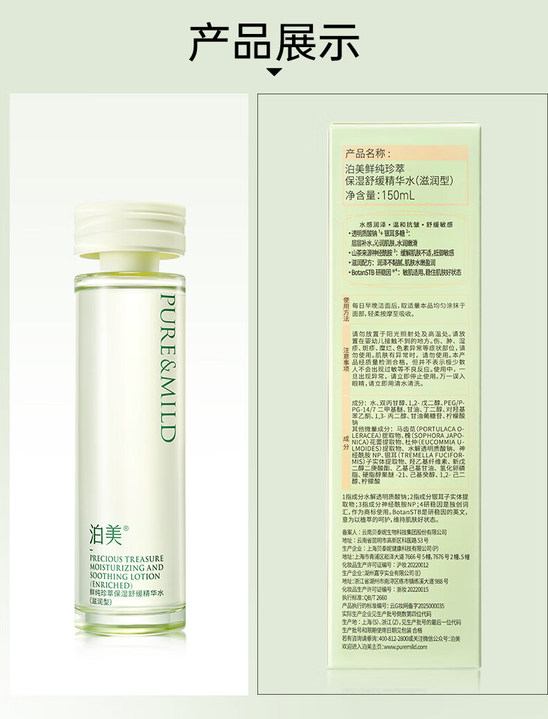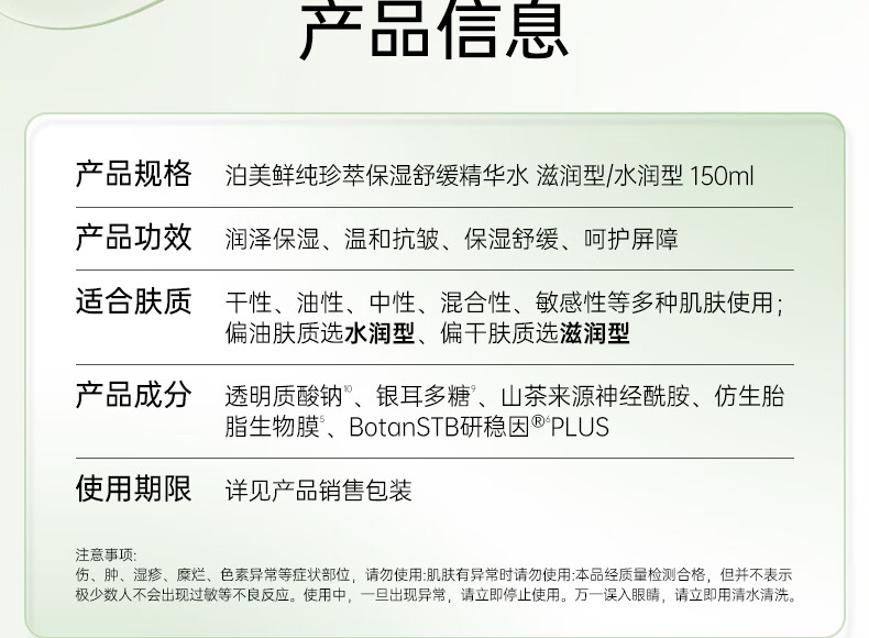 泊美鲜纯珍萃保湿精华水深补水渗透舒缓150ml 滋润型送女友礼物