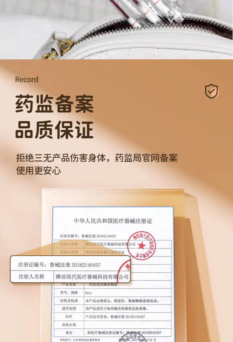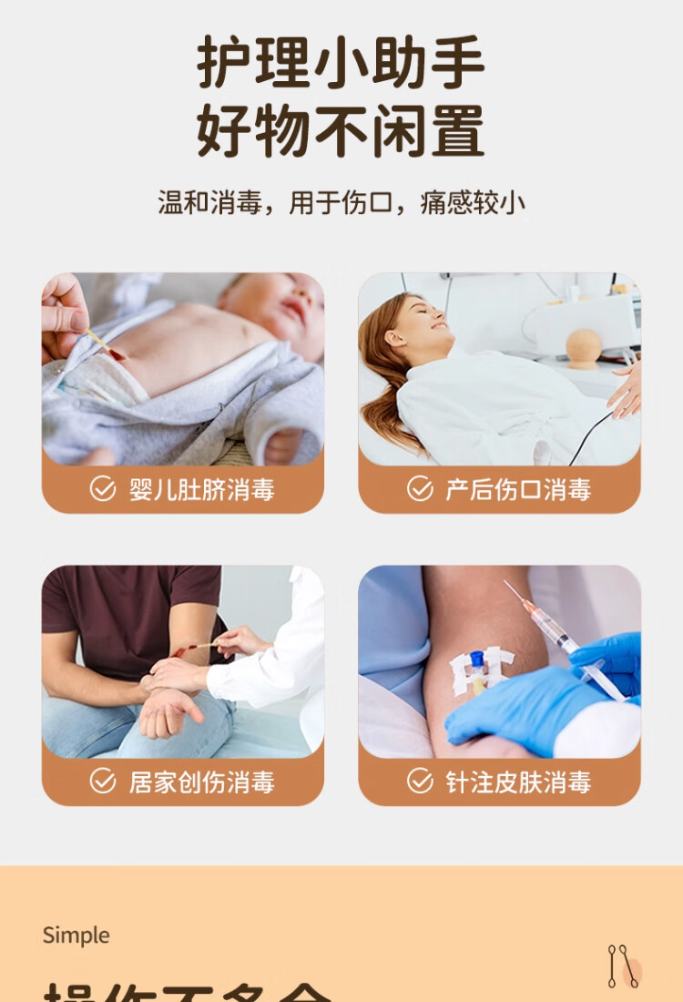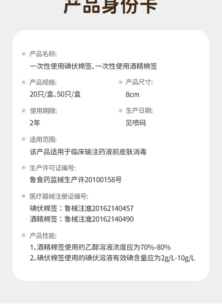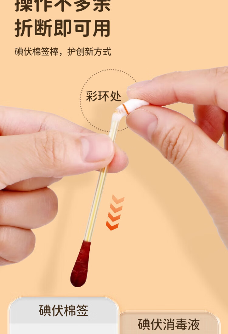 艾享医用碘伏棉签一次性婴儿肚脐护理成人伤口消毒棉棒独立包装50支