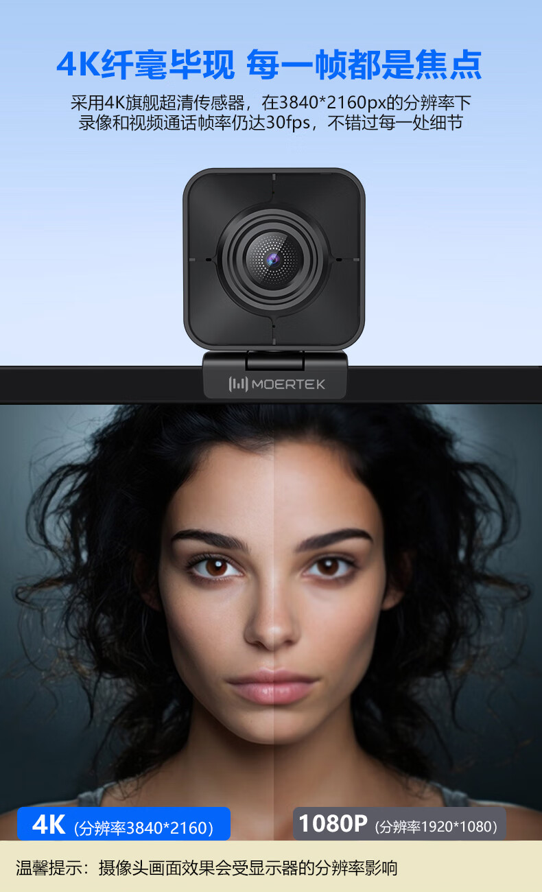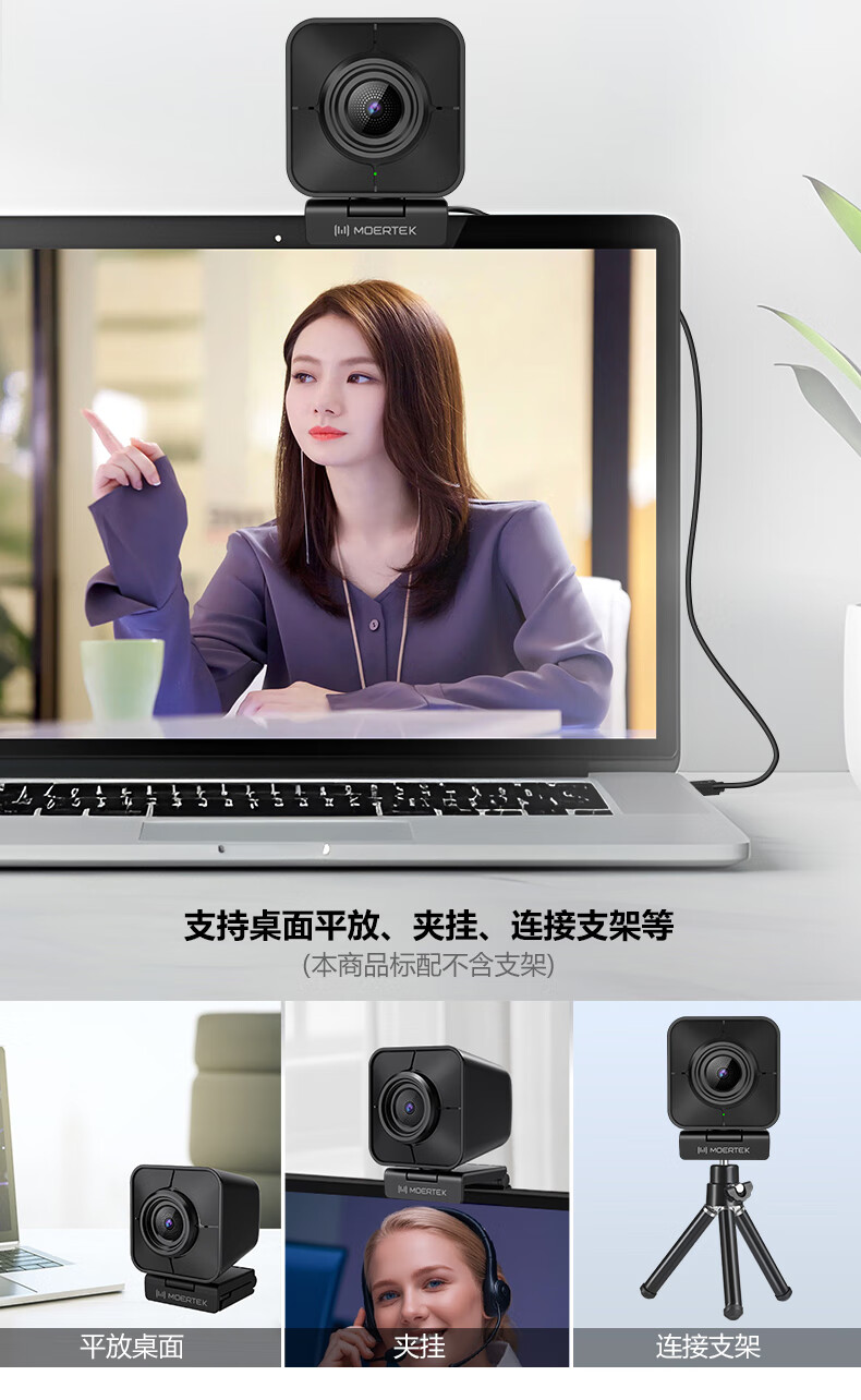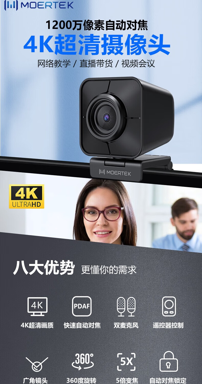 Moertek电脑直播摄像头台式4k超清视频会议5倍变焦1200万外接摄像头笔记本带麦克风usb高清摄像头家用网课 4K 超清摄像头*5倍变焦*免驱动 即插即用+支架