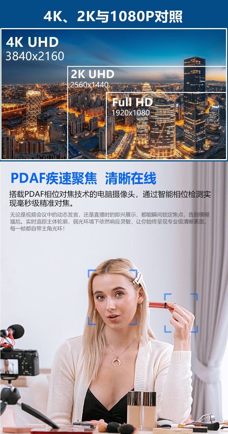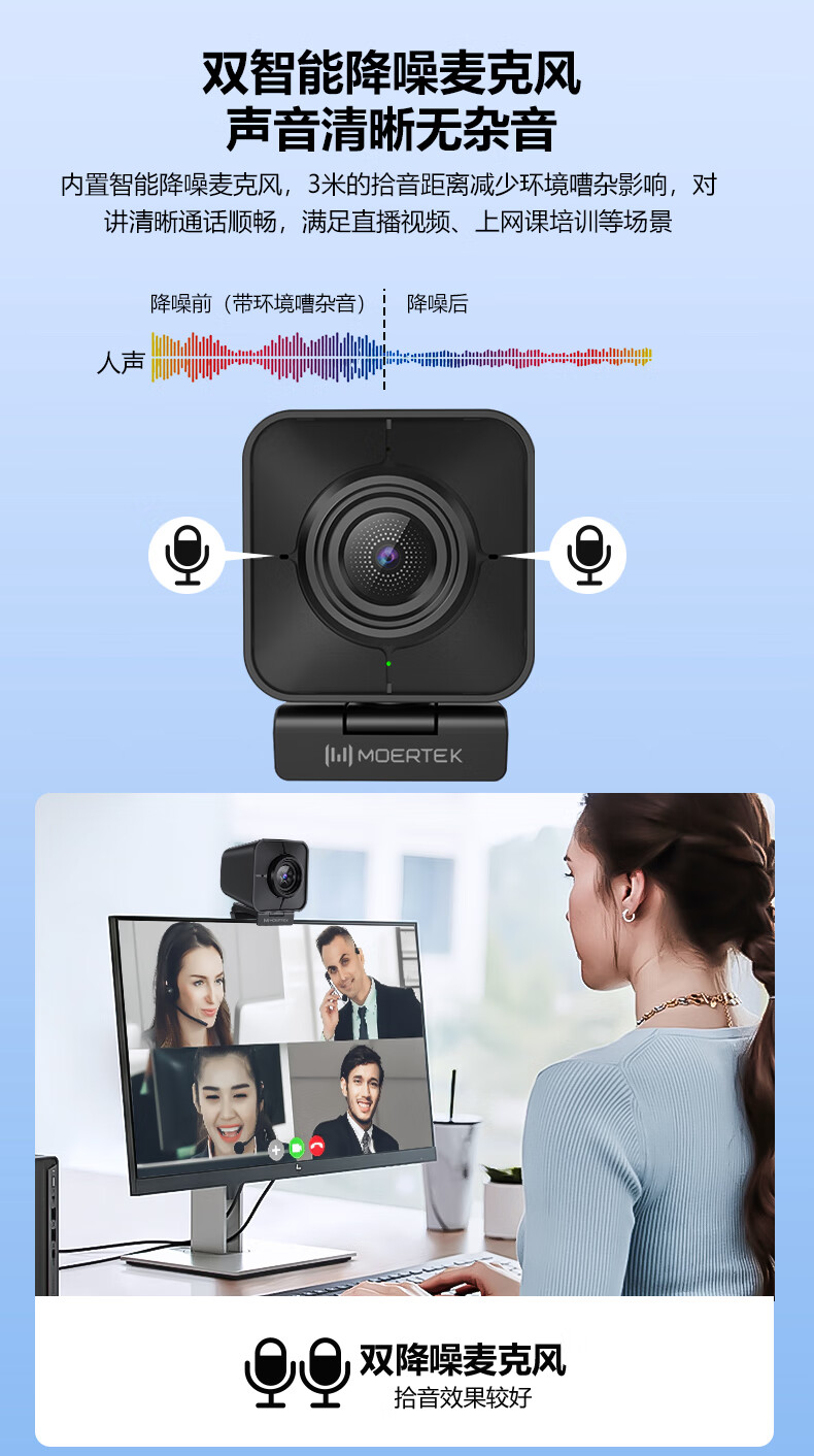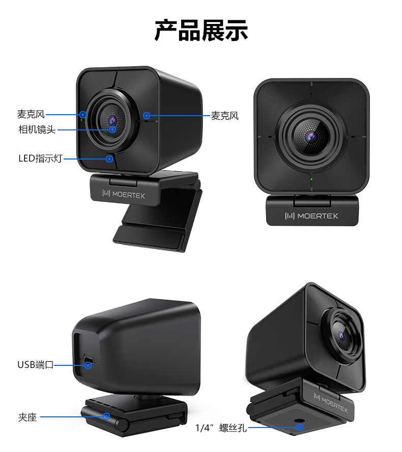 Moertek电脑直播摄像头台式4k超清视频会议5倍变焦1200万外接摄像头笔记本带麦克风usb高清摄像头家用网课 4K 超清摄像头*5倍变焦*免驱动 即插即用+支架