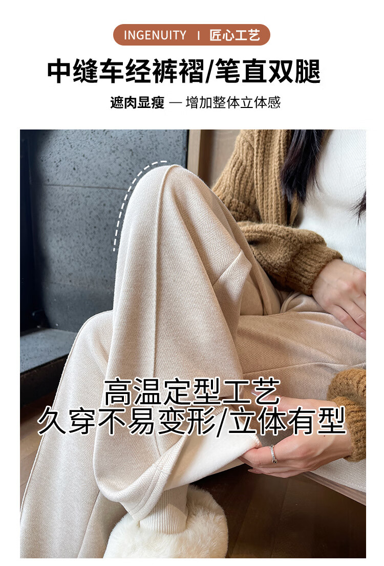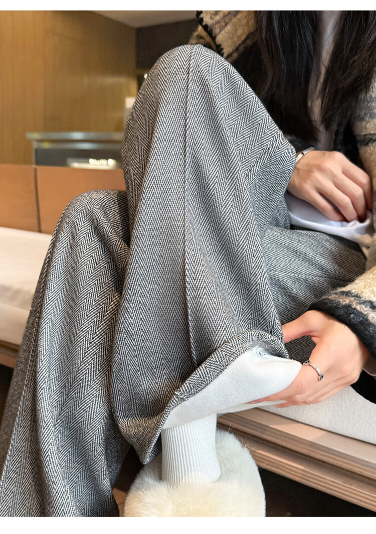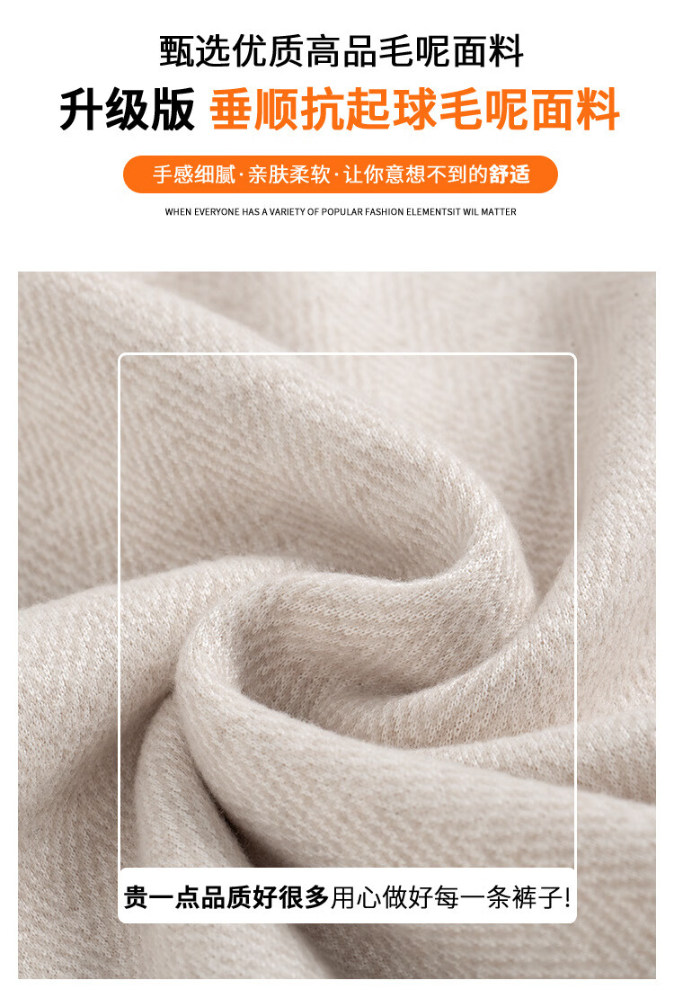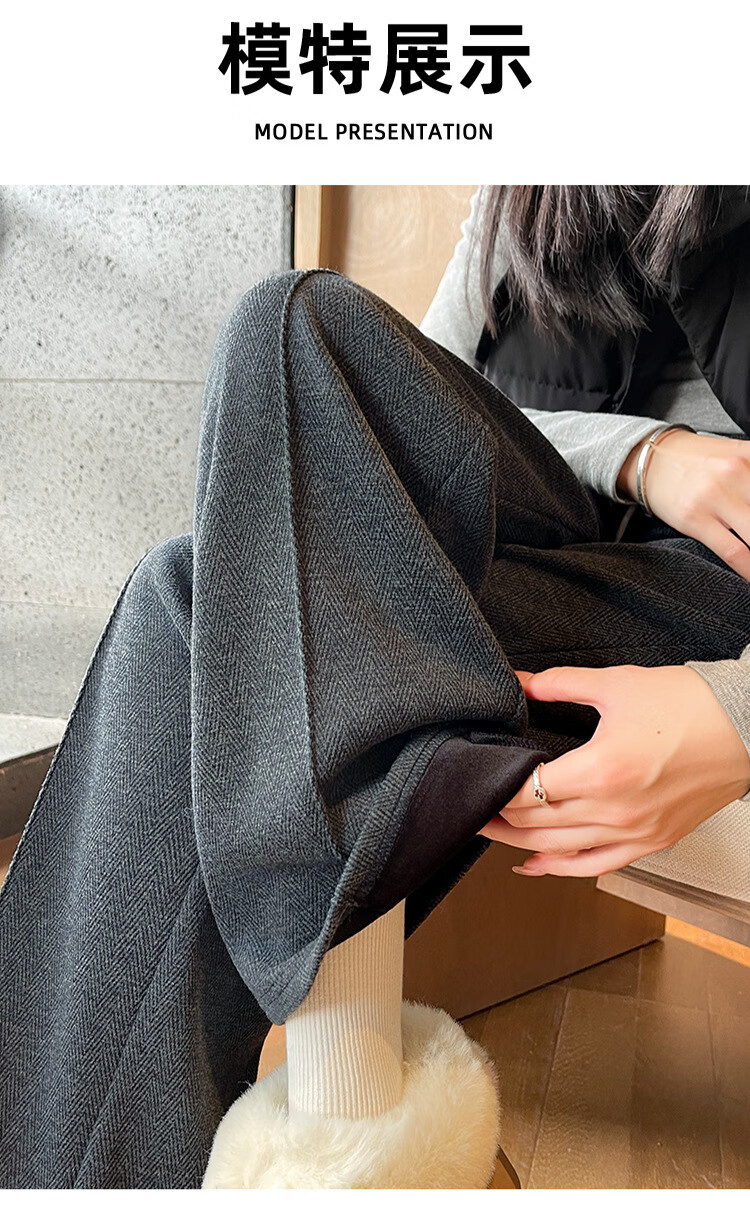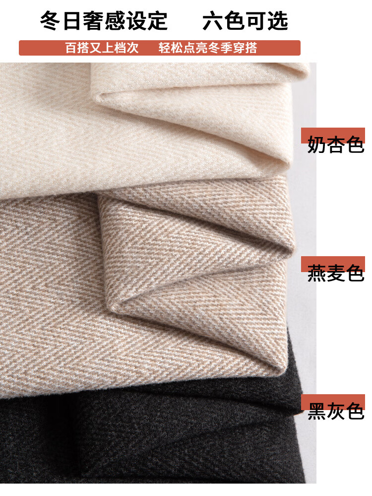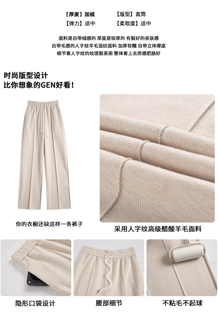浪莎羊毛毛呢阔腿裤女秋冬2025新款高腰直筒裤加绒加厚人字纹休闲裤子 奶杏色 【抗寒保暖加绒款】 M 【建议:96-110斤】