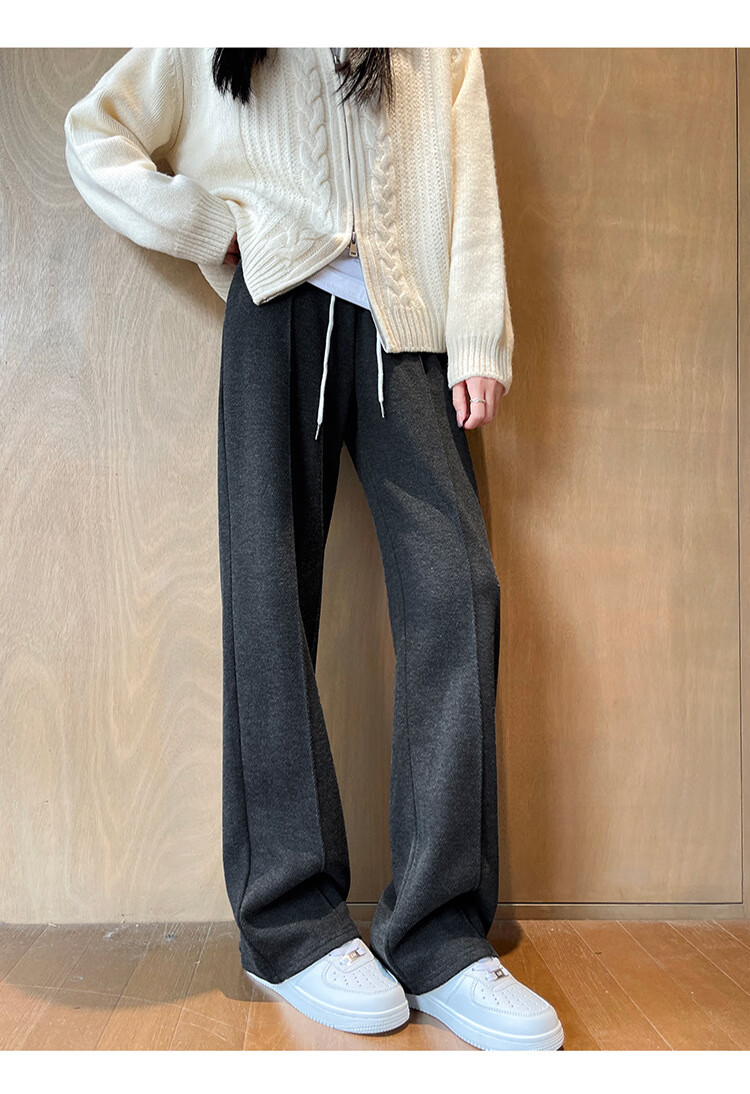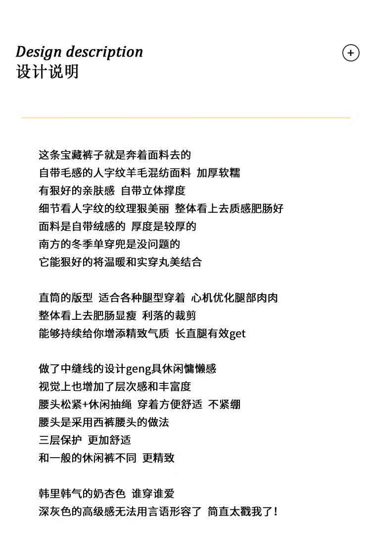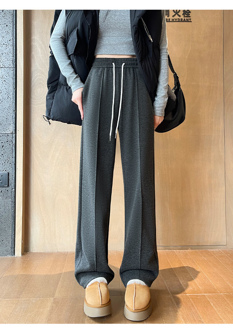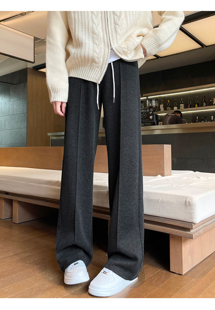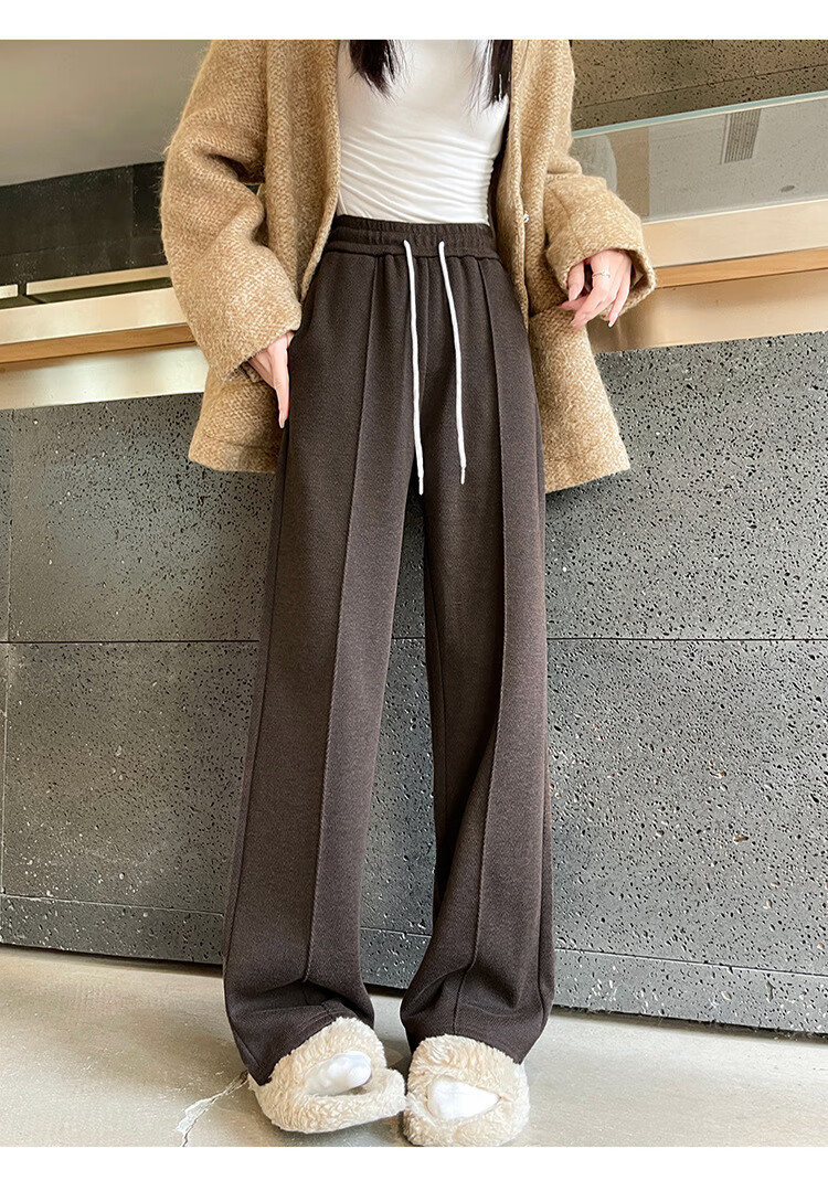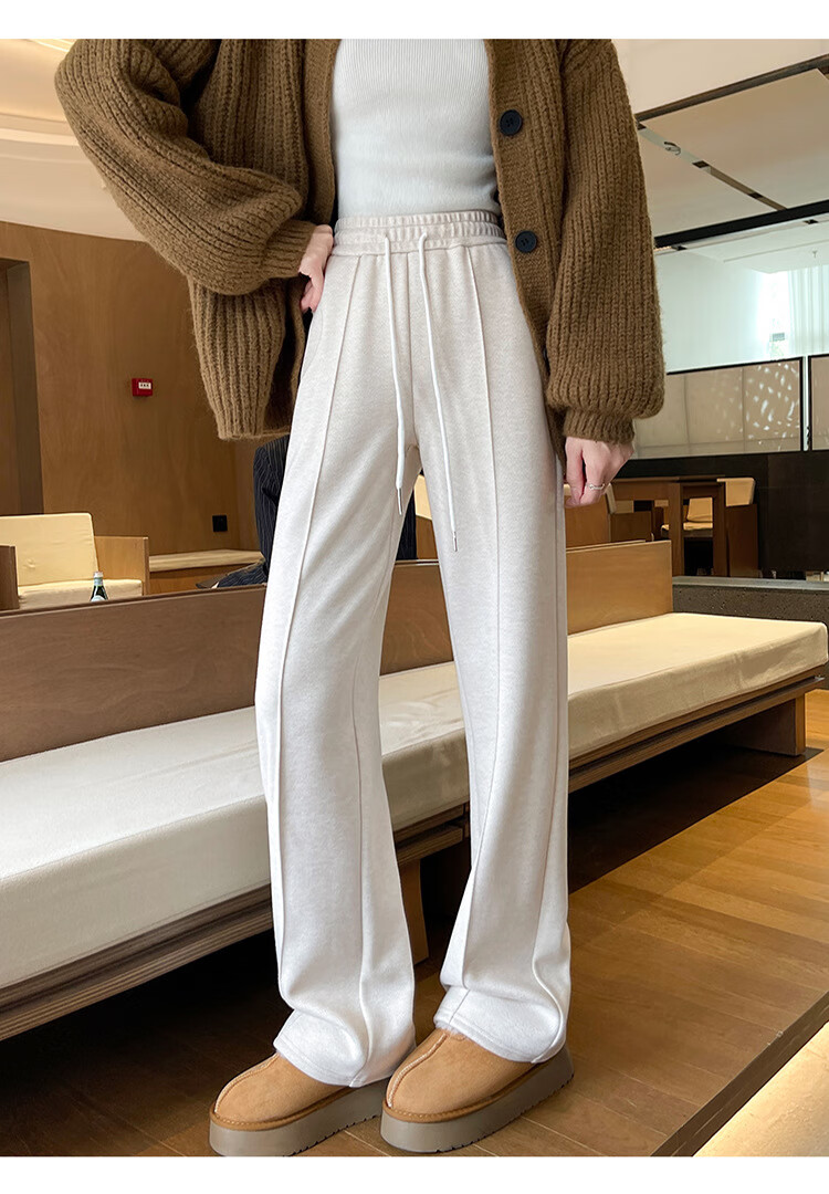 浪莎羊毛毛呢阔腿裤女秋冬2025新款高腰直筒裤加绒加厚人字纹休闲裤子 奶杏色 【抗寒保暖加绒款】 M 【建议:96-110斤】