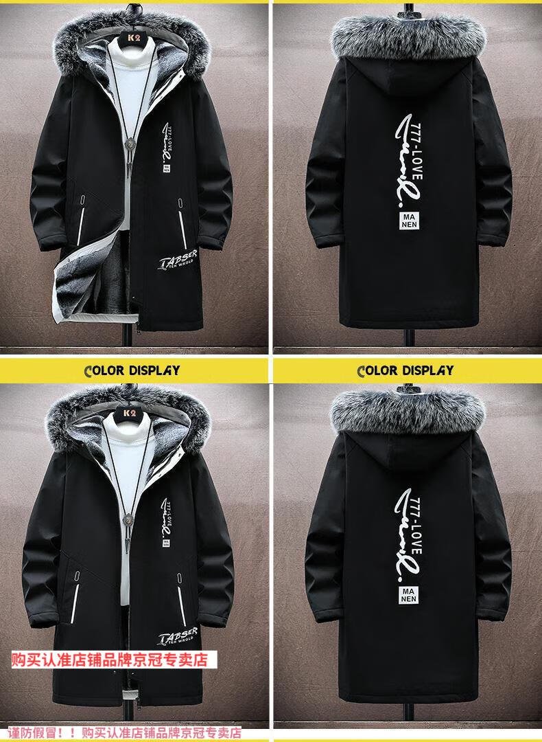 啄木鸟(TUCANO)高档羽棉绒服男中长款冬季2025新款保暖派克服冬装棉上衣加绒外套 JR916黑色【人造棉升级加绒款】 2XL