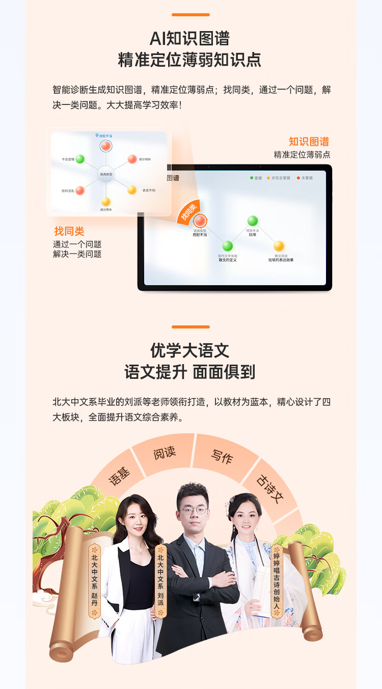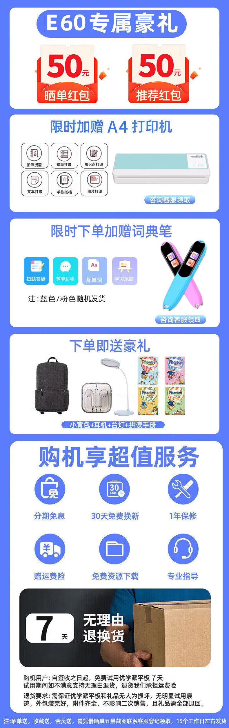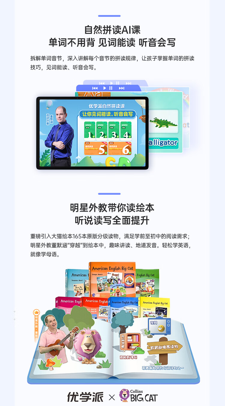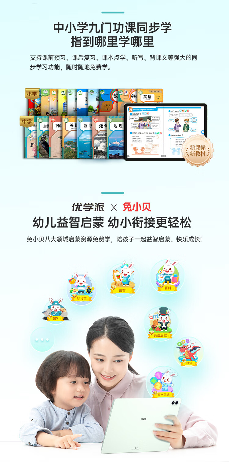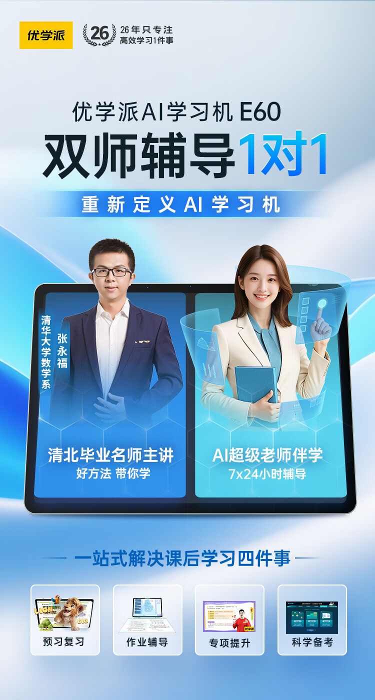 优学派AI学习机E60学练机英语学生平板电脑小学初中高中课本同步辅导家教机点读机 AI智能学习 E60 8G+8G+256G【套装礼品+全国联保】