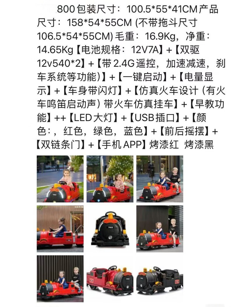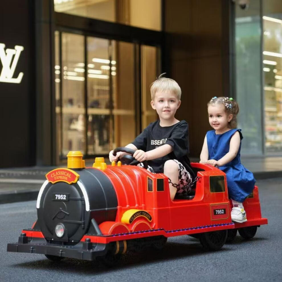 ZHIO儿童可坐托马斯电动火车玩具车可充电遥控汽车男女宝宝双人童车 12V7电瓶双驱绿色
