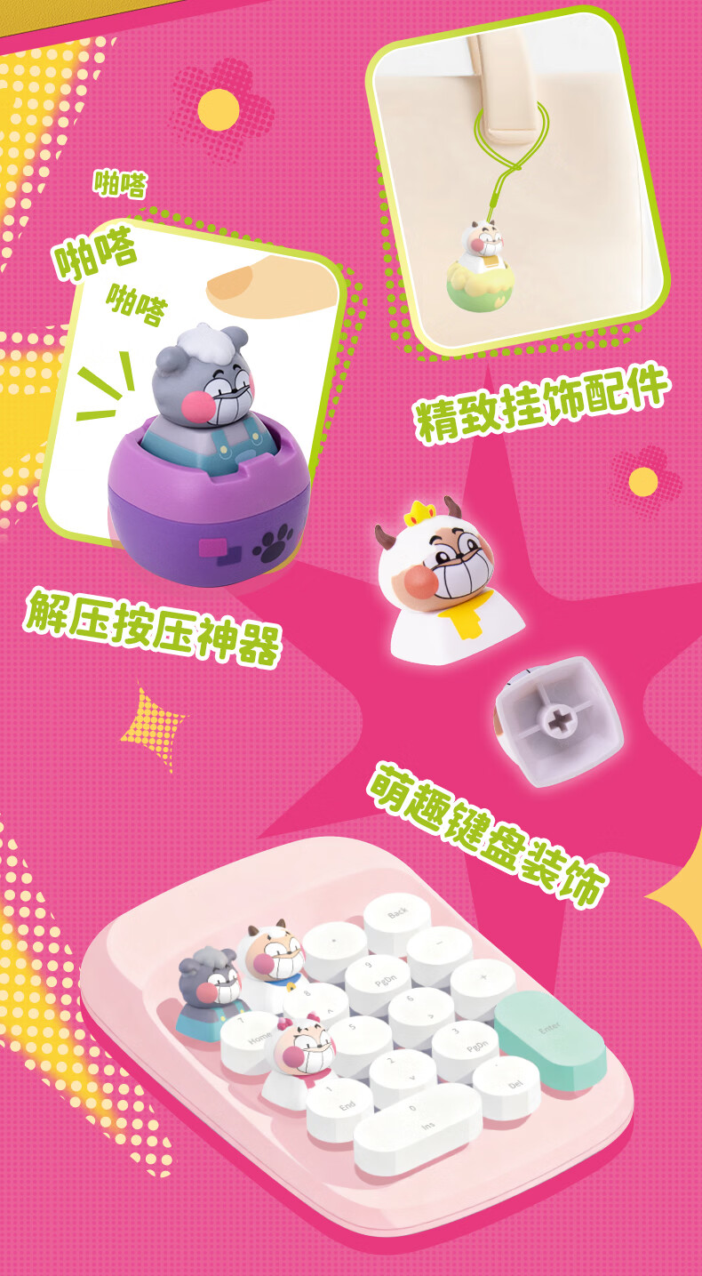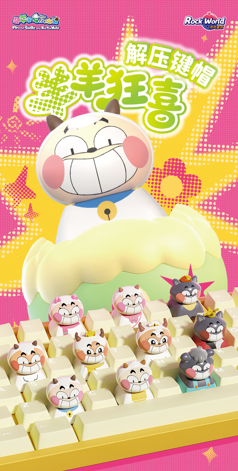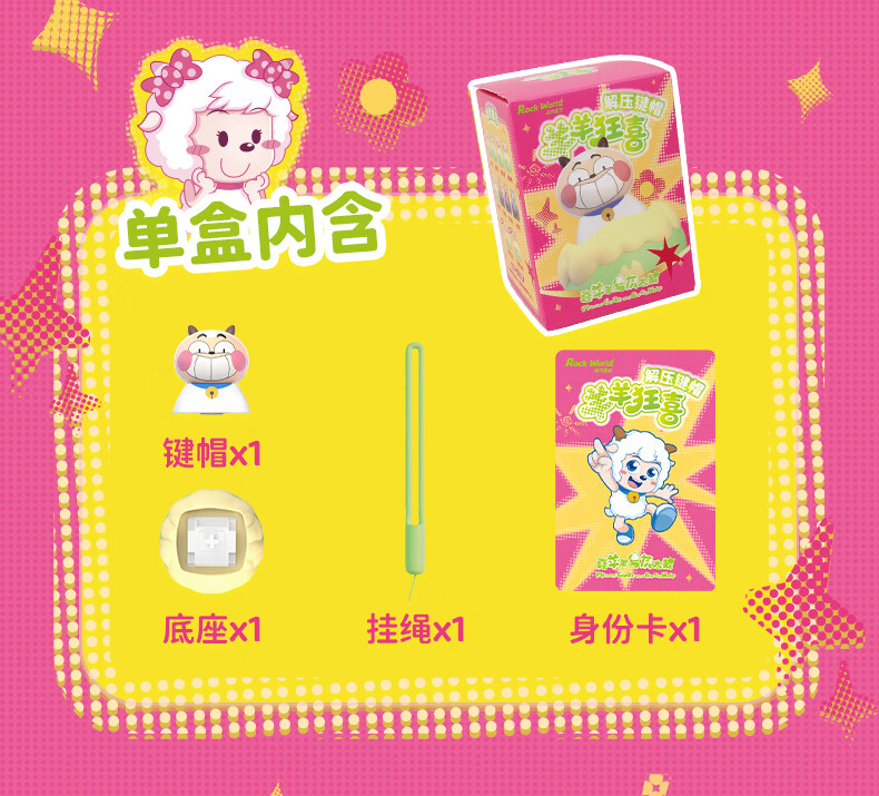 实丰文化 SHIFENG CULTURE SF喜羊羊与灰太狼解压神器键盘键帽挂件摆件盲盒办公室生日女神礼物 羊羊狂喜(随机四款不重复)