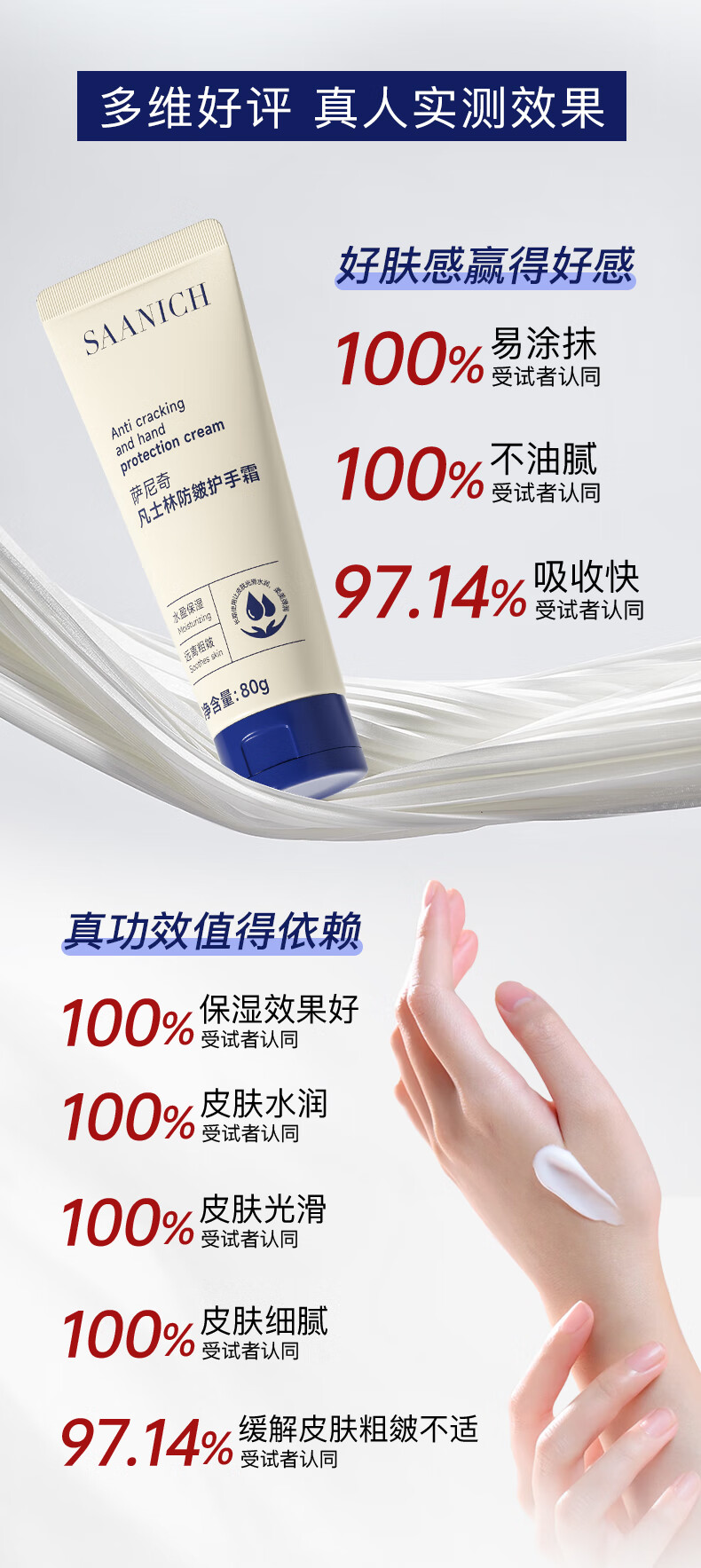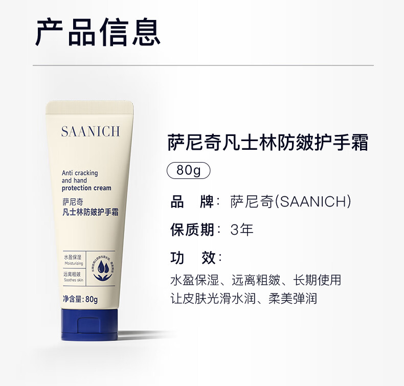 萨尼奇凡士林防皴护手霜80g 女士护手霜男士手干燥粗糙防裂女士礼物 凡士林防皴护手霜80g1支
