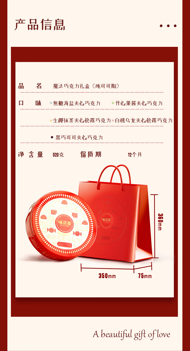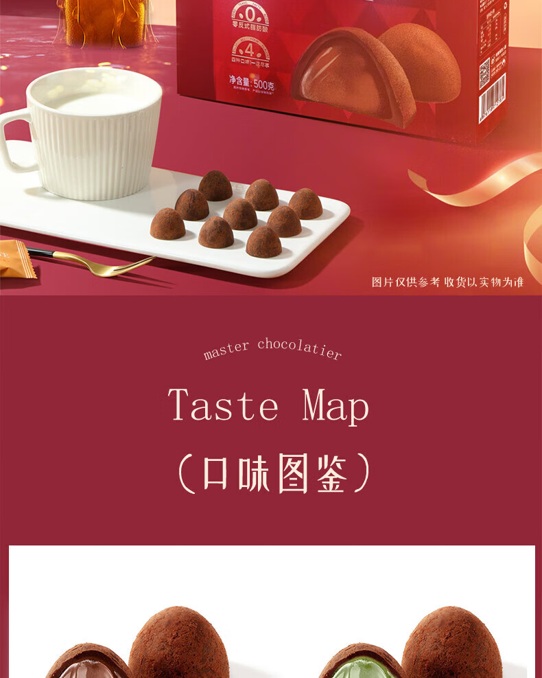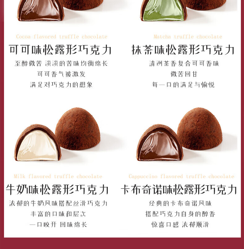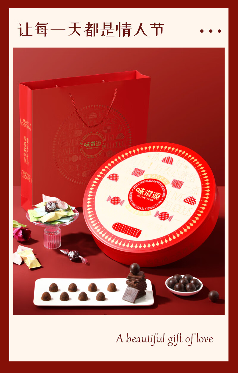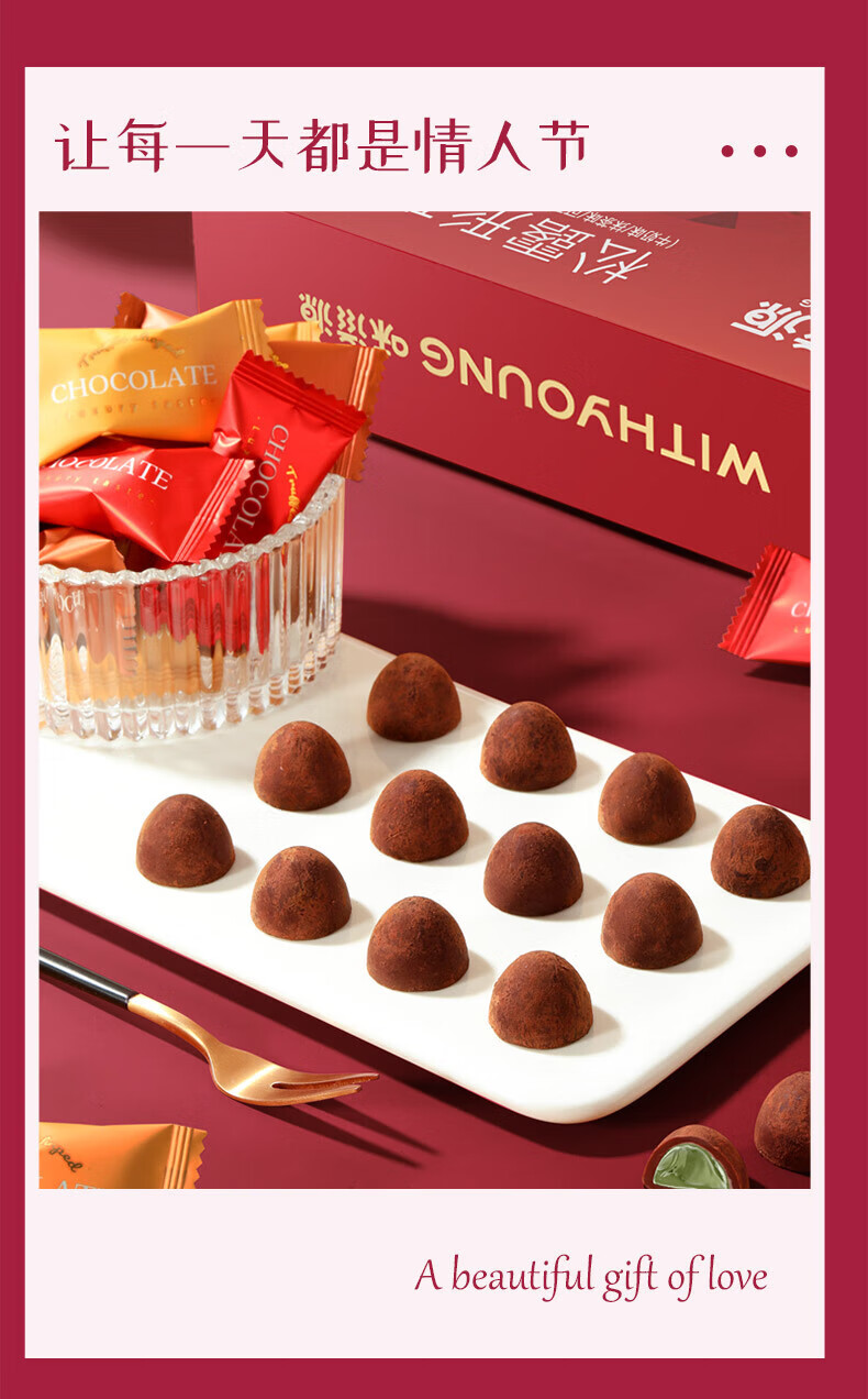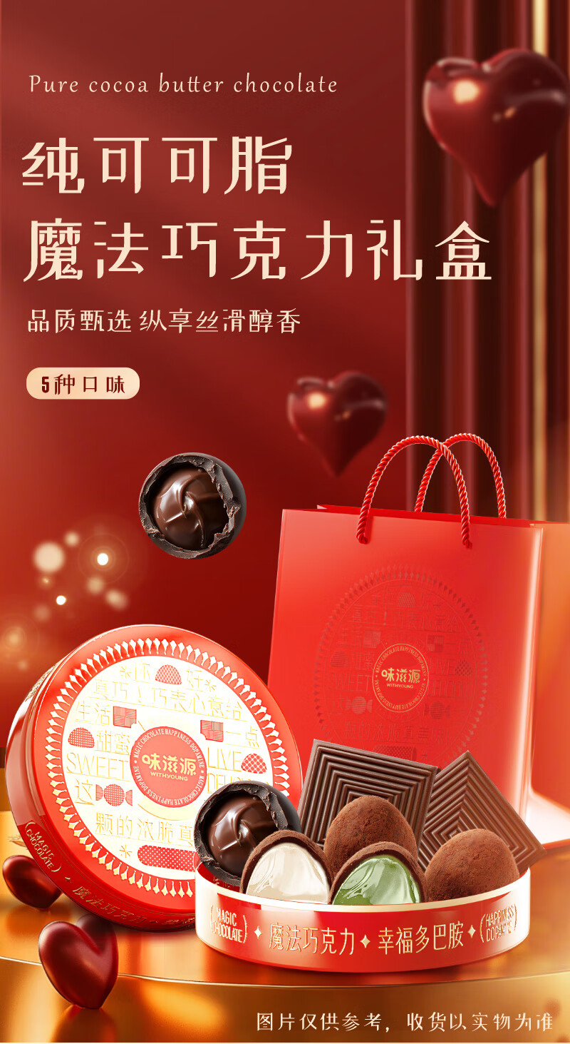 味滋源味滋源松露形巧克力礼盒夹心巧克力年货礼盒糖果情人节礼物 魔法纯脂巧克力520g 1盒装