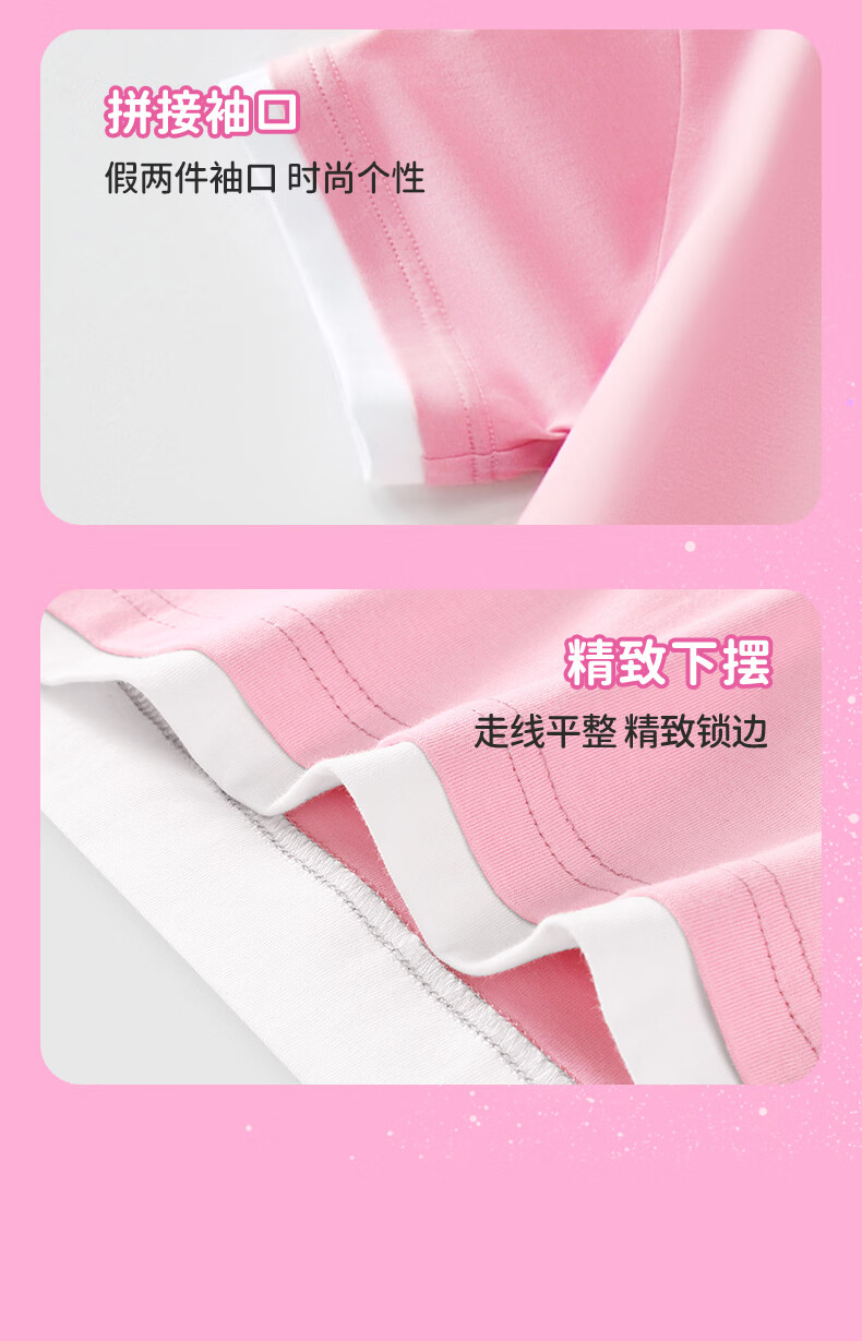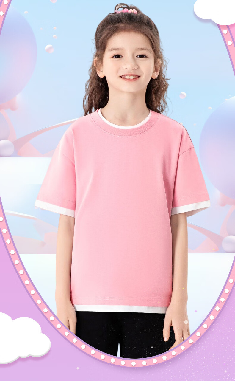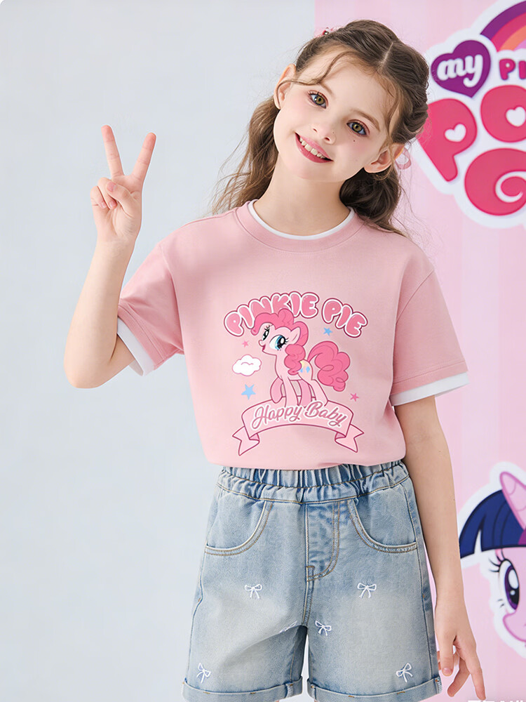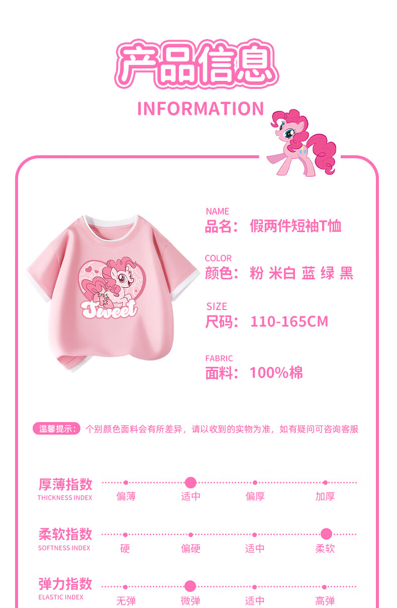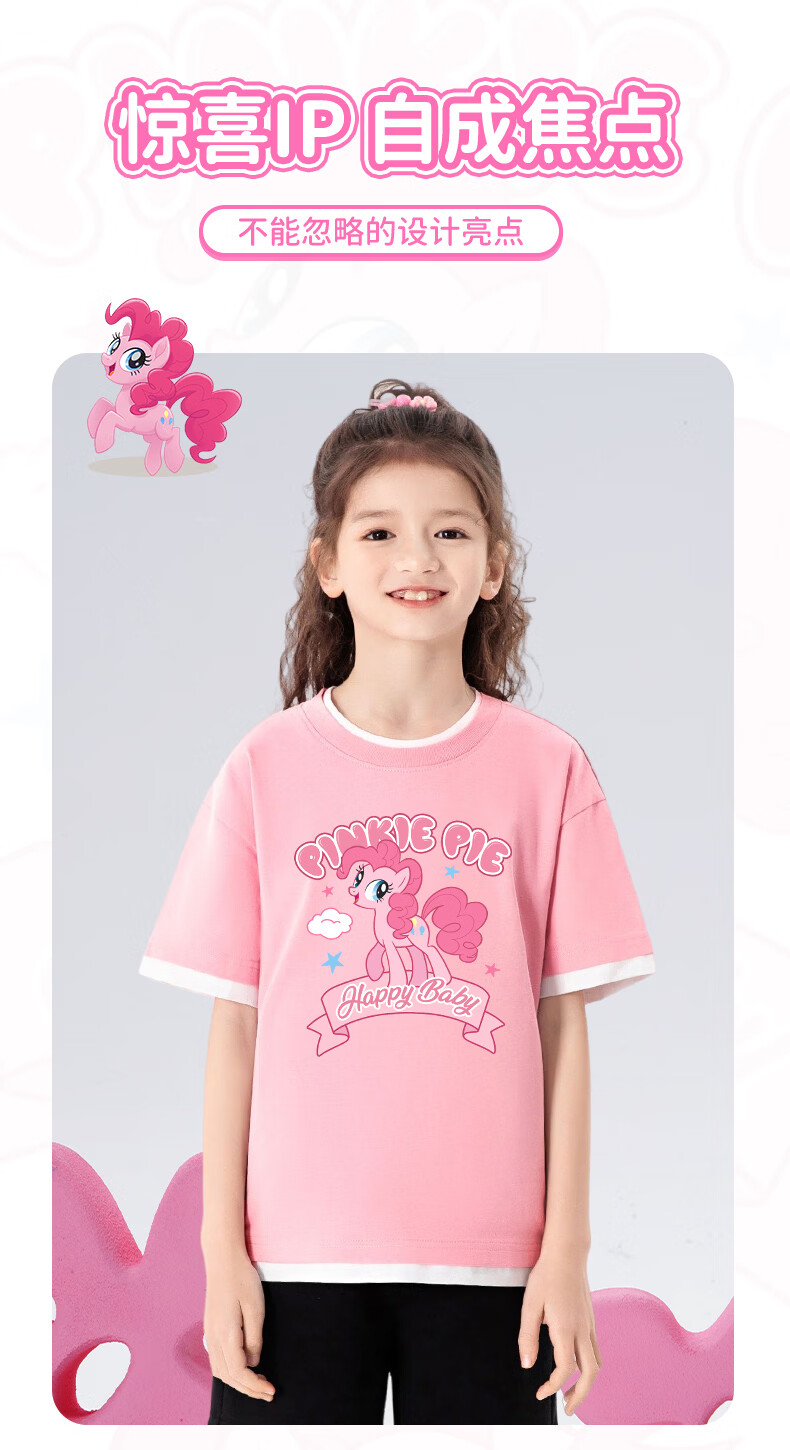 小马宝莉女童短袖t恤儿童假两件层次感上衣2026夏季新款百搭休闲运动衣 米白 云梦柔柔 150