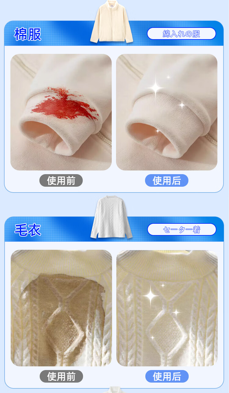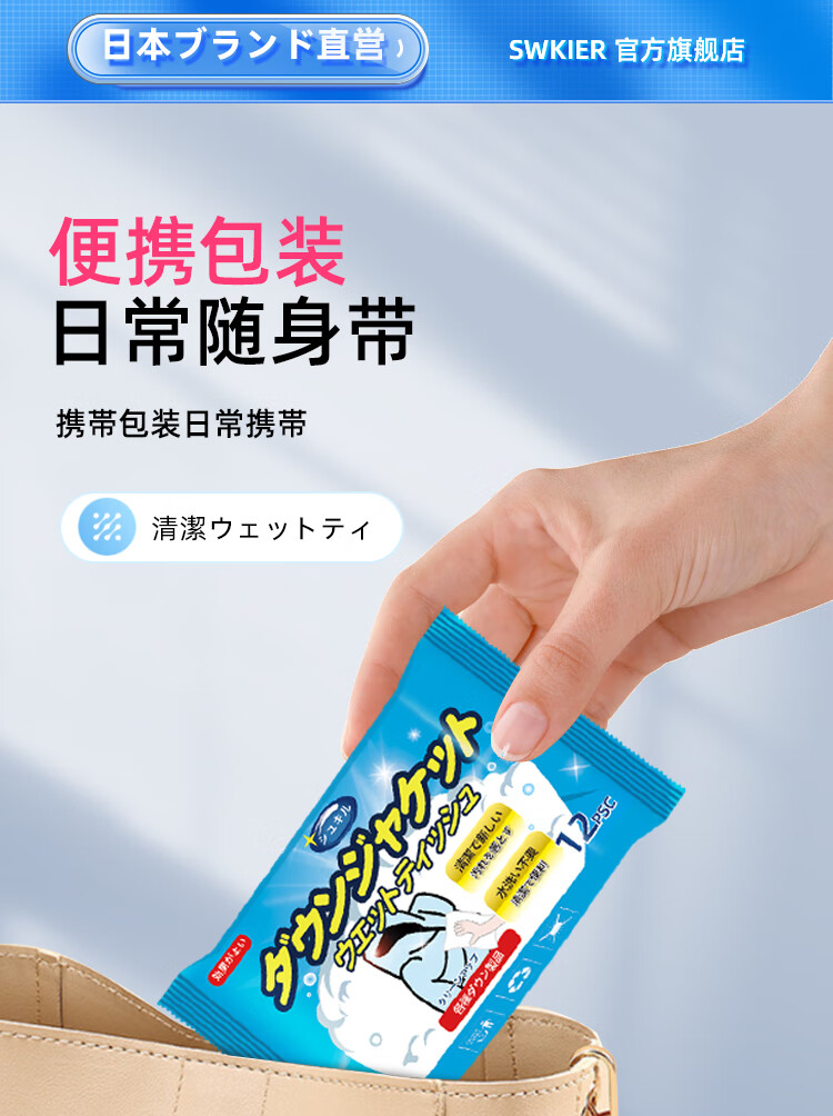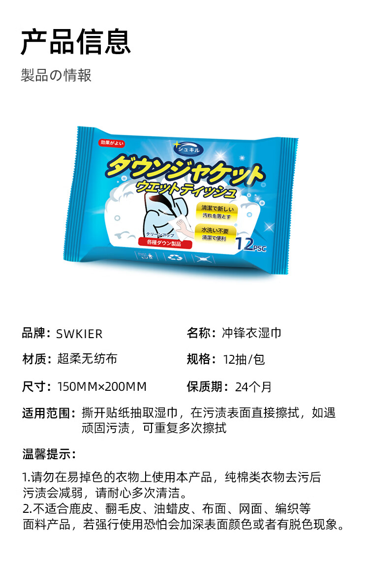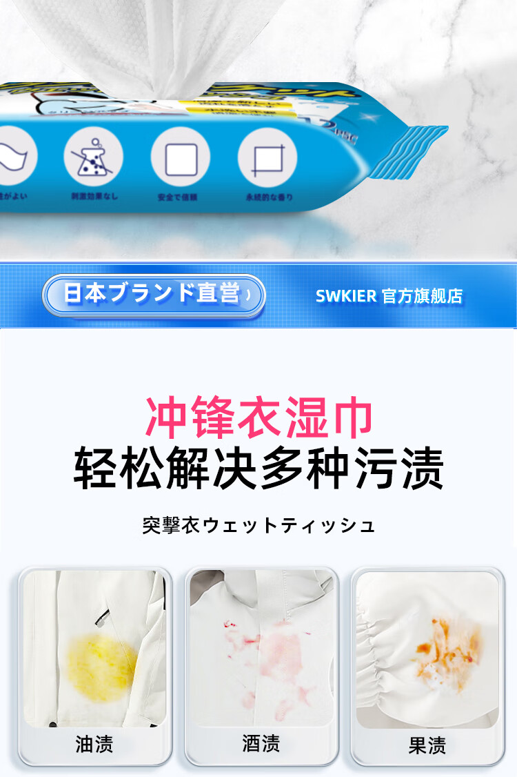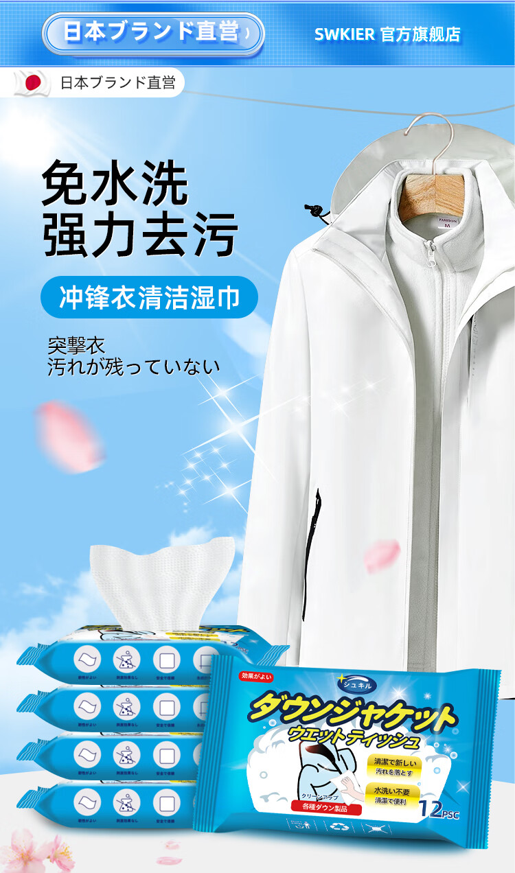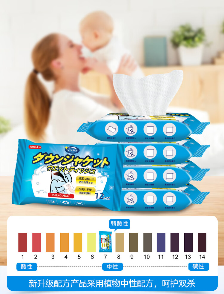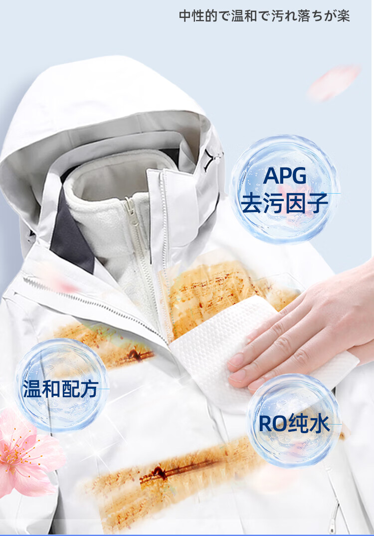 洁护雅日本羽绒服免水洗清洁湿巾衣物神去污去油渍干洗器应急独立装湿巾 【10包】120片