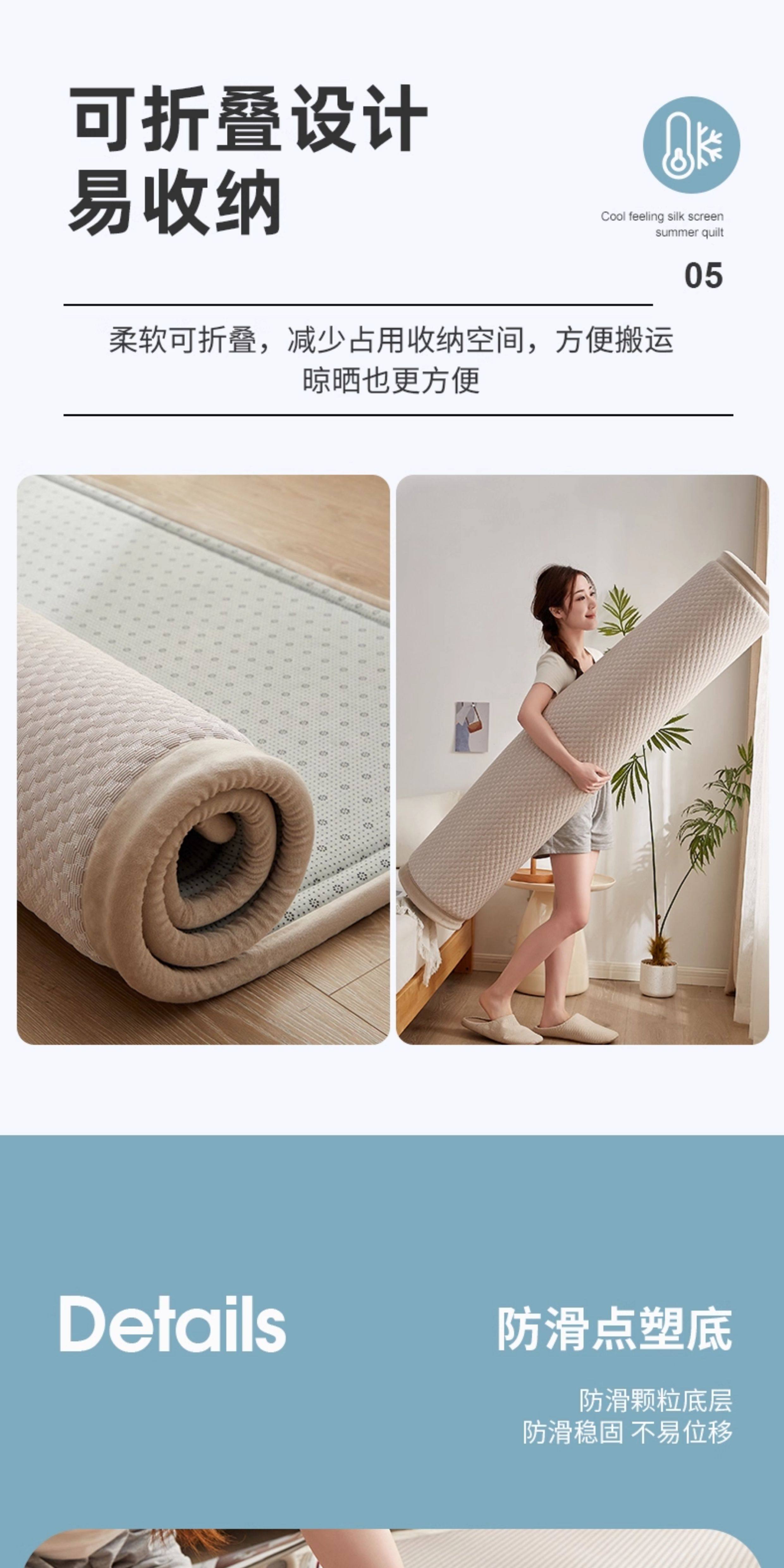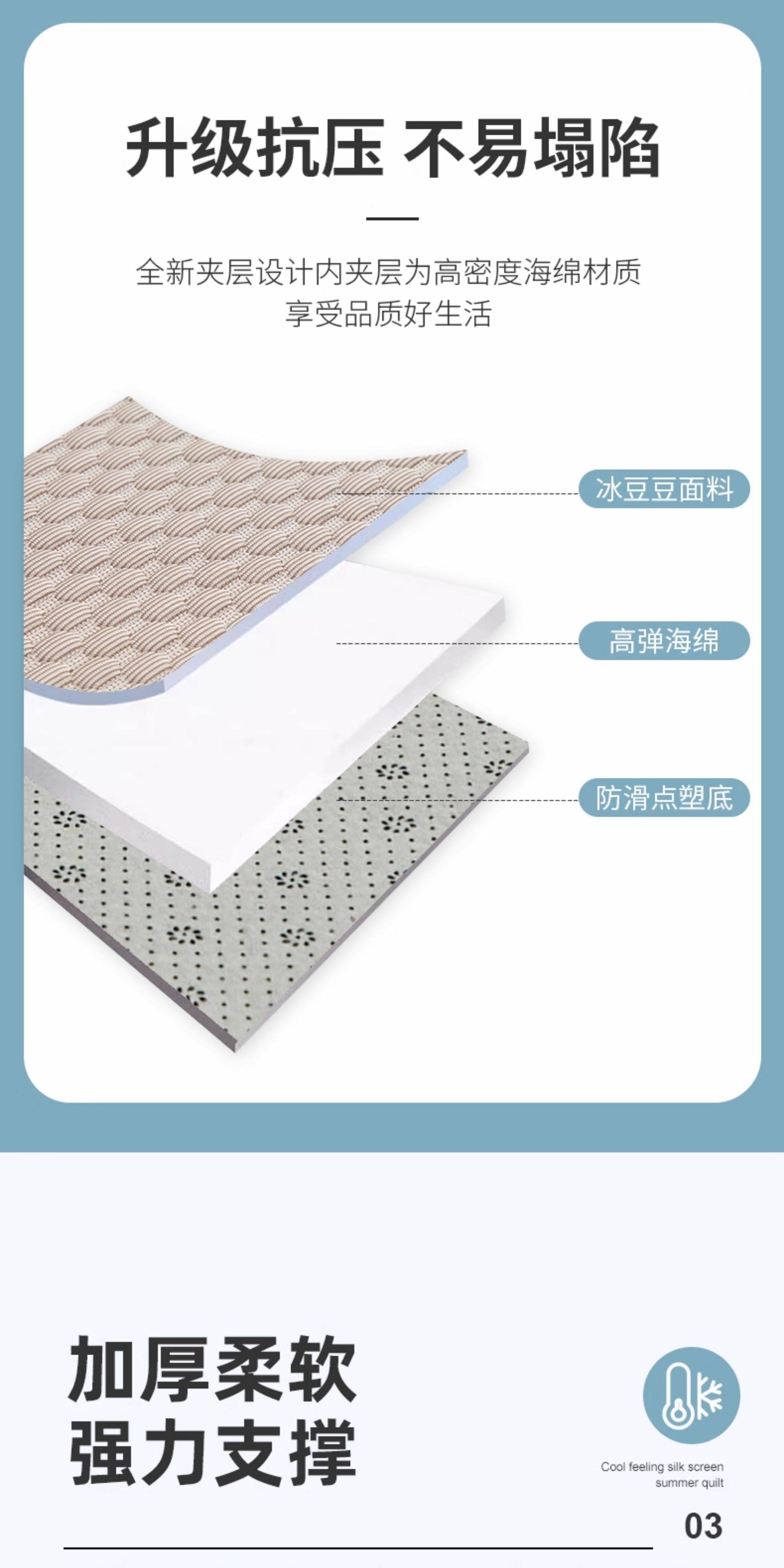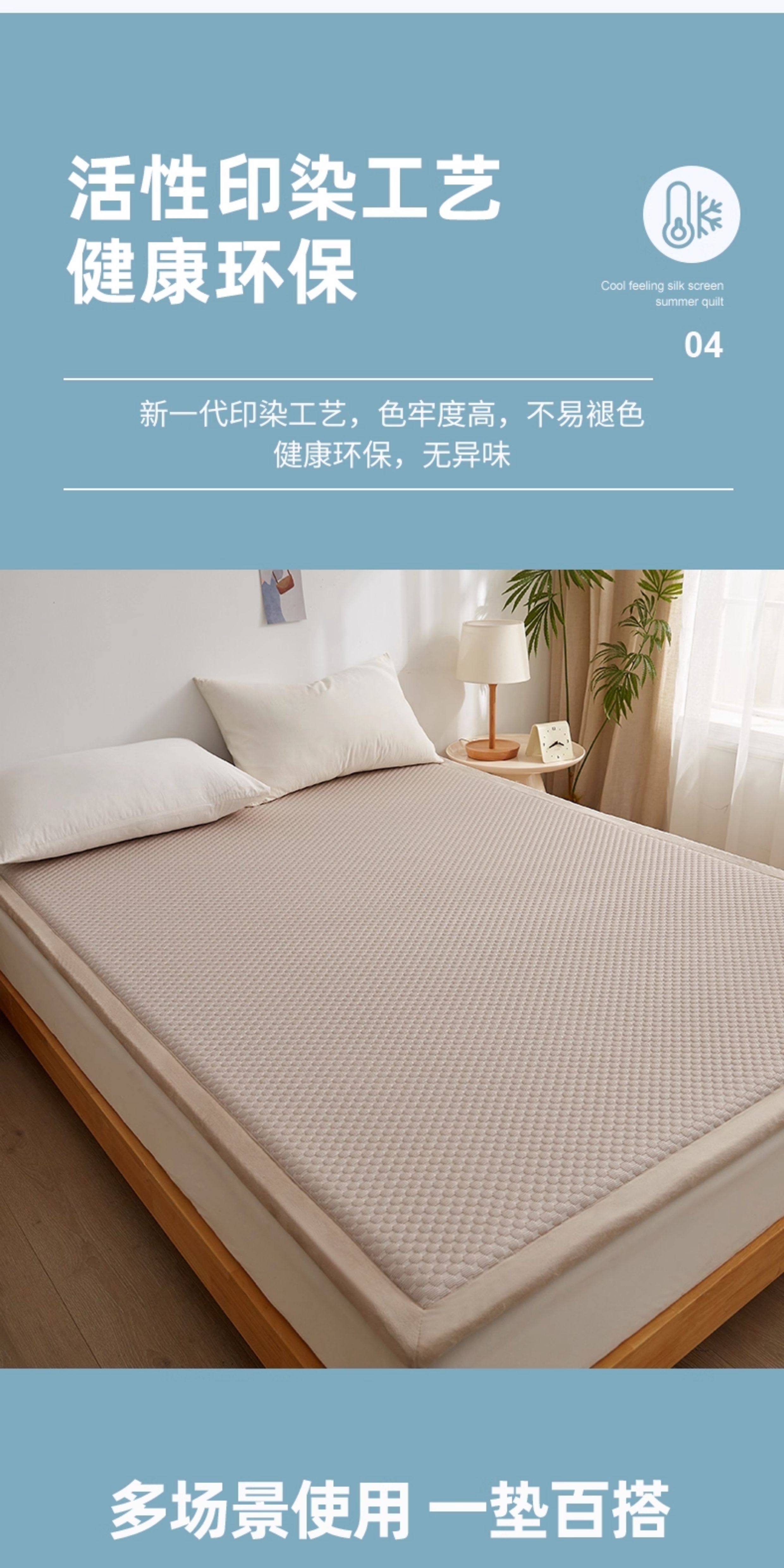 水星家纺北欧·海岸可水洗冰丝席/床笠式提花冰丝席升级款 北欧·海岸可水洗提花冰丝席升级款(灰蓝色) 195cm*90cm