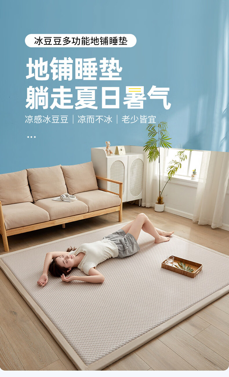 名创优品(MINISO)床垫遮盖物1.5米x2米软垫 榻榻米海绵垫地垫单双人宿舍床褥垫子 【高定款】miniso-圆点-灰 150*200cm