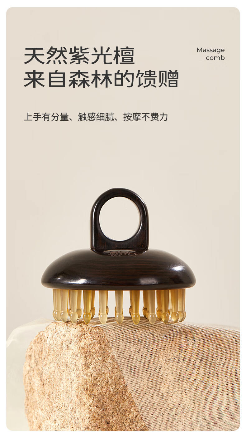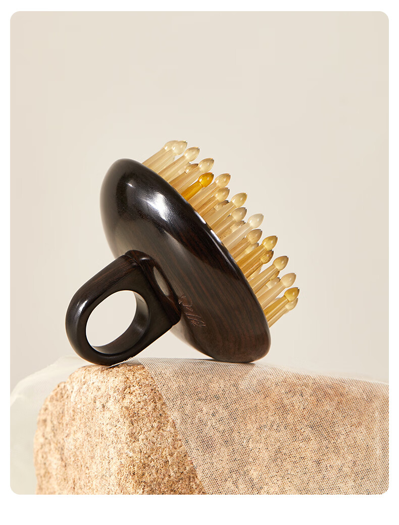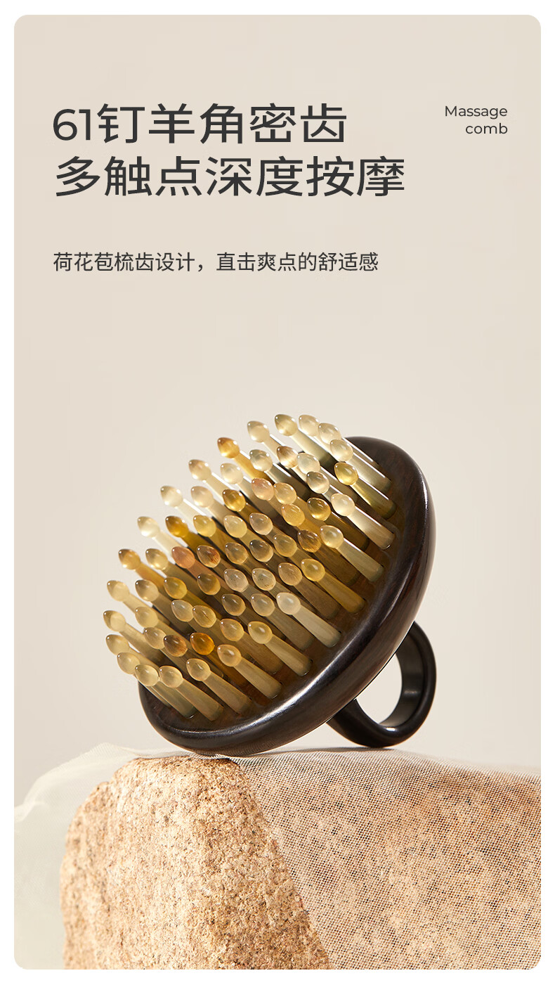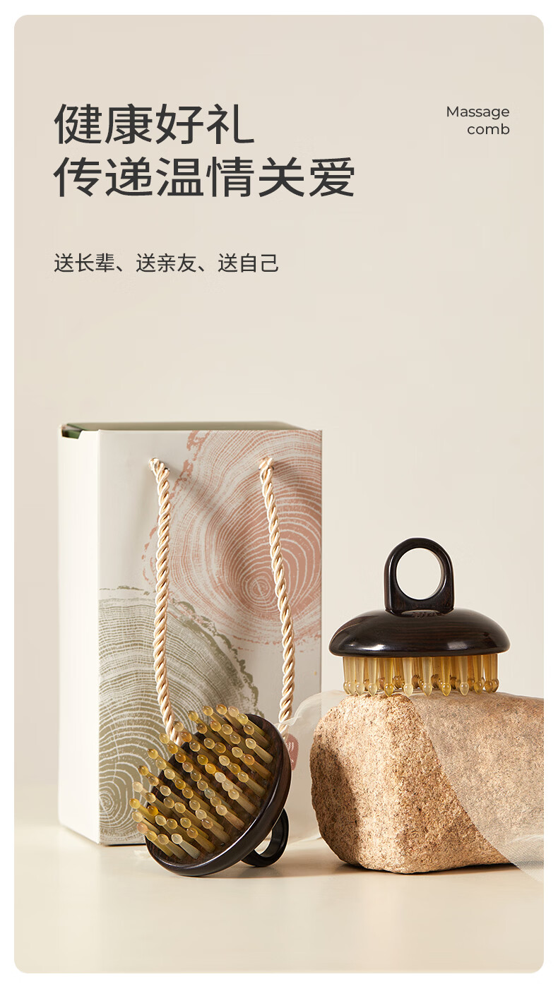 初心羊角齿指环梳头部按摩梳生日礼物礼盒家用梳子头皮疏通经络梳 绿檀木(羊角齿61钉)