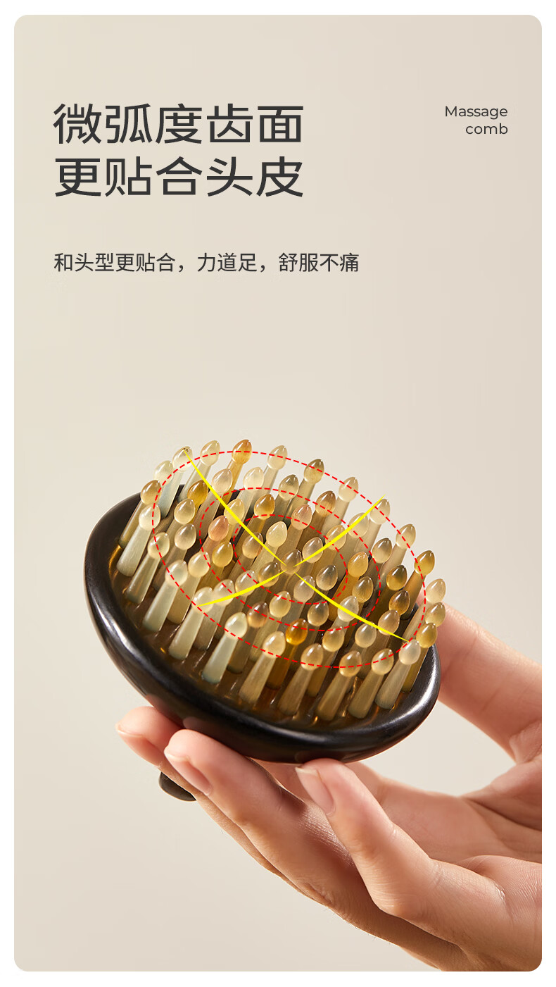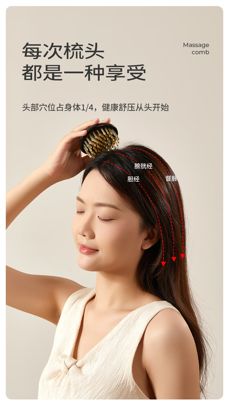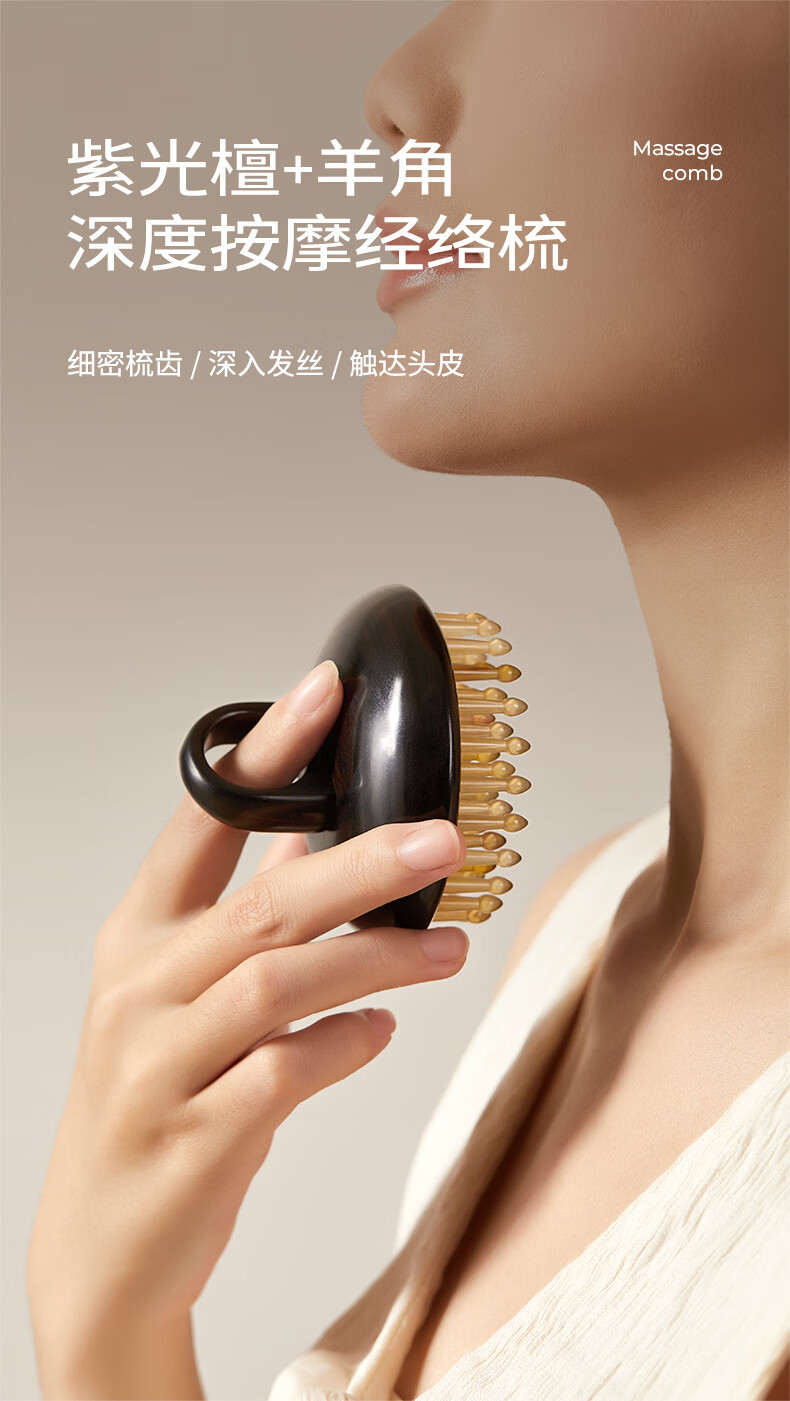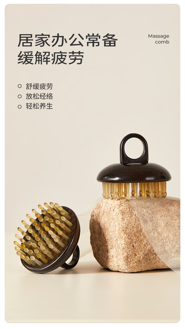 初心羊角齿指环梳头部按摩梳生日礼物礼盒家用梳子头皮疏通经络梳 绿檀木(羊角齿61钉)