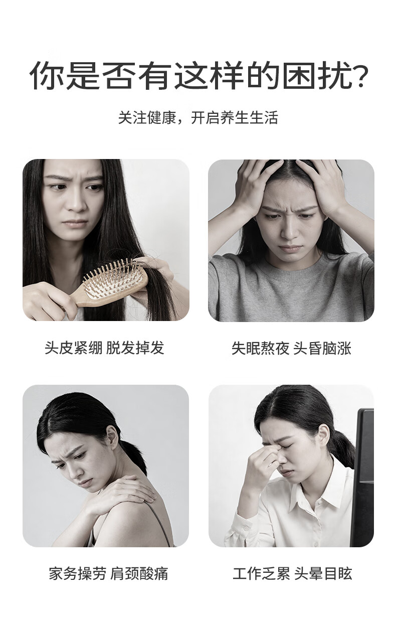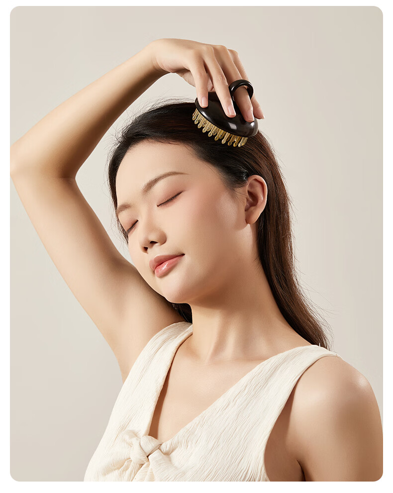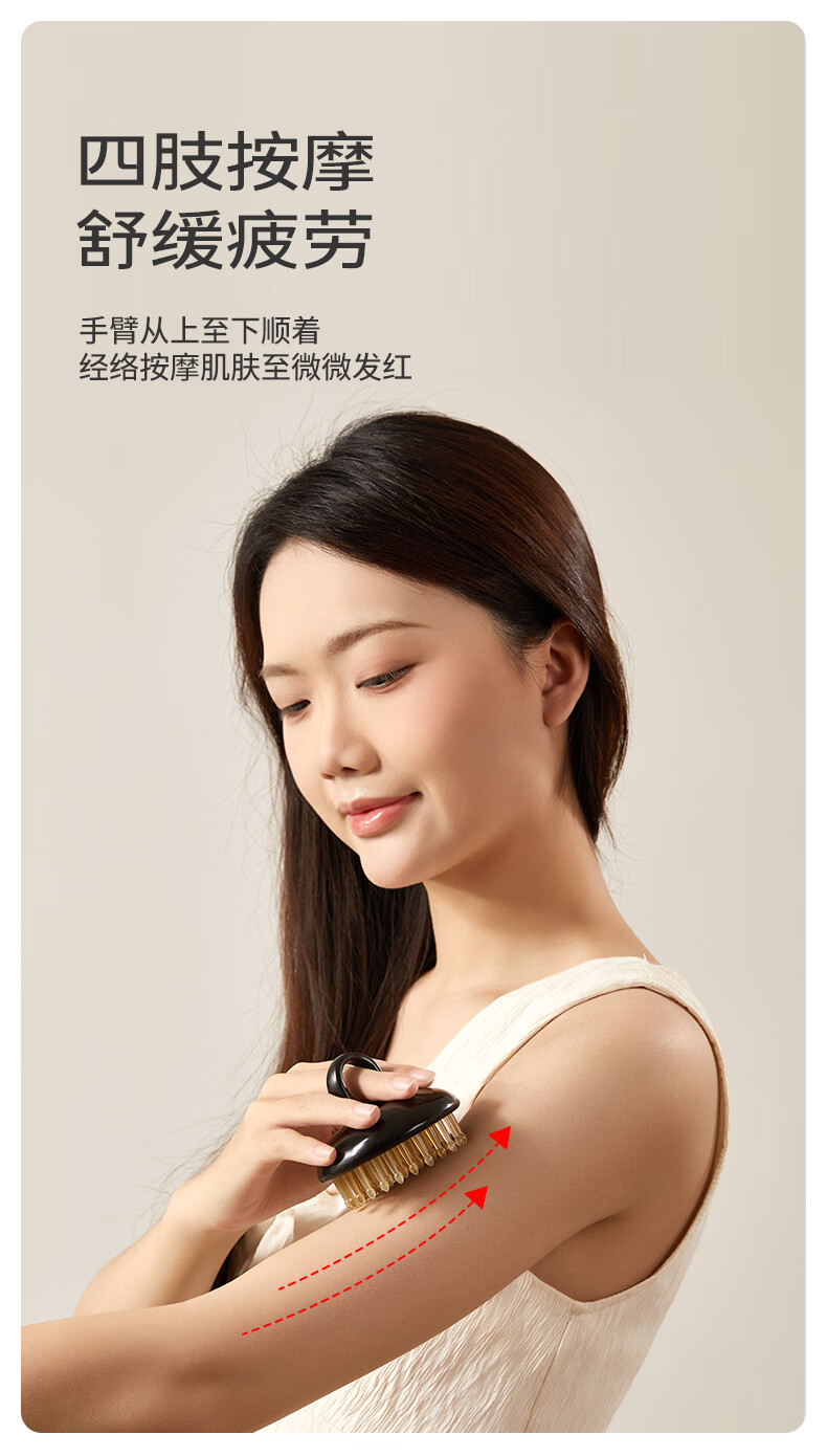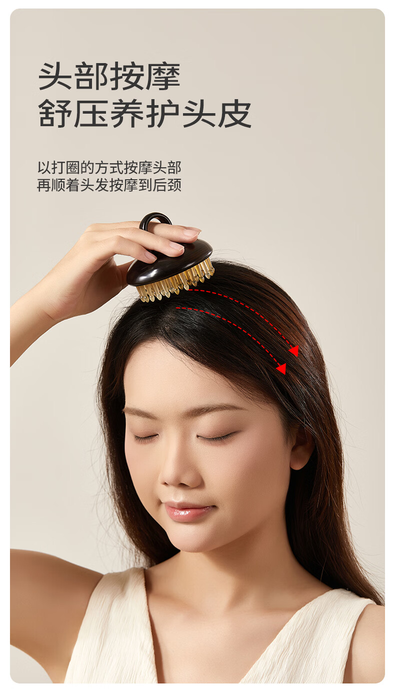 初心羊角齿指环梳头部按摩梳生日礼物礼盒家用梳子头皮疏通经络梳 绿檀木(羊角齿61钉)