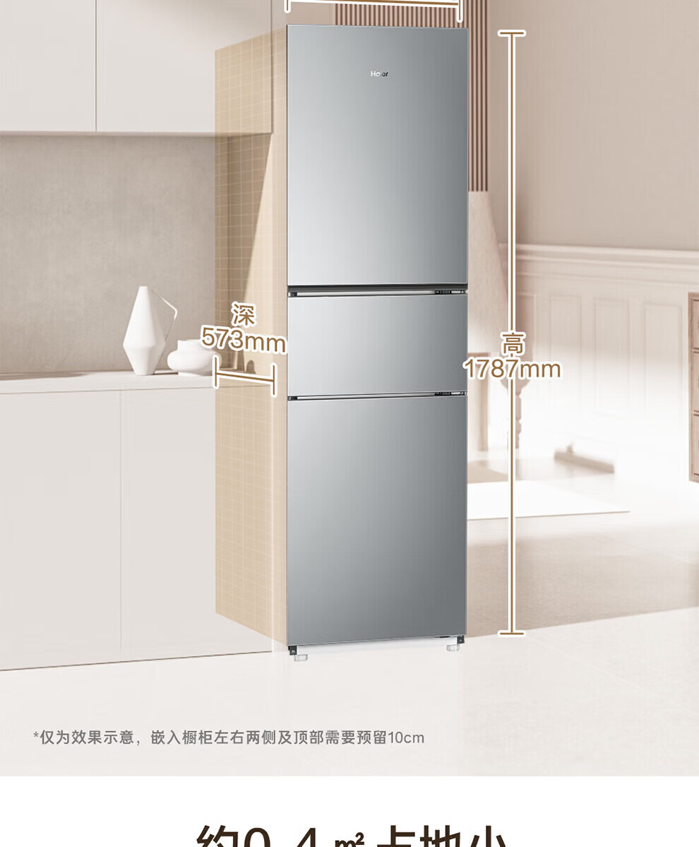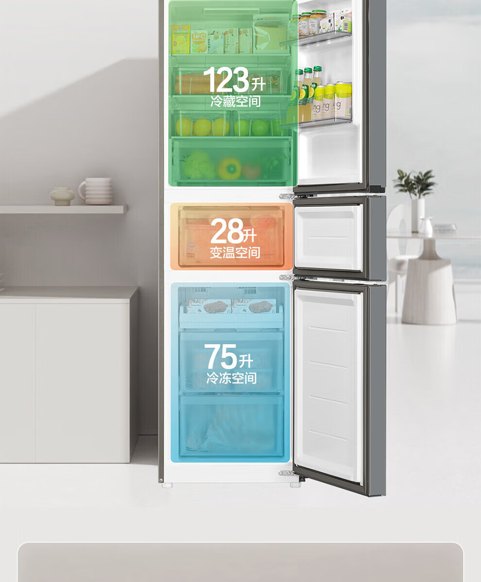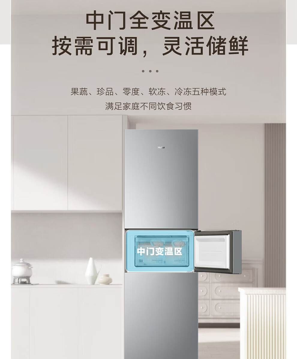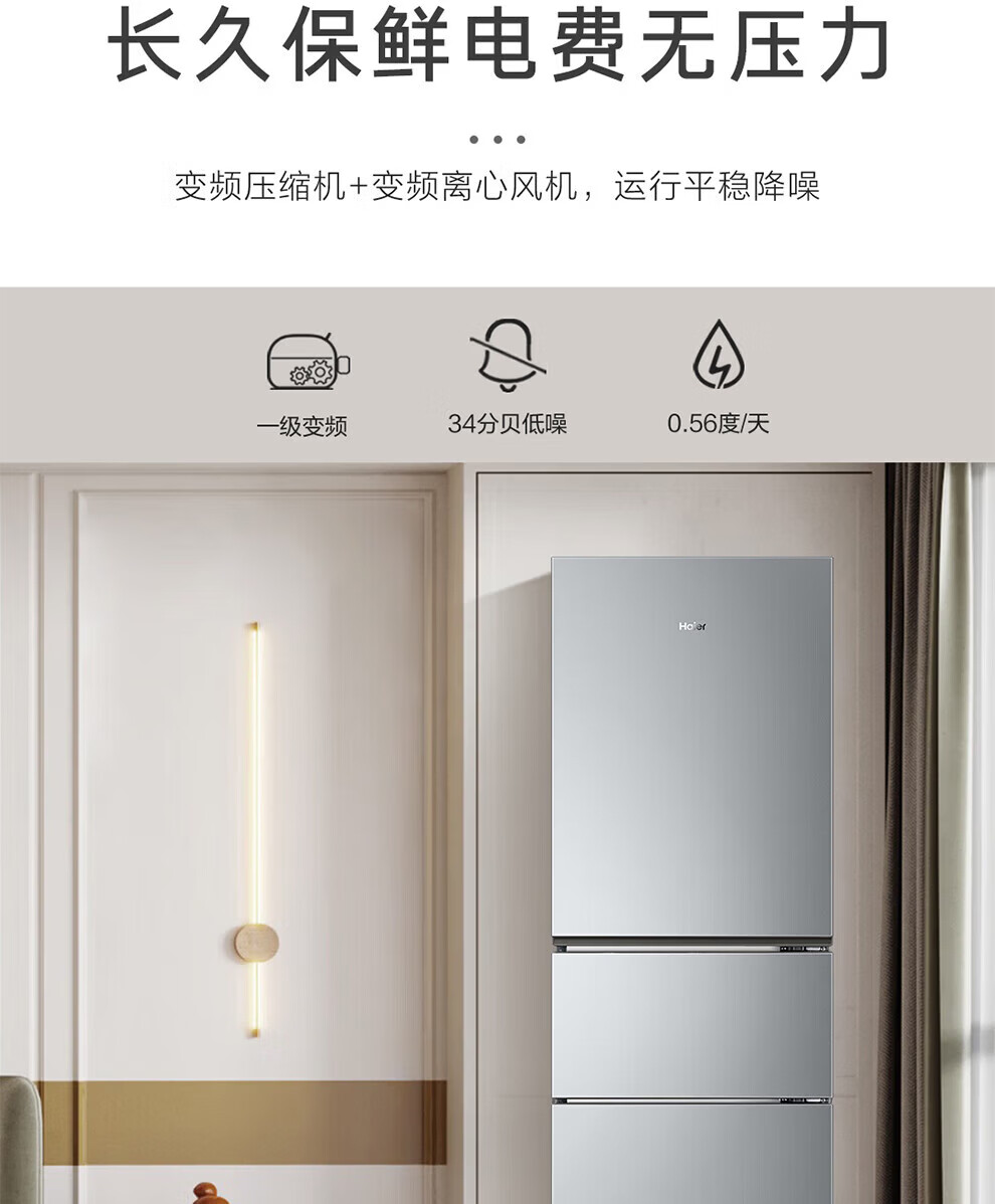 海尔冰箱226升三开门冰箱双变频三门风冷无霜家用出租房小户型电冰箱银色黑金净化以旧换新 三门三温区+风冷无霜