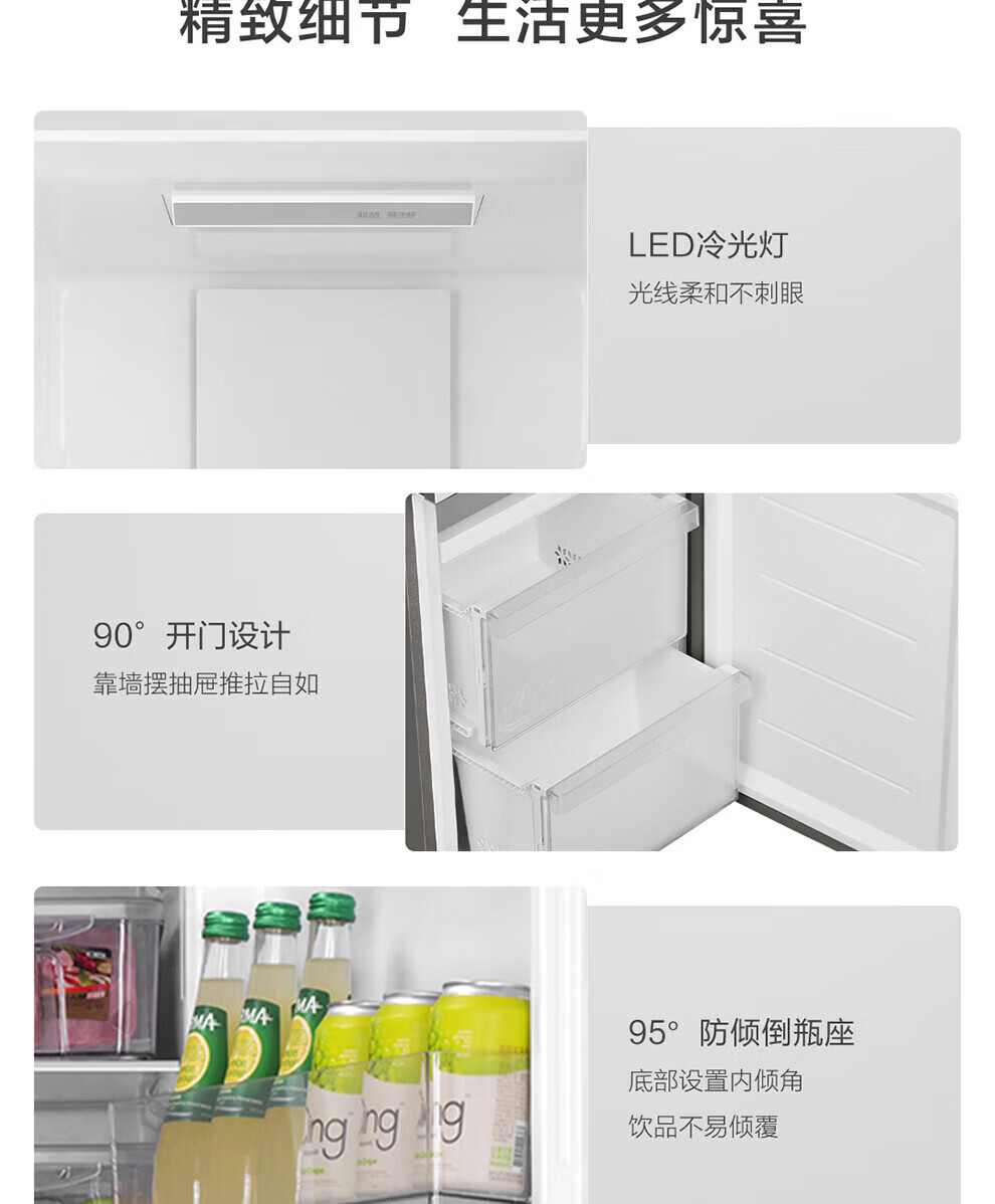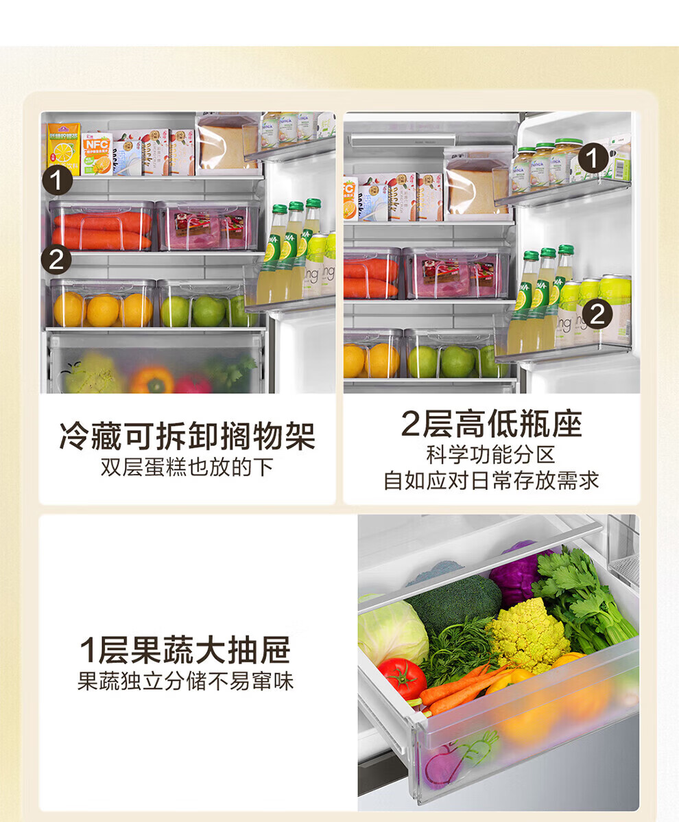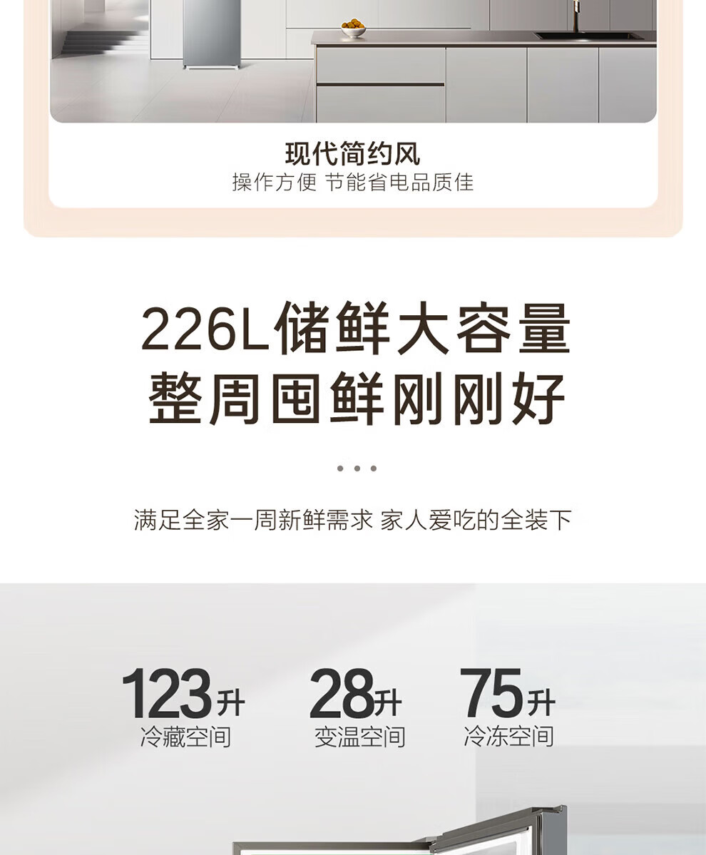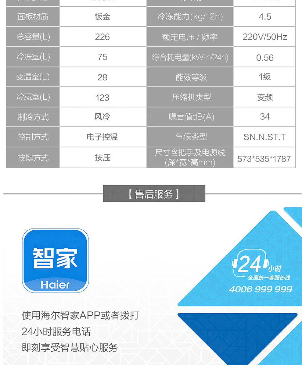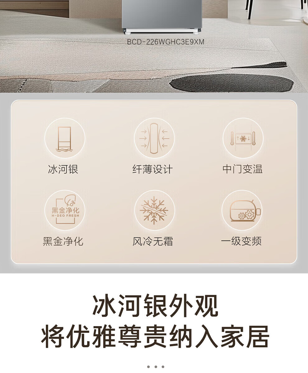 海尔冰箱226升三开门冰箱双变频三门风冷无霜家用出租房小户型电冰箱银色黑金净化以旧换新 三门三温区+风冷无霜