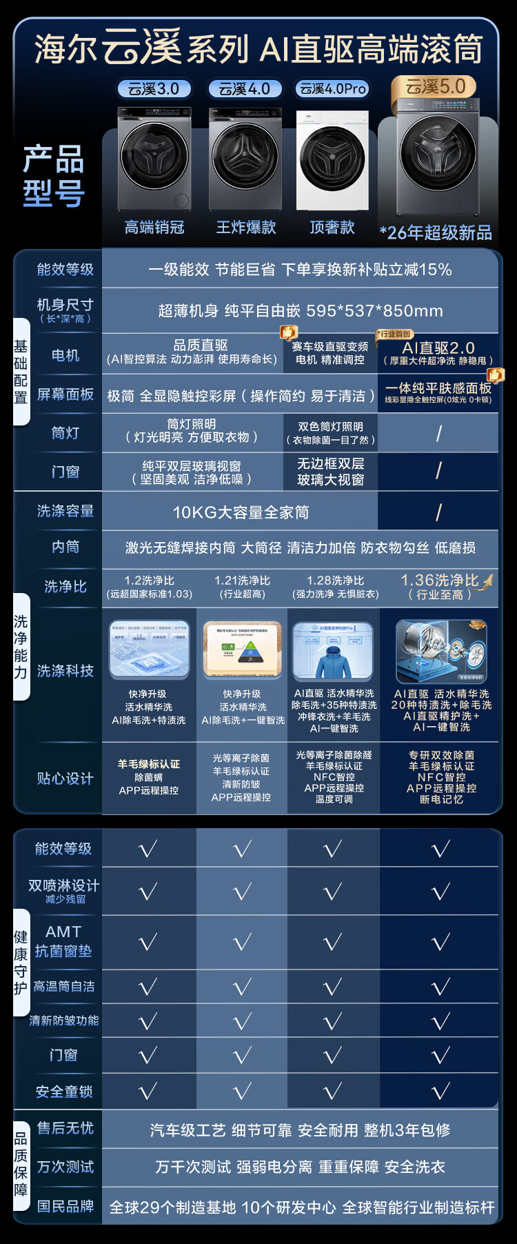 海尔(Haier)云溪5.0 AWE同款 10公斤全自动滚筒洗衣机单洗 家用大容量超薄 1.36高洗净比 直驱变频双效除菌D1 重磅新品10KG单洗 滚筒 10kg