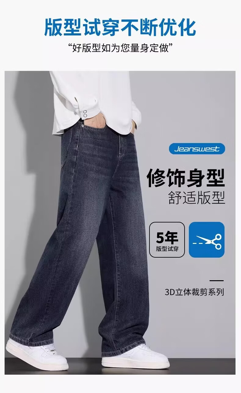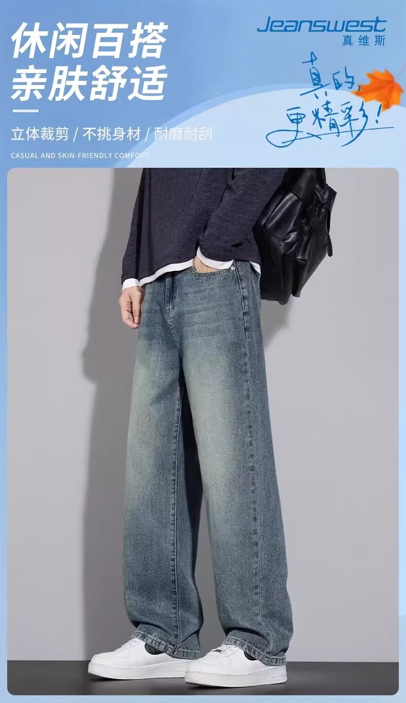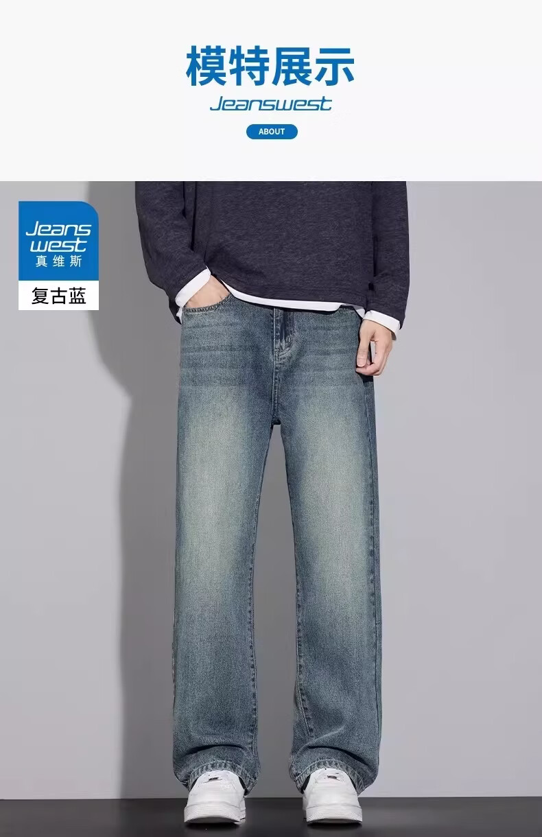 真维斯(Jeanswest)美式复古牛仔裤男士加绒加厚宽松直筒长裤2025冬季新款裤子 随机款 4XL 【建议180-200斤】