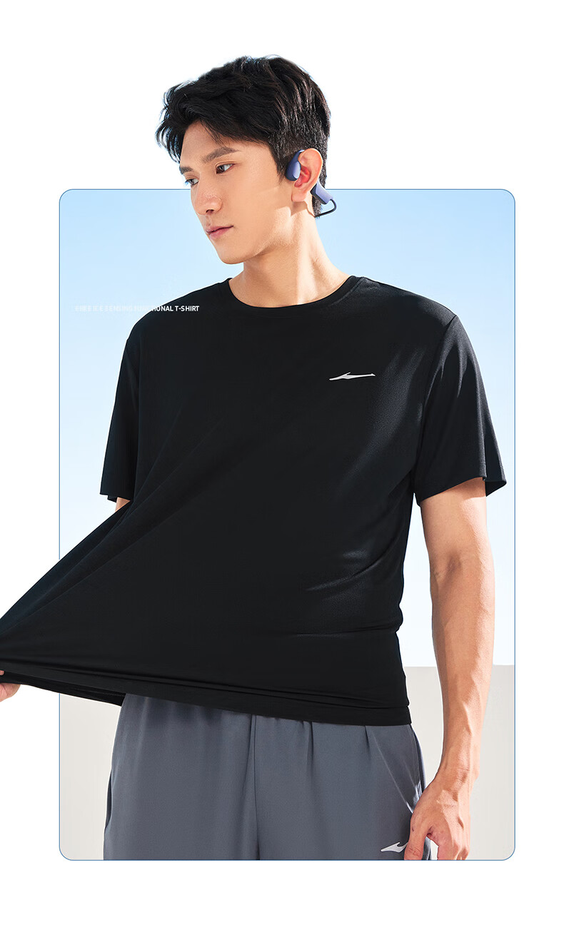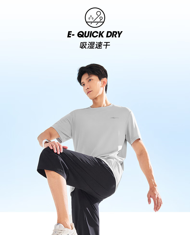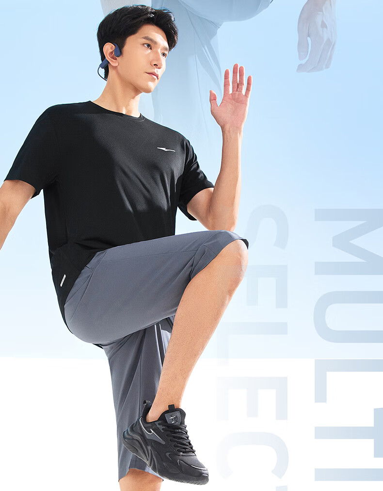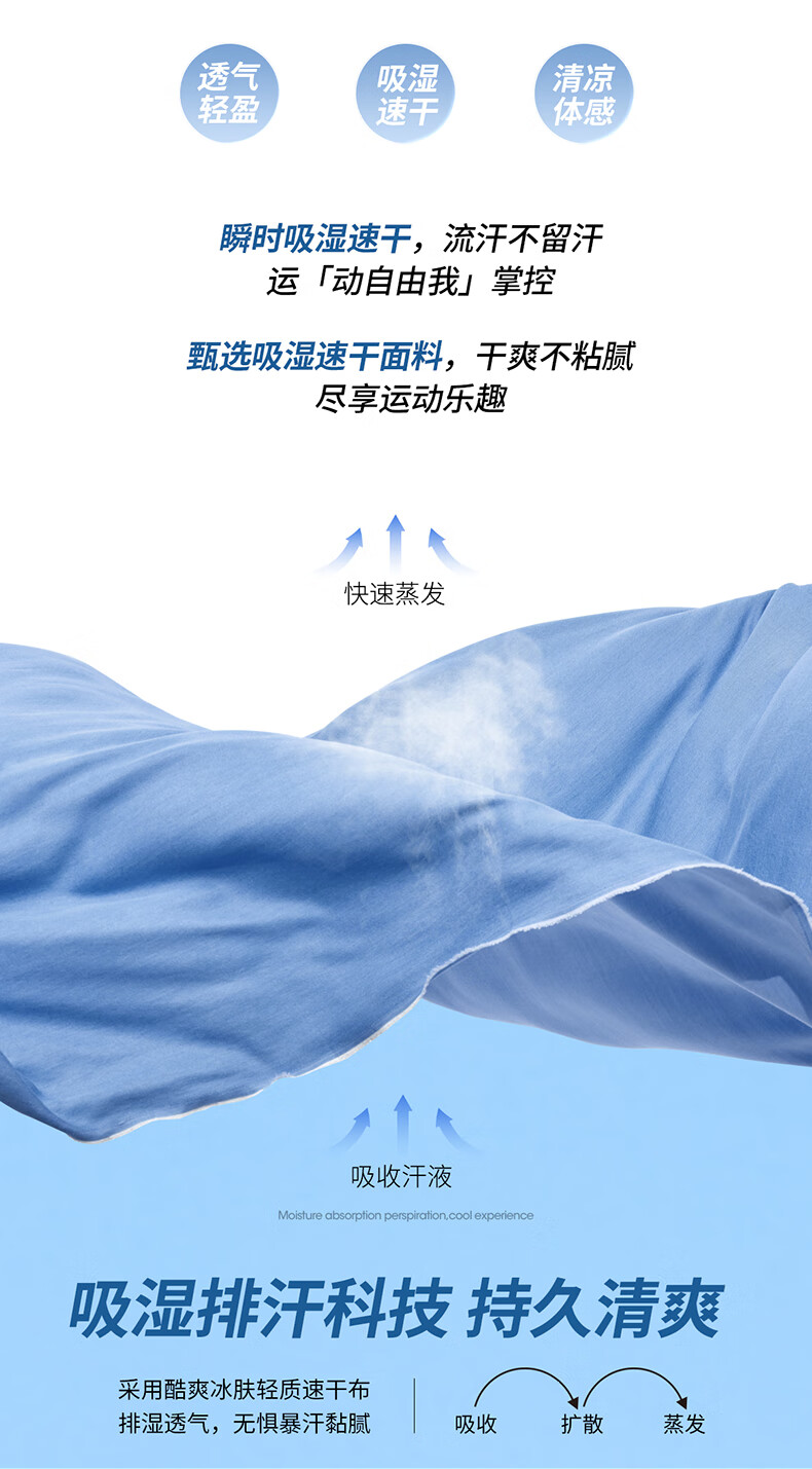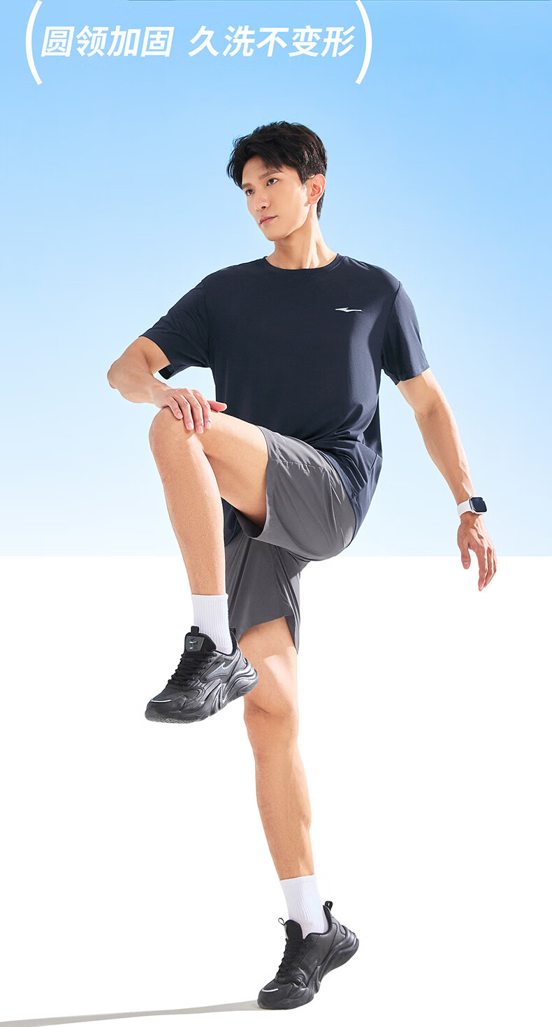 鸿星尔克运动套装男夏季冰感速干T恤短袖短裤爸爸跑步两件套父亲节礼物 礁石蓝 2XL