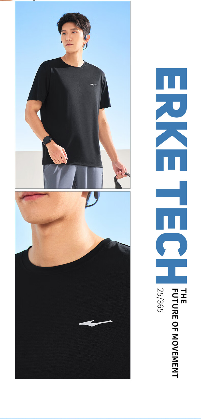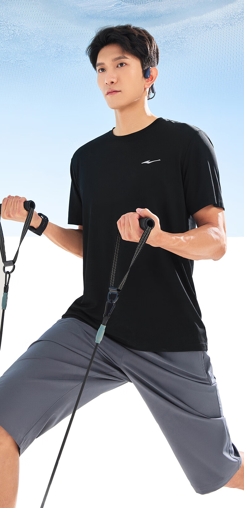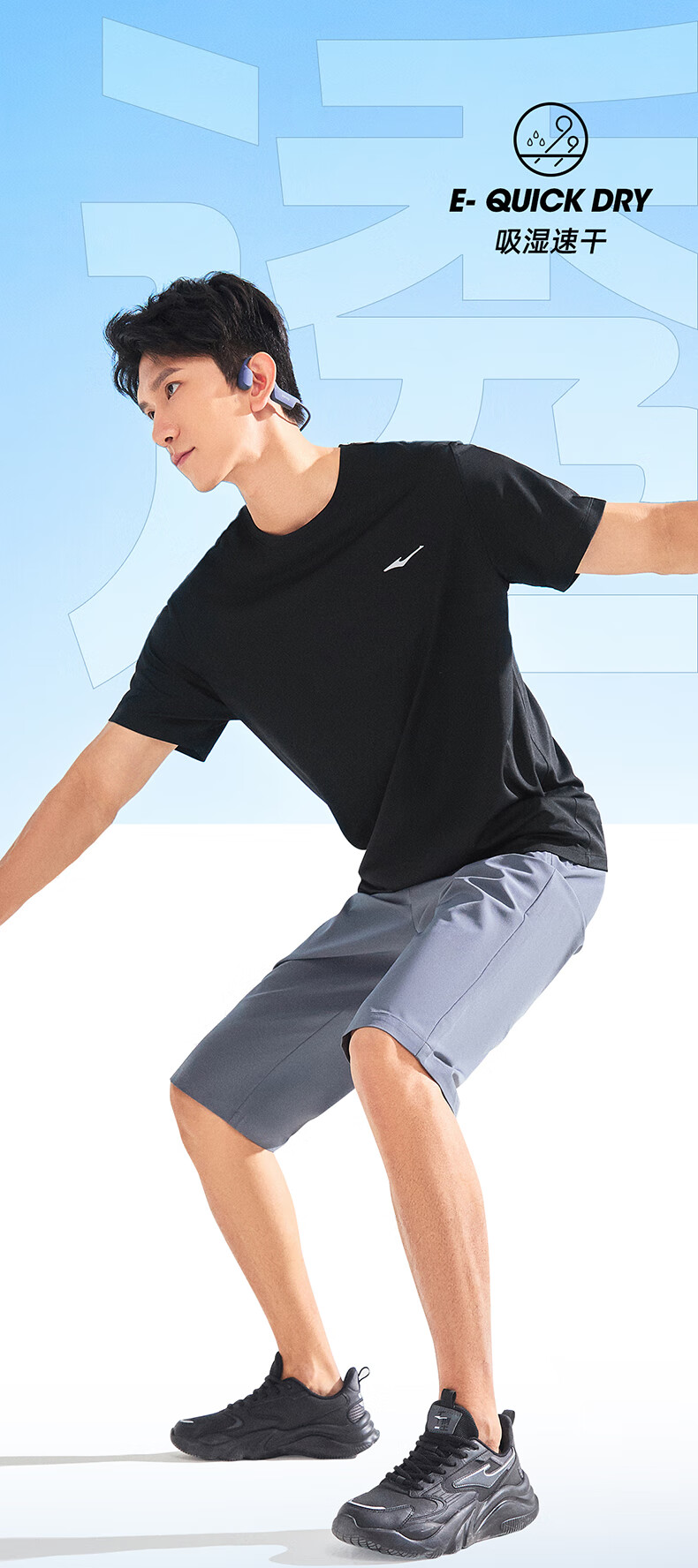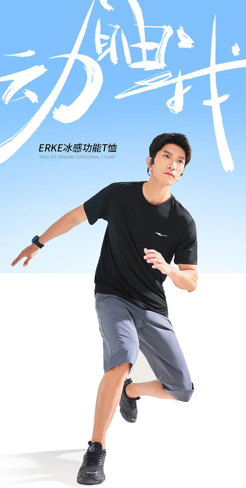 鸿星尔克运动套装男夏季冰感速干T恤短袖短裤爸爸跑步两件套父亲节礼物 礁石蓝 2XL