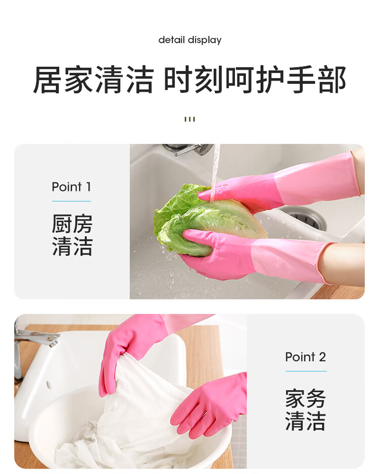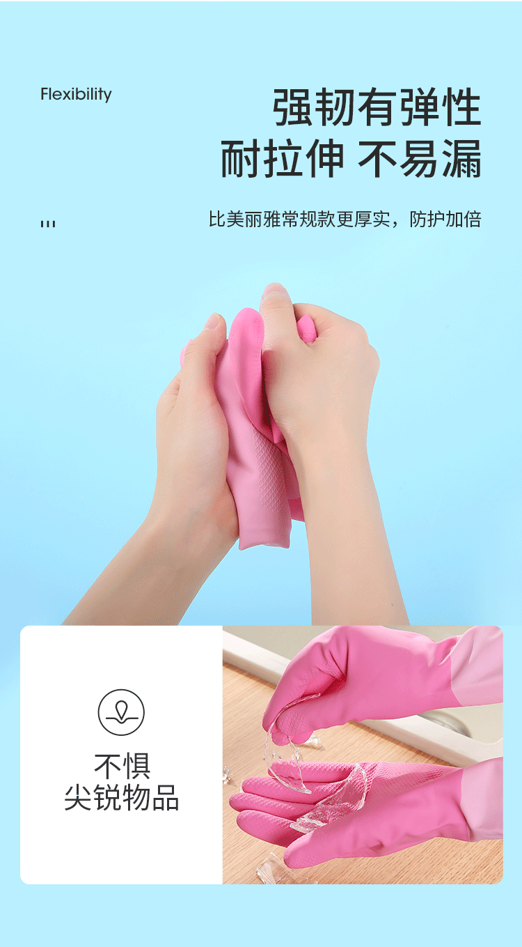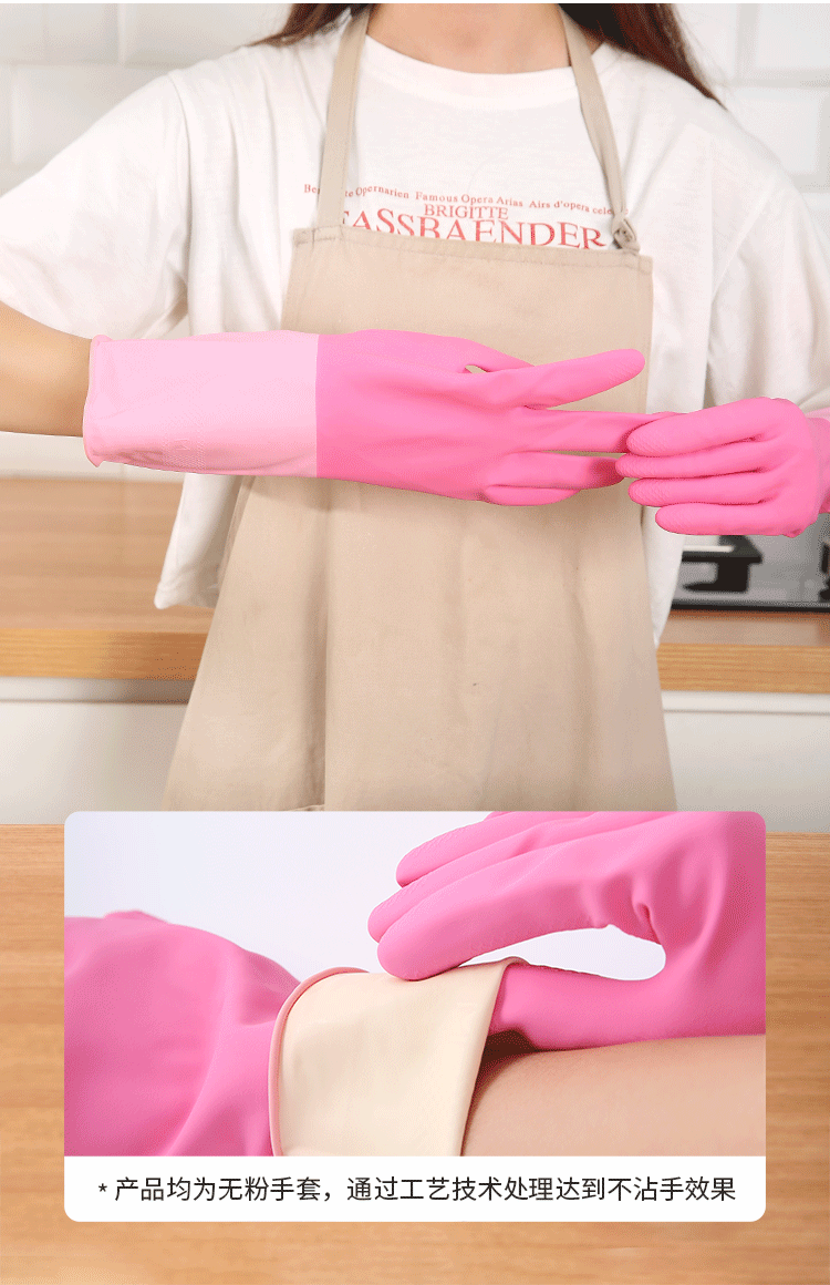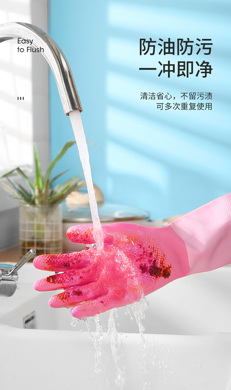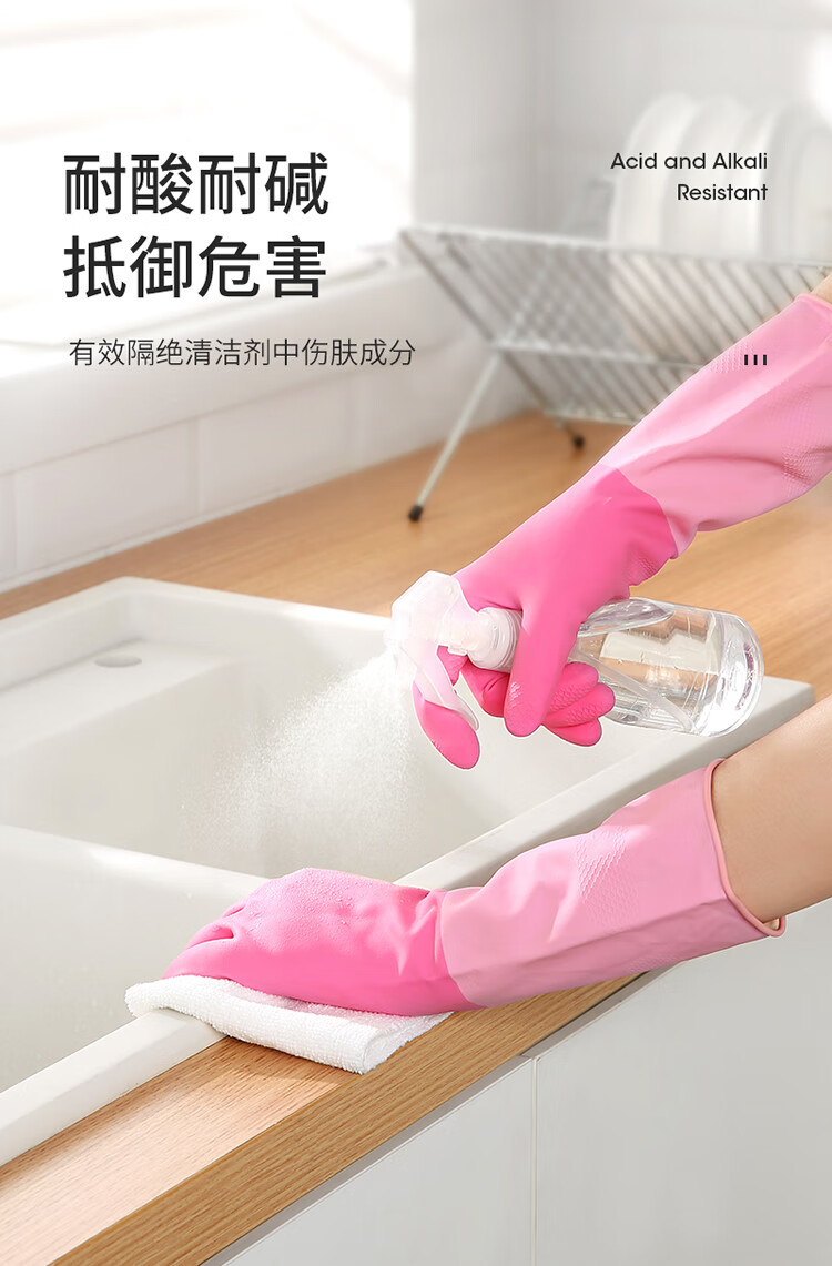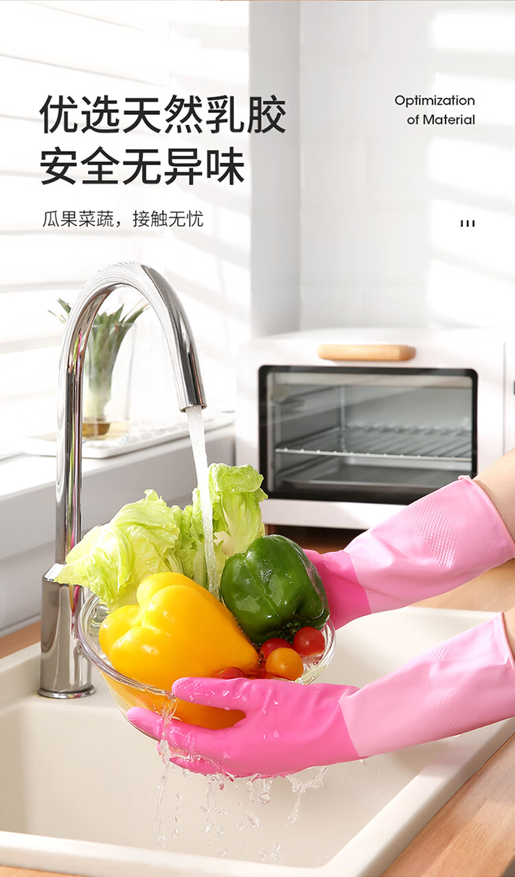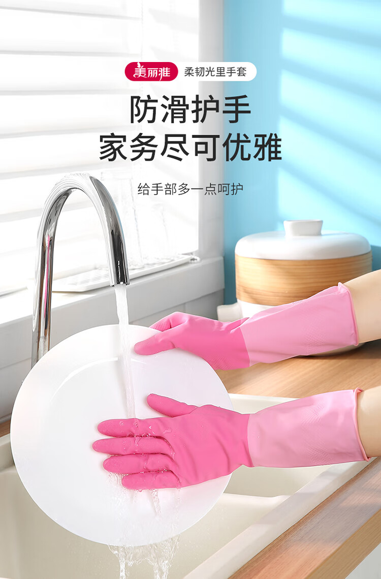 美丽雅家务手套1双大号加长30cm加厚耐用防水防滑乳胶皮洗碗厨房清洁