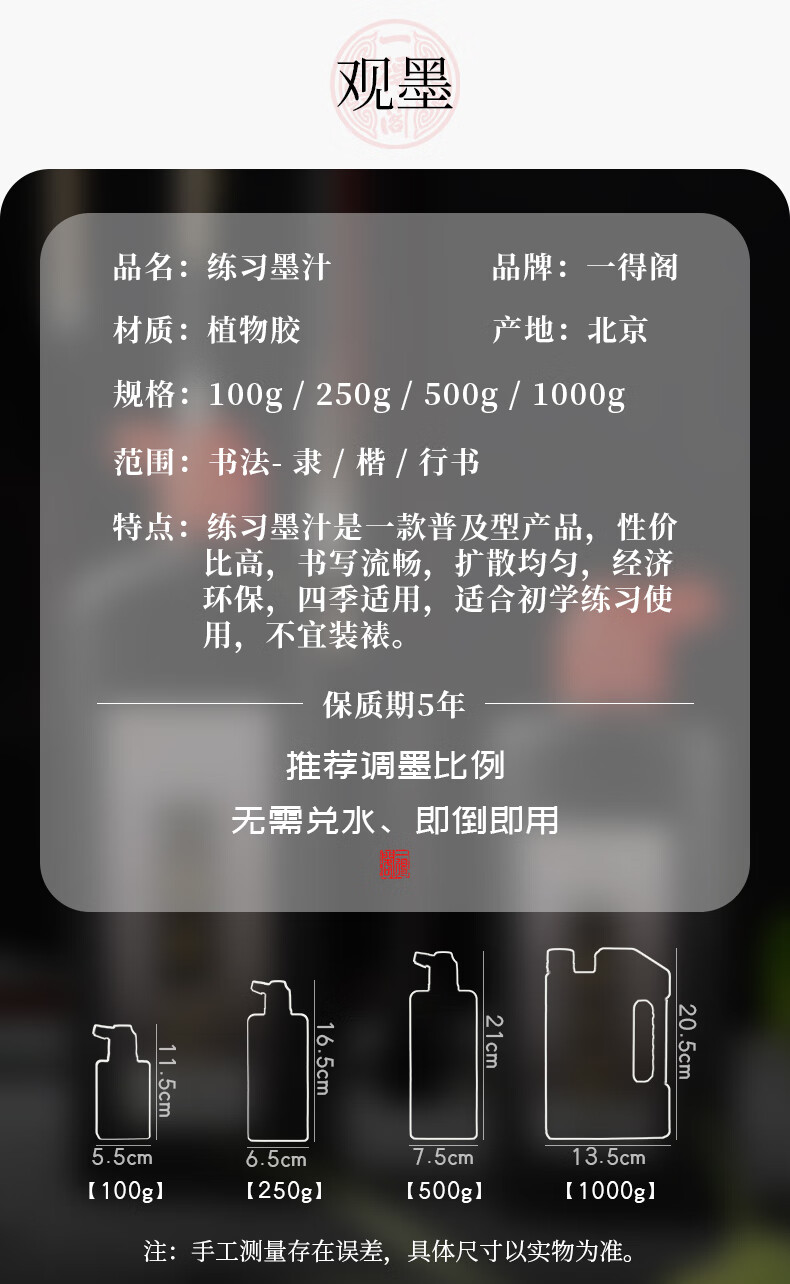 一得阁墨汁文房四宝初学者适合练习书法国画墨汁练习墨汁100g热门商品