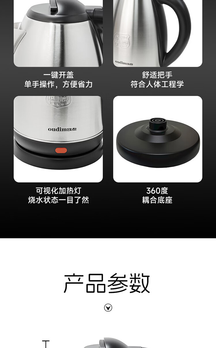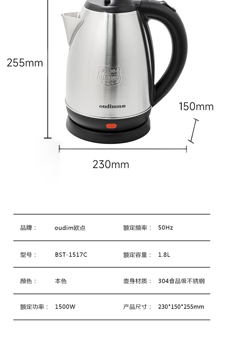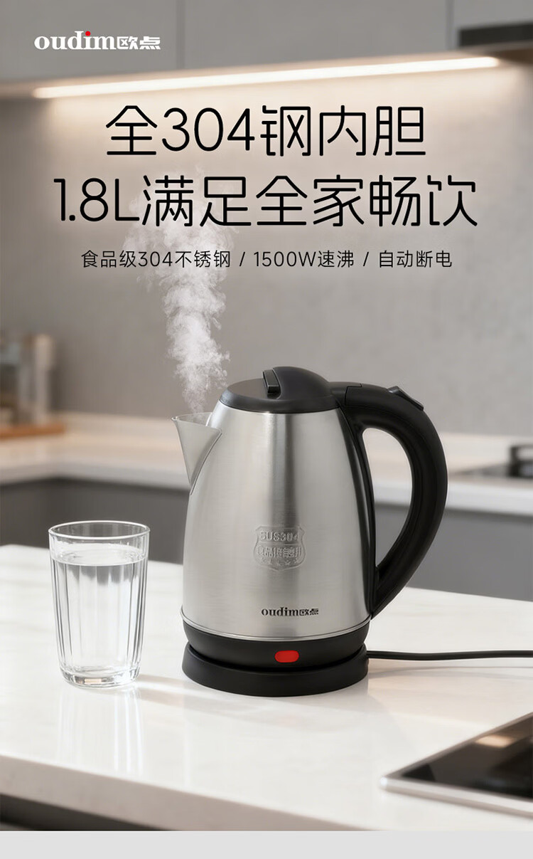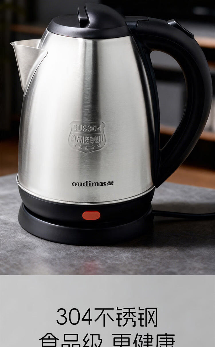 欧点 电热水壶304不锈钢烧水壶自动断电开水壶容量1.8L开水煲电水壶家用煮茶壶 1.8L 【传统款】
