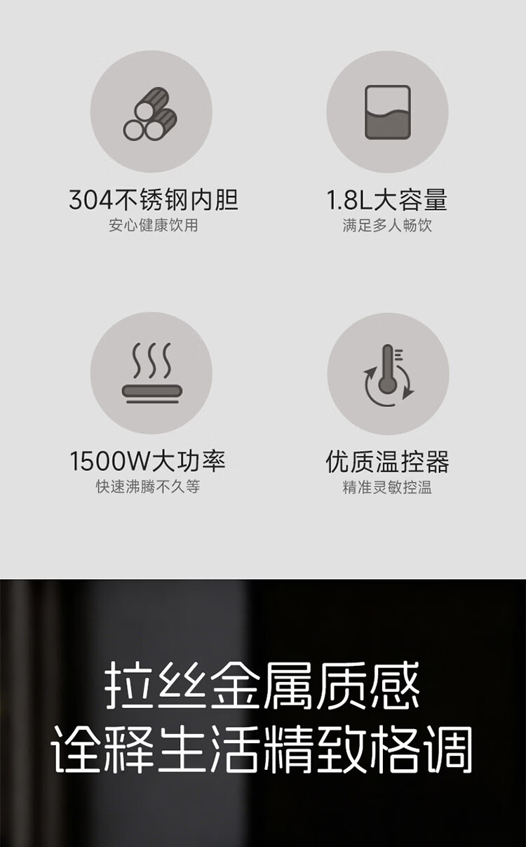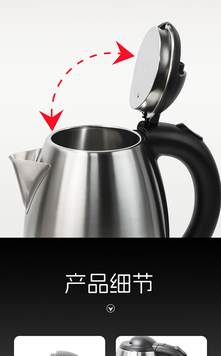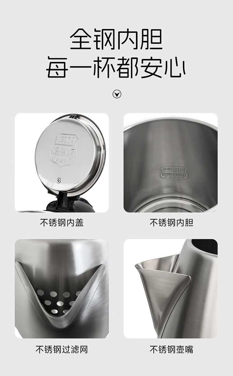 欧点 电热水壶304不锈钢烧水壶自动断电开水壶容量1.8L开水煲电水壶家用煮茶壶 1.8L 【传统款】