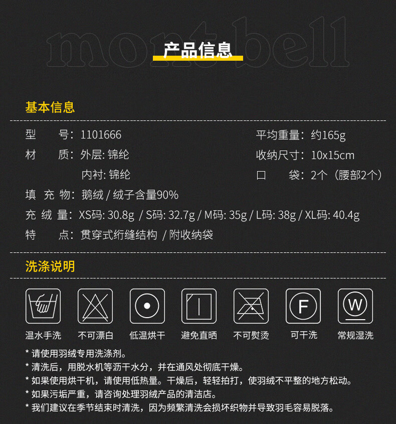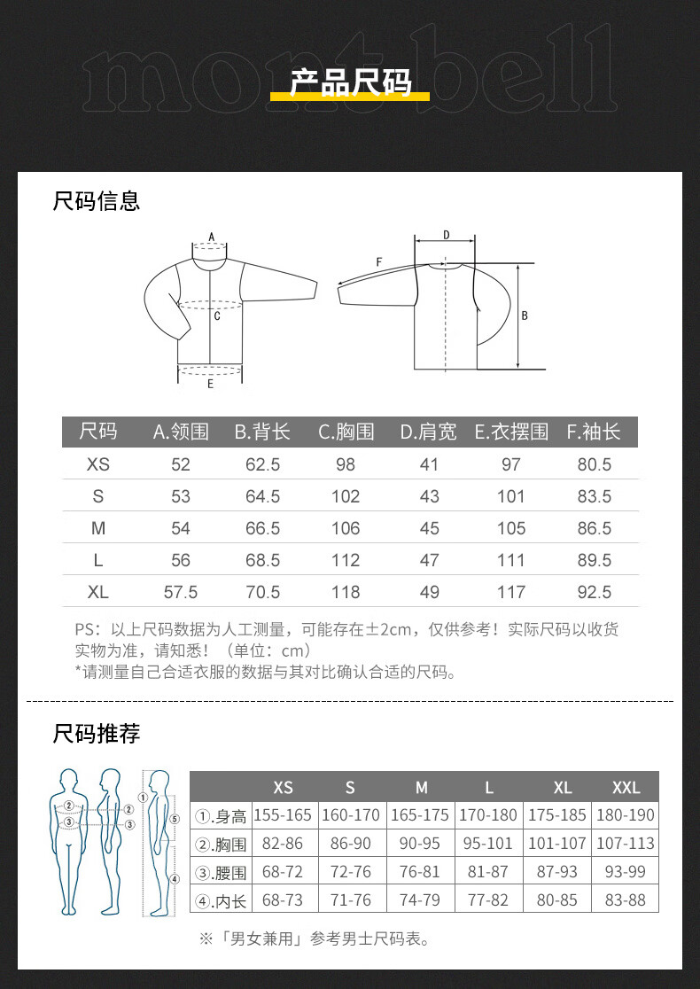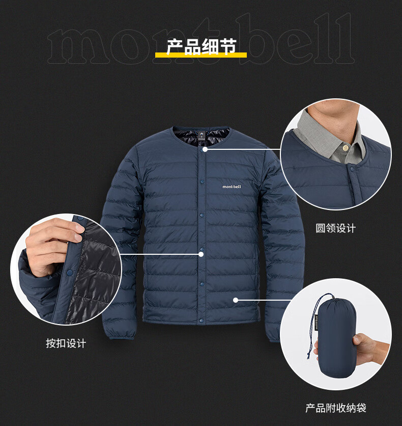 mont·bell 羽绒服男款秋冬轻薄800蓬鹅绒冲锋衣内胆保暖舒适外套 1101666 BL蓝色 XL