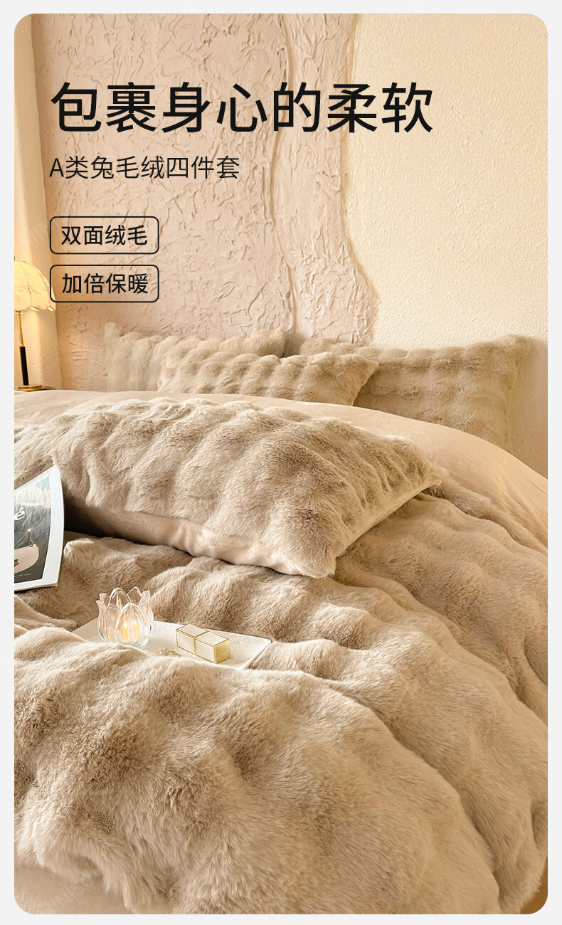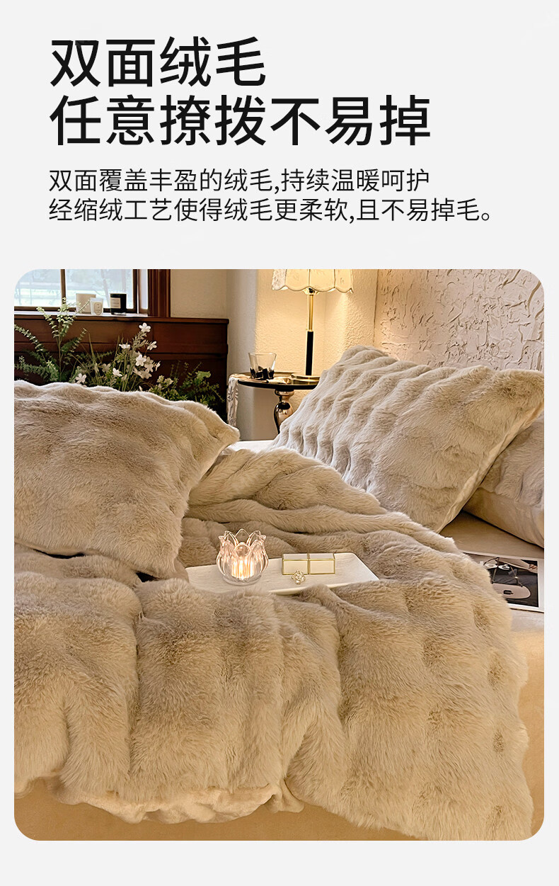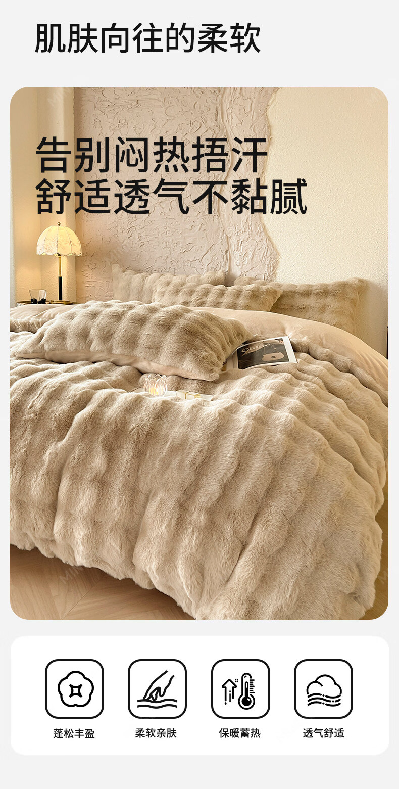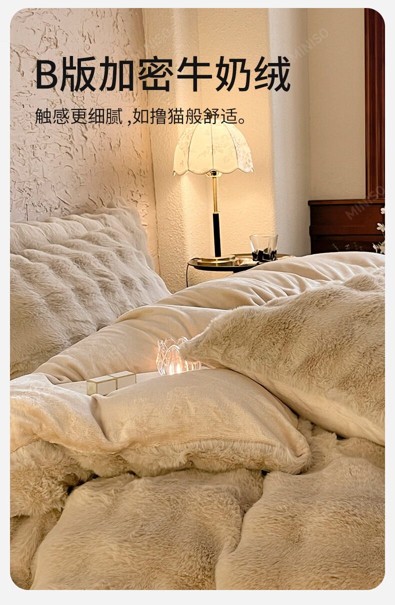 名创优品(MINISO)仿兔绒被套单件150x200x230cm 冬季牛奶绒被罩双面加厚床品四件套 MINISO-暖白 被套单件:150x200cm