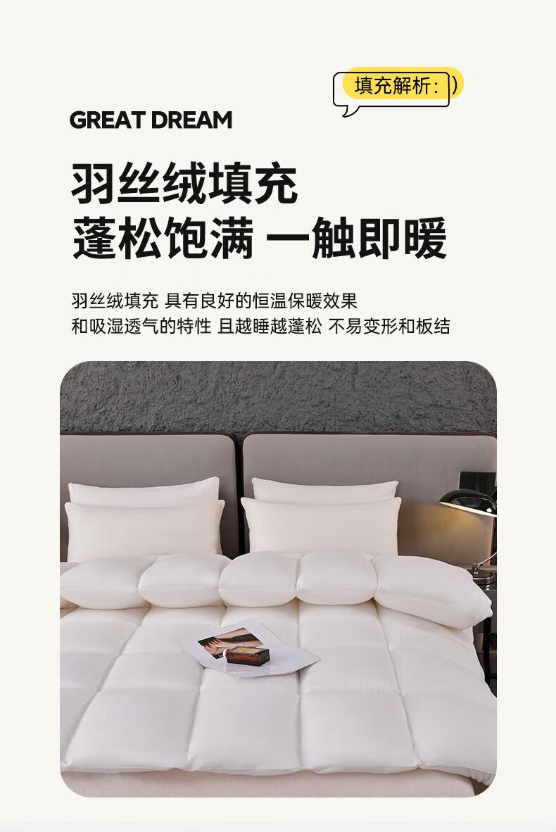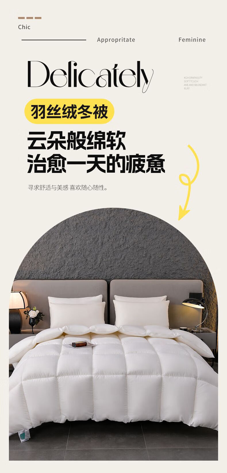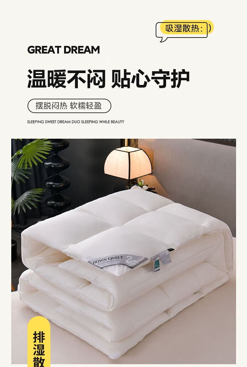 恒源祥五星级酒店羽丝绒被白鹅丝绒被子冬被加厚保暖单双人秋冬季棉被芯 羽白 150*200cm 【3斤空调被】