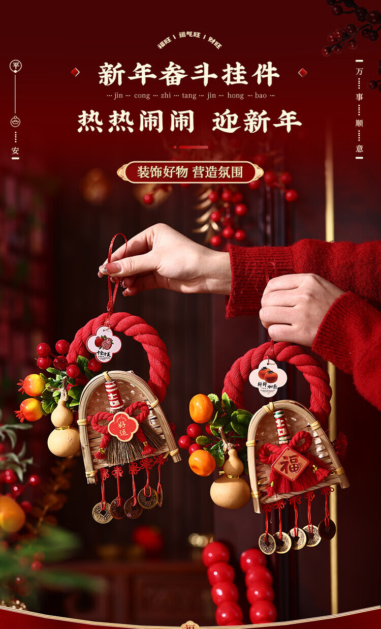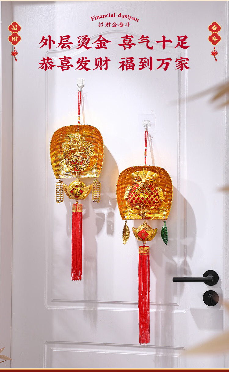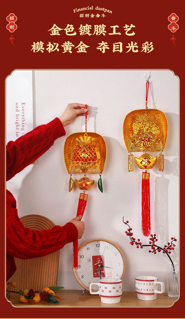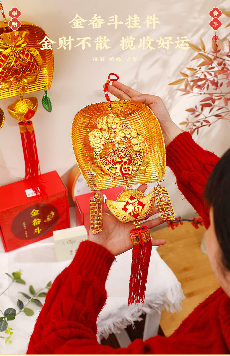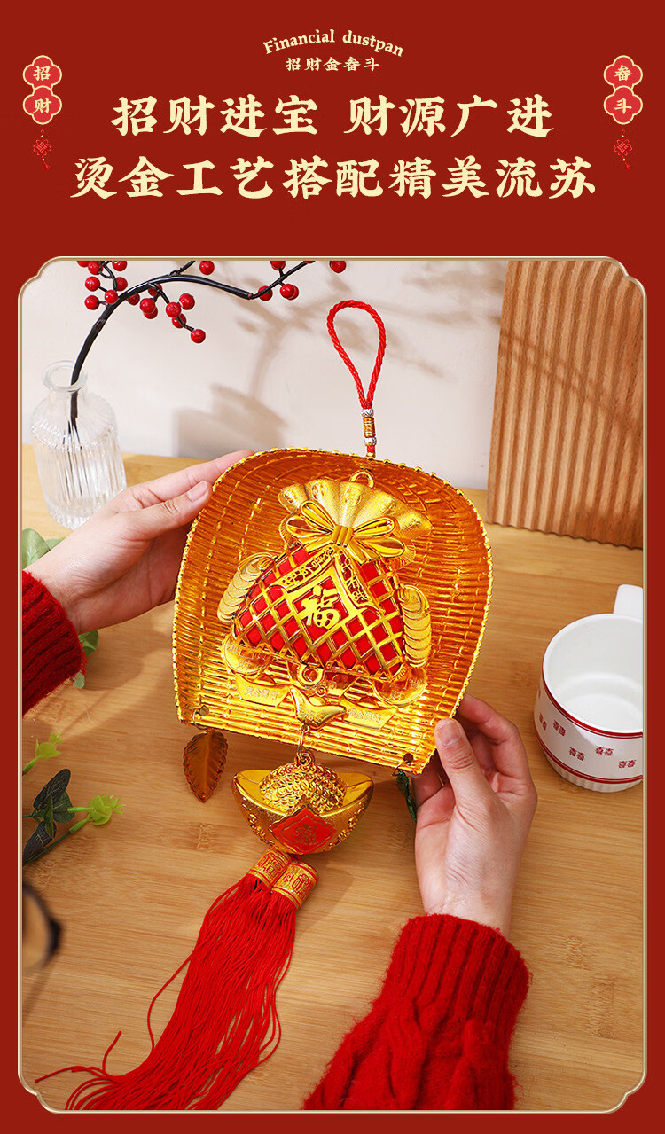 OYKTN2026马年春节新年挂件室内客厅金畚斗装饰喜庆过年新款金簸箕挂饰 小号鞭炮金畚斗