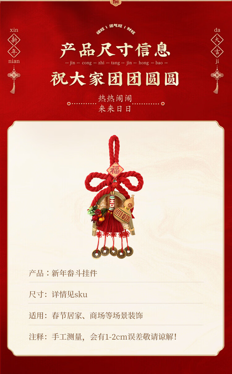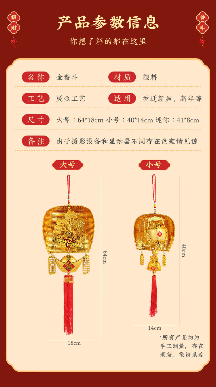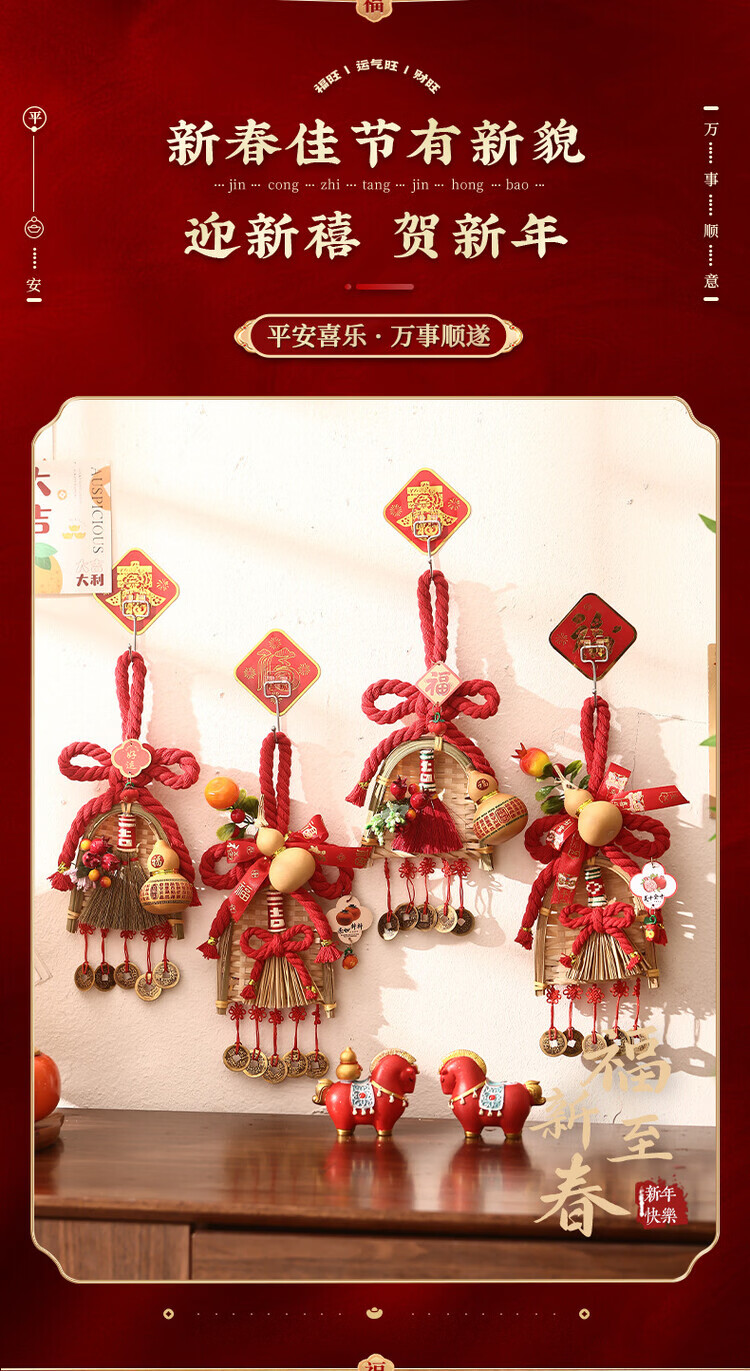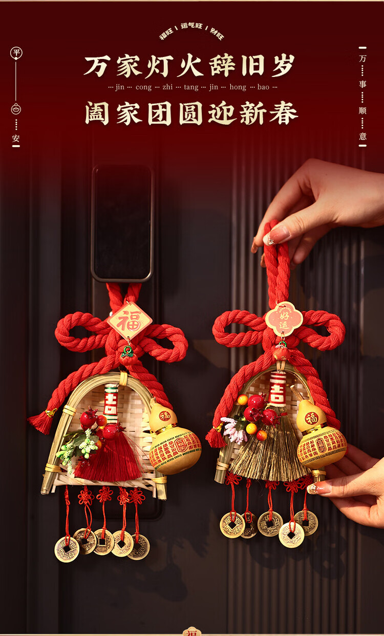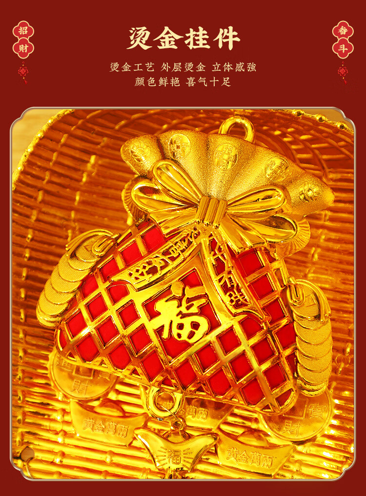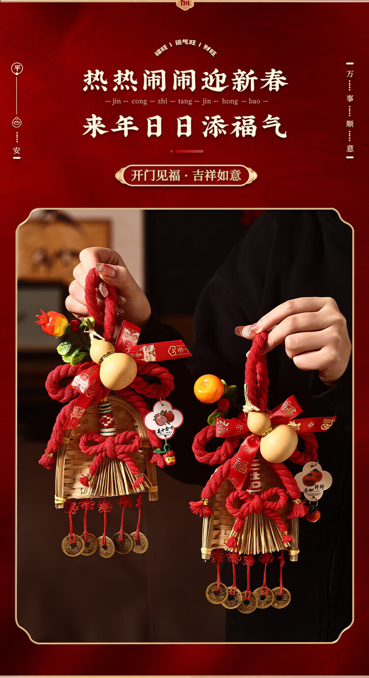 OYKTN2026马年春节新年挂件室内客厅金畚斗装饰喜庆过年新款金簸箕挂饰 小号鞭炮金畚斗