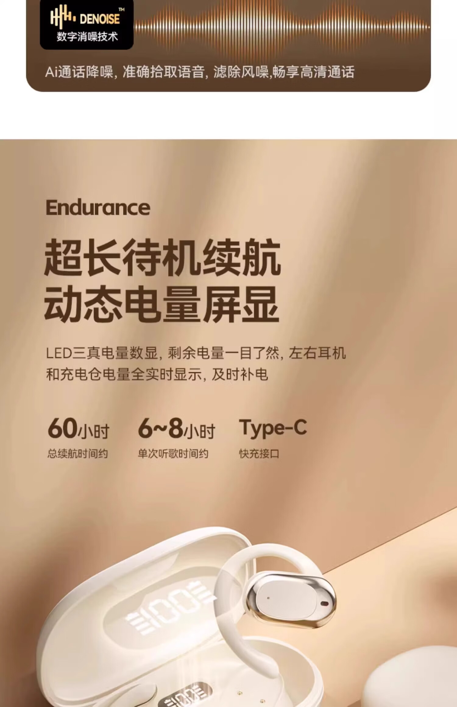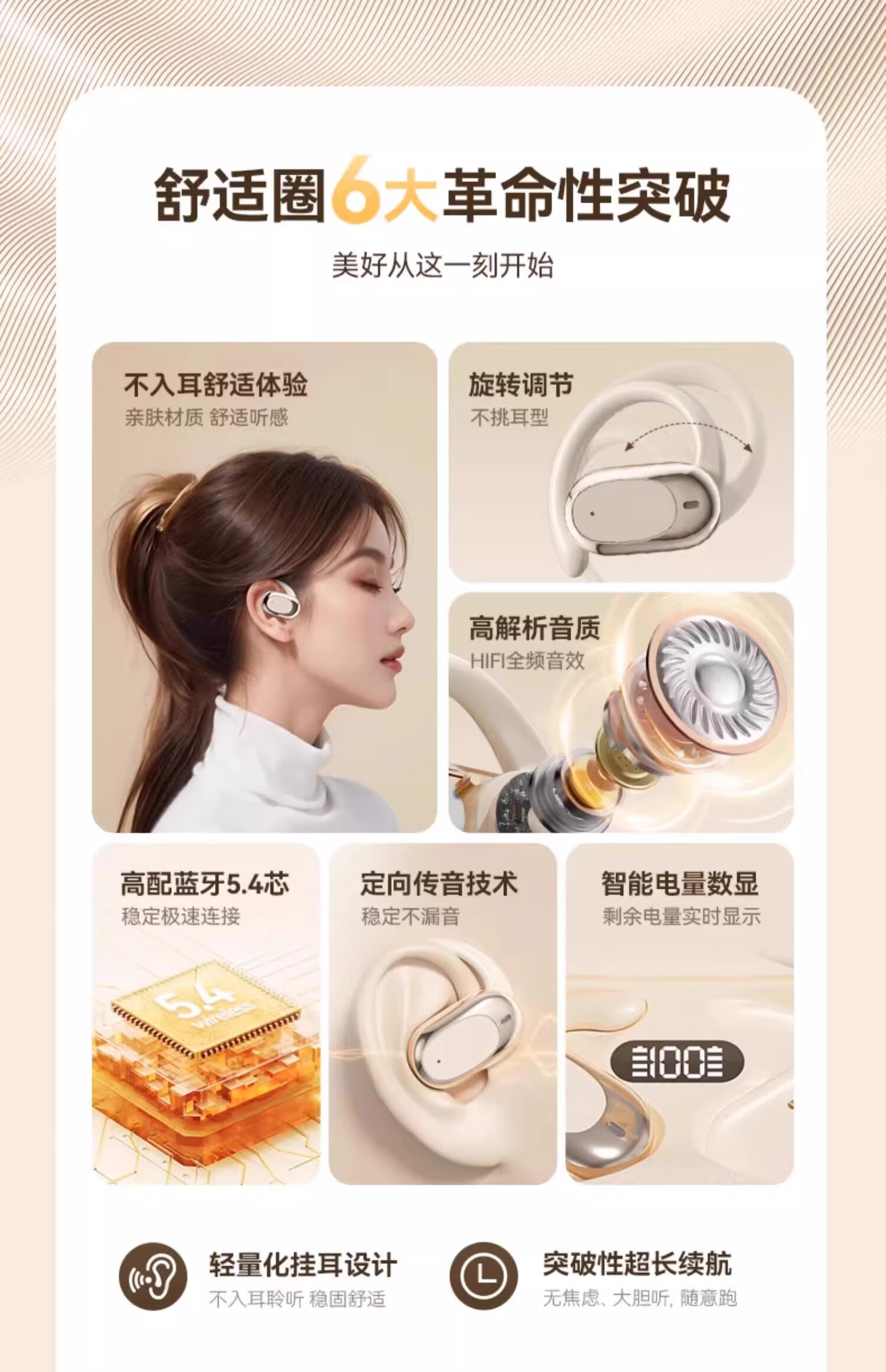 艾勒丝汀【柏林之声丨顶配新款】蓝牙耳机骨传导概念挂耳式无线开放式不入耳运动降噪适用于补苹果华为小米 【石墨黑】开放不漏音丨久戴不痛 【9D杜比音效丨CVC通话降噪】