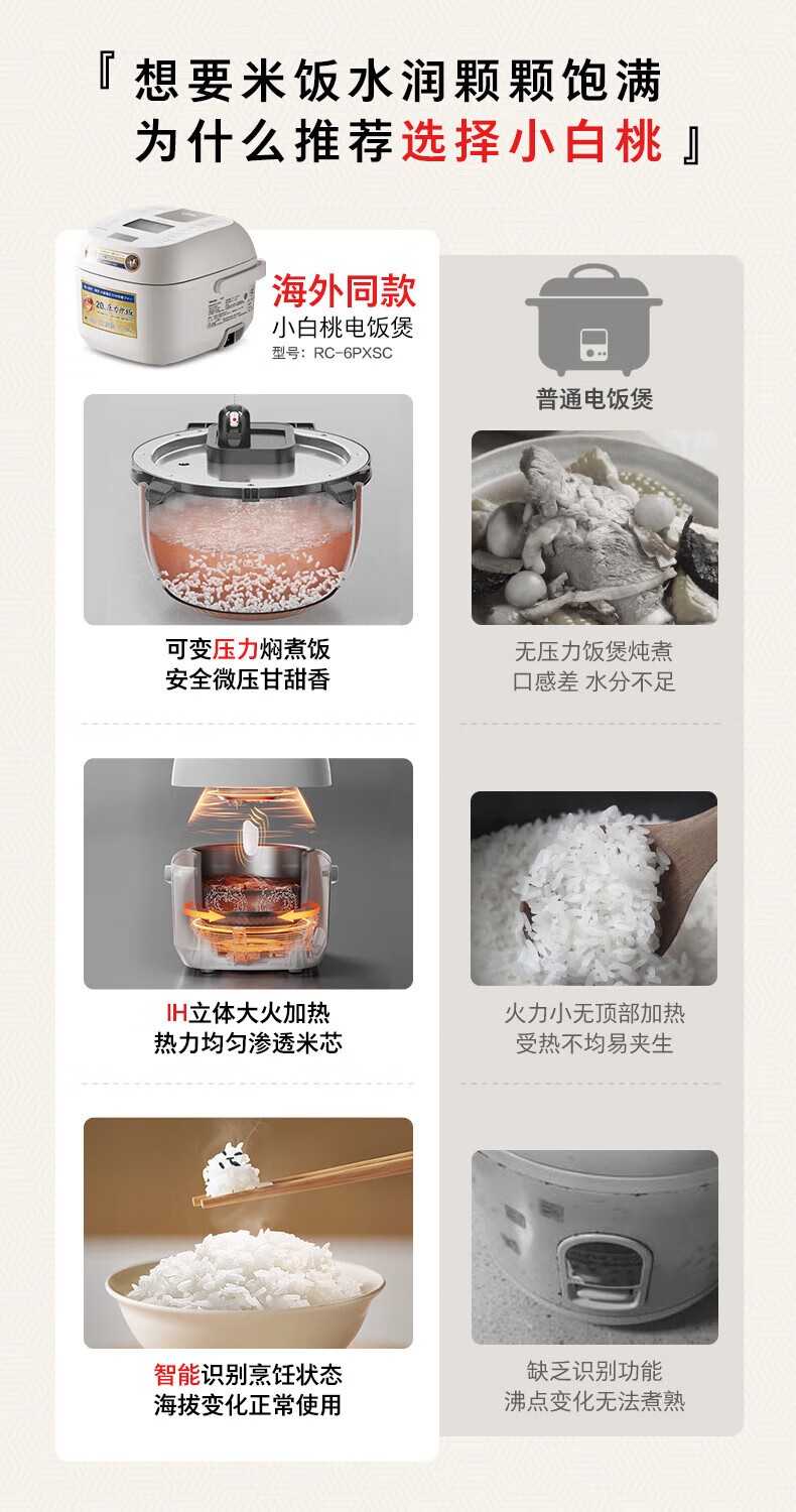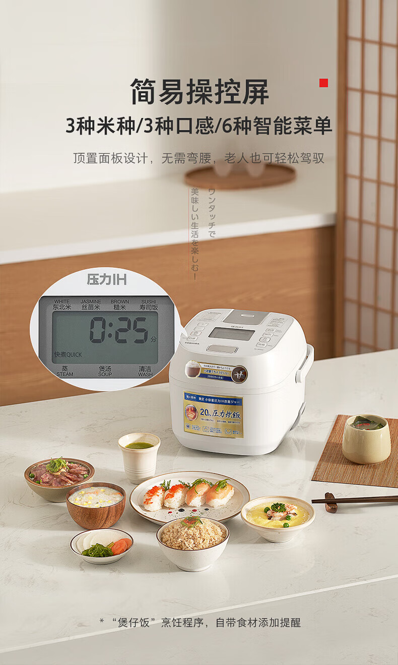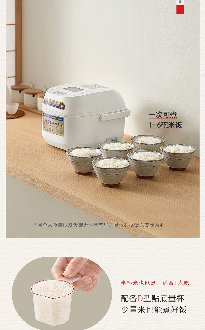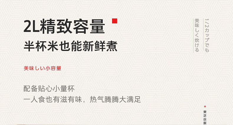 东芝小白桃迷你鲜饭煲 进口不沾涂层 多功能家用智能IH加热微压力小型电饭锅1-2人 日本同款 单内胆丨 2L 丨RC-6PXSC