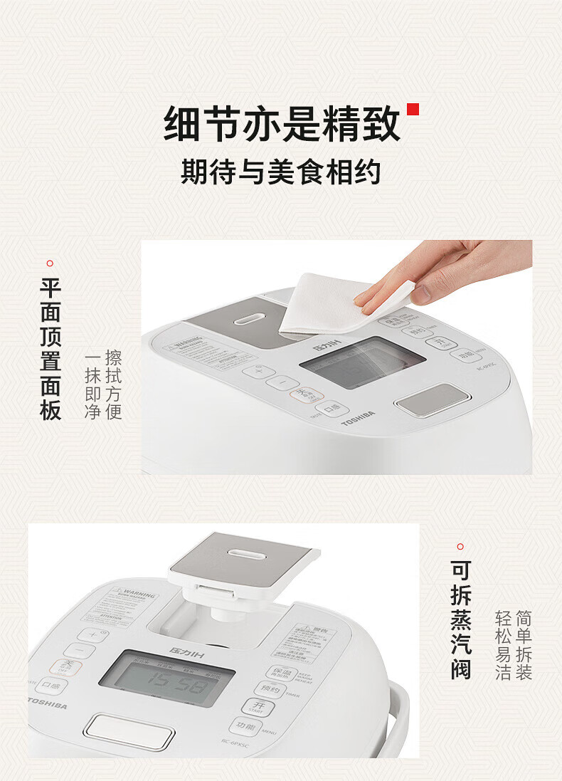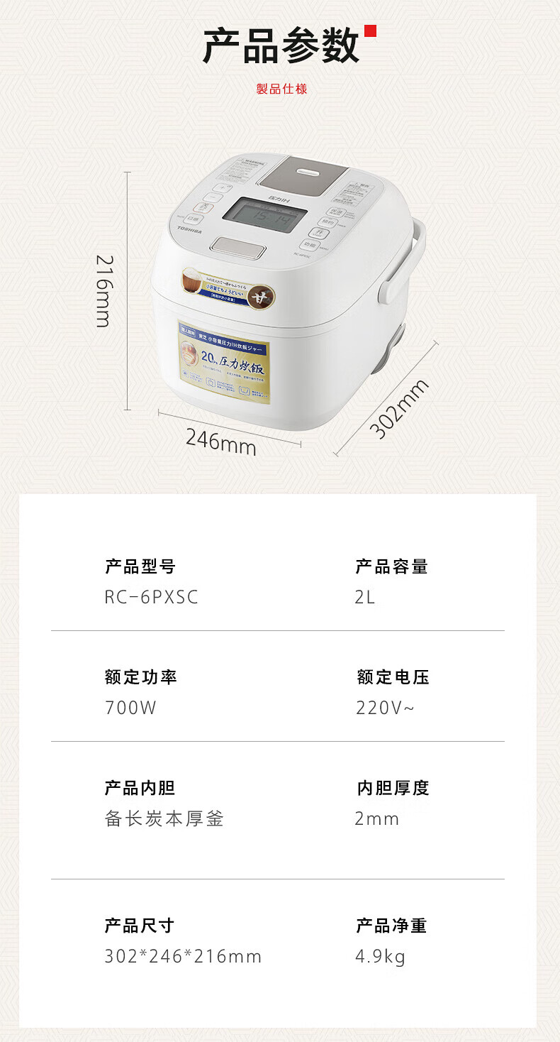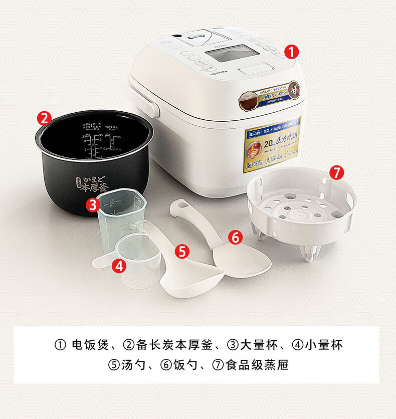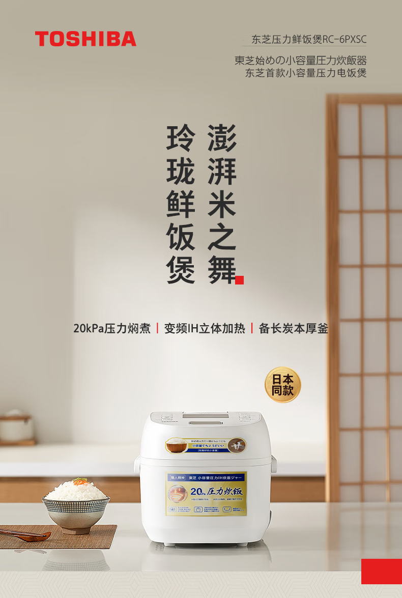 东芝小白桃迷你鲜饭煲 进口不沾涂层 多功能家用智能IH加热微压力小型电饭锅1-2人 日本同款 单内胆丨 2L 丨RC-6PXSC