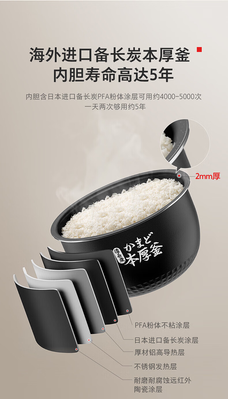 美的(Midea)家用电饭煲电饭锅1-2-3-4人用柴火饭不粘锅 3升4升迷你小型智能微压焖香煮饭小米粥电饭煲蒸煮一体 【25年节能款】微压焖香 3L