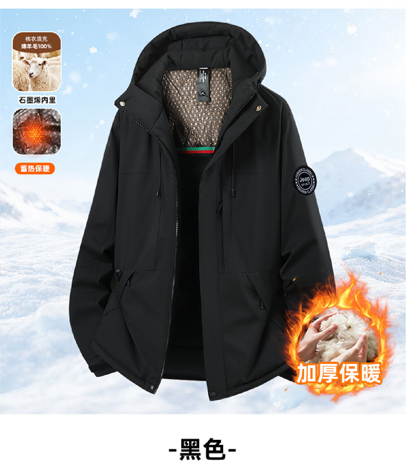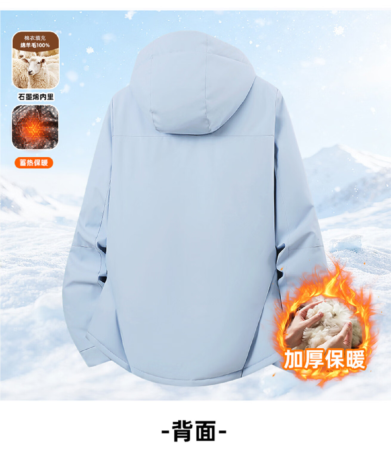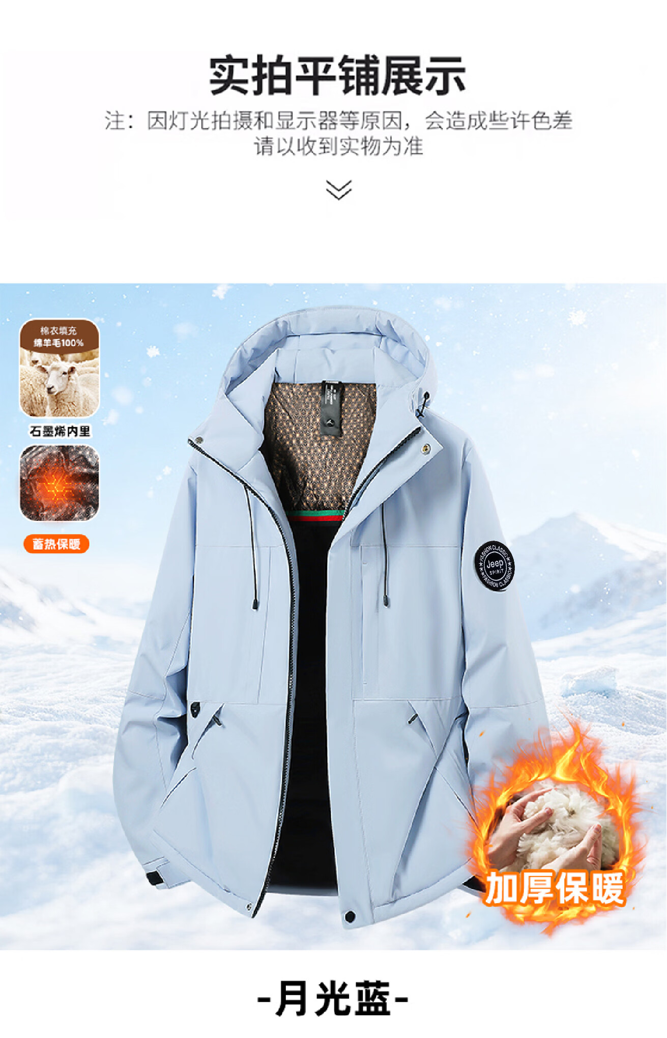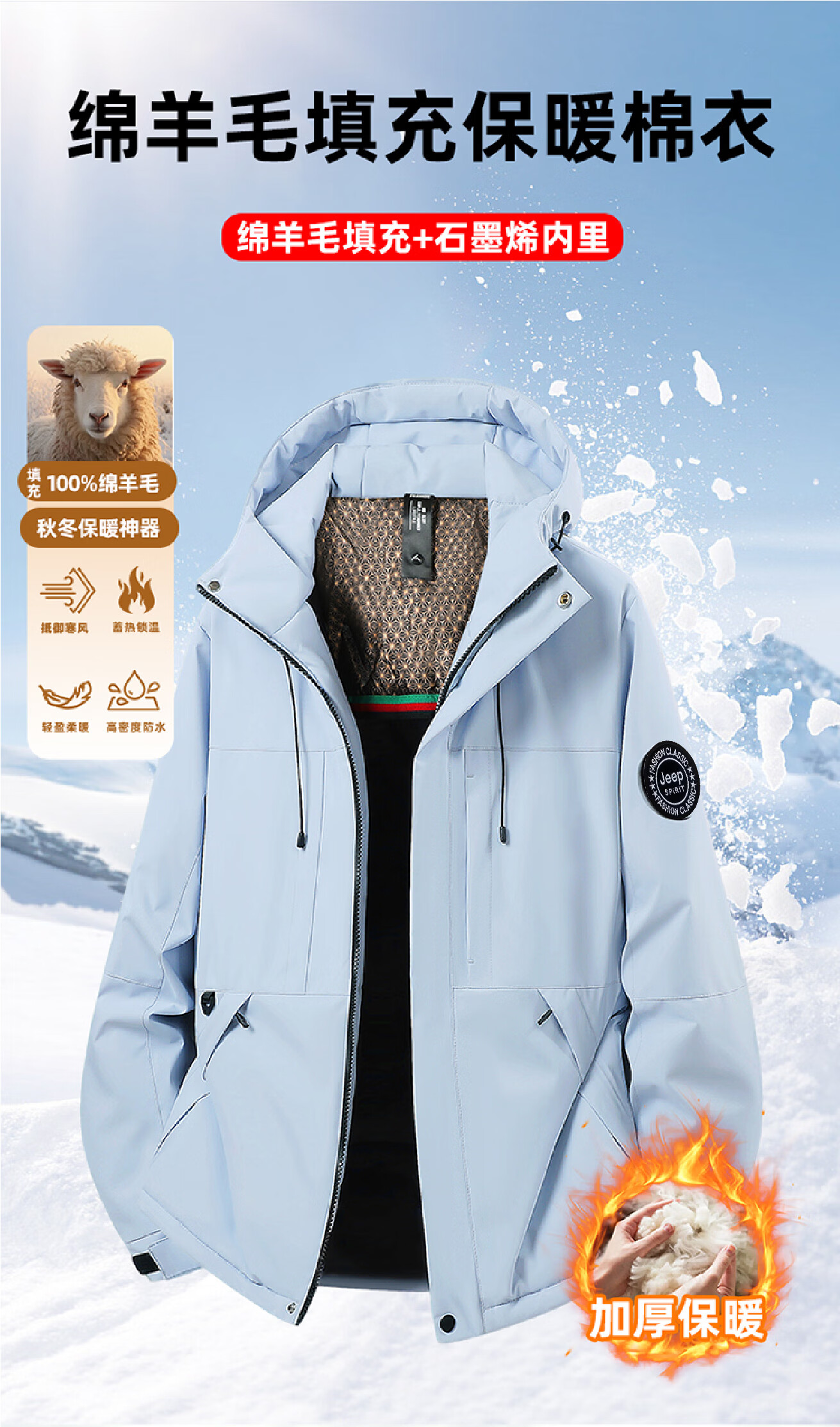 JEEP棉服男宽松百搭冬季棉衣石墨烯户外登山防风防泼水冲锋夹克团购 月光蓝 2XL