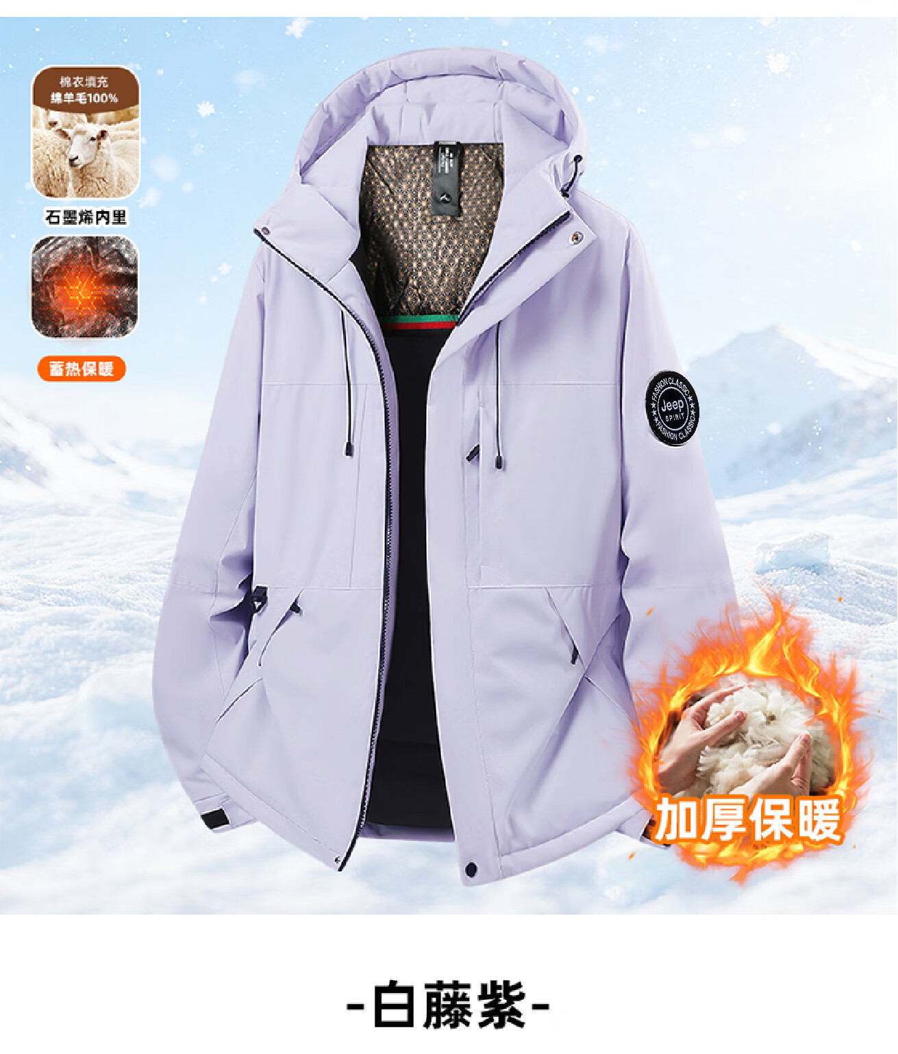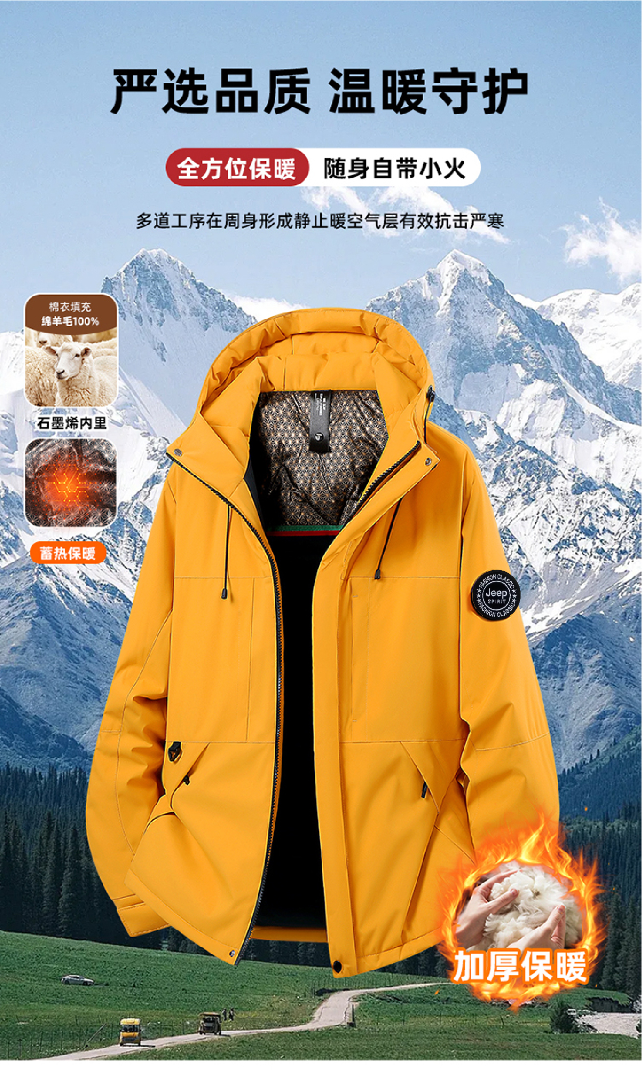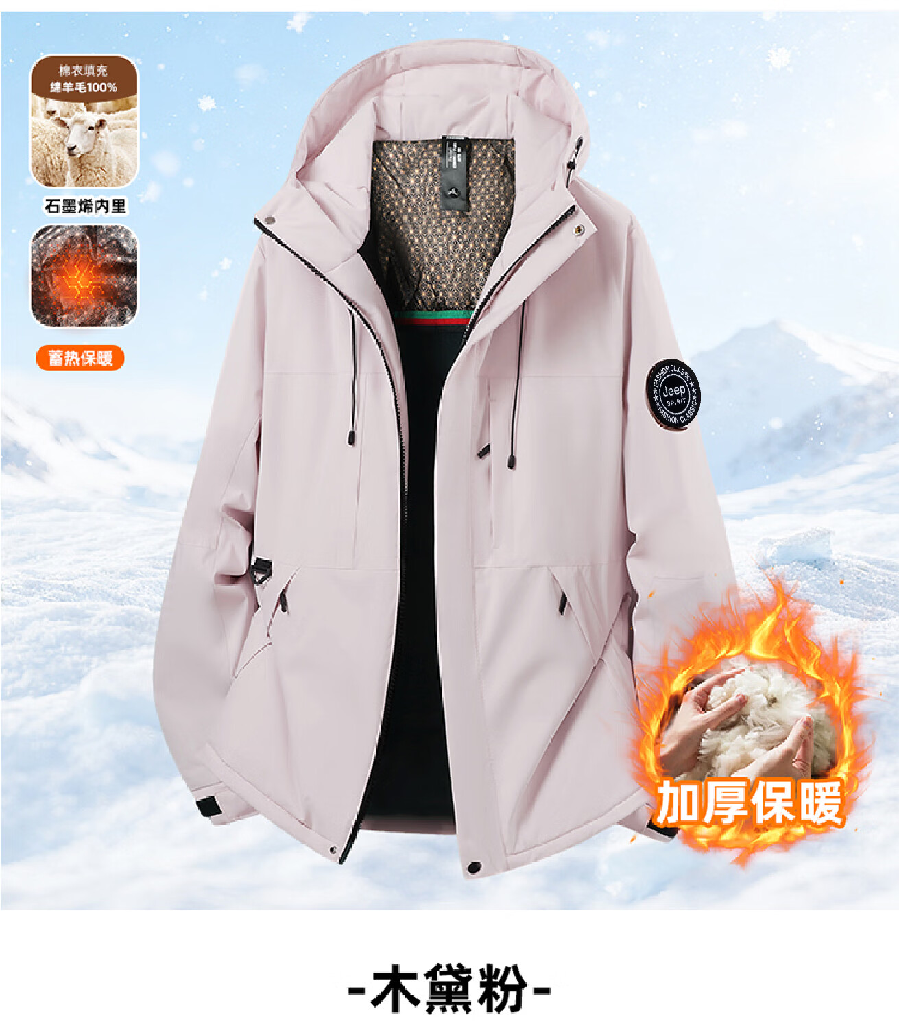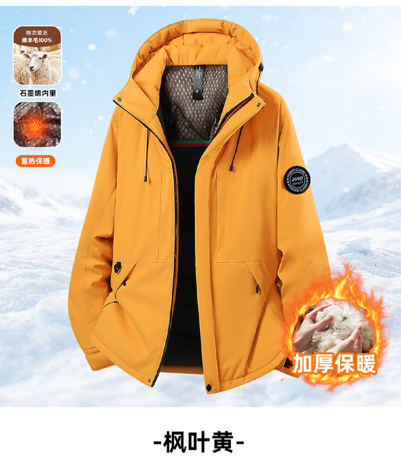 JEEP棉服男宽松百搭冬季棉衣石墨烯户外登山防风防泼水冲锋夹克团购 月光蓝 2XL