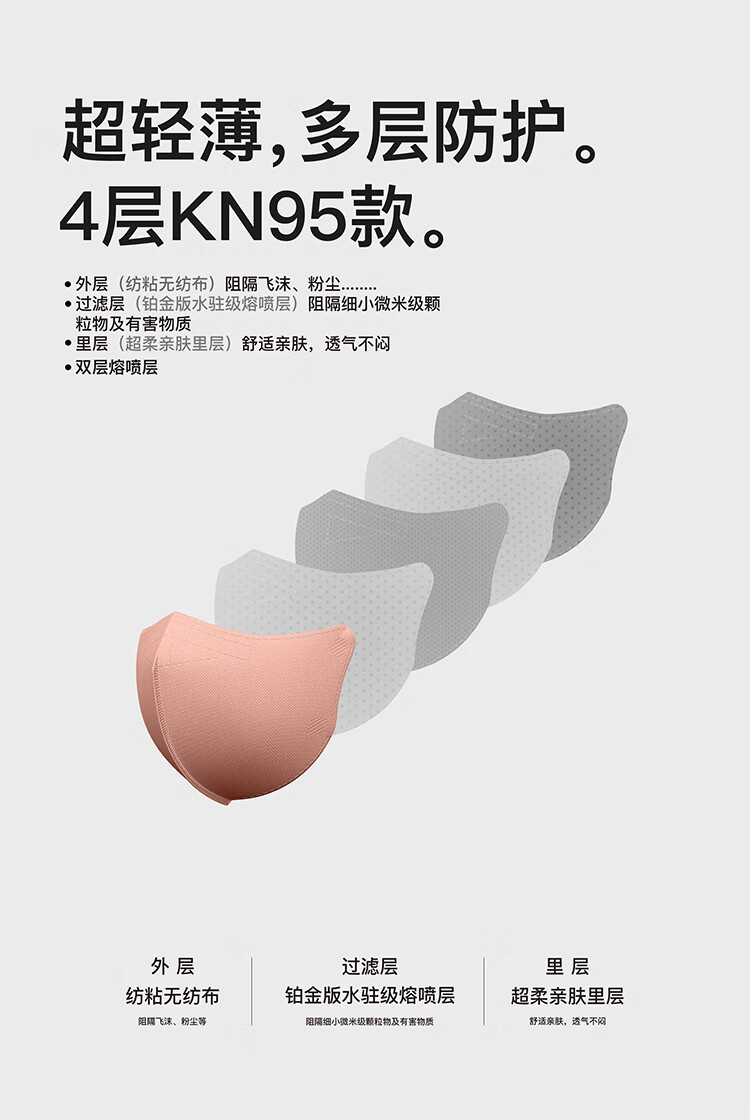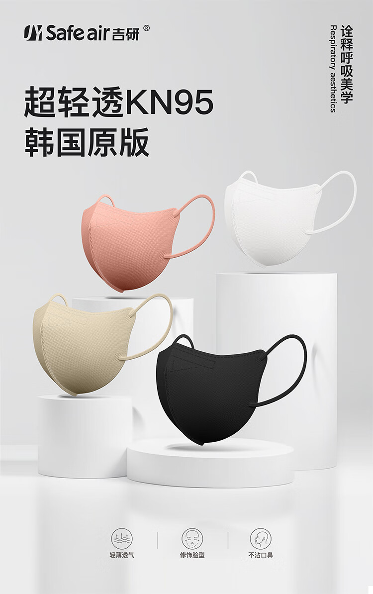 吉研KN95防护口罩3D立体防尘飞沫细菌四层防护高颜值舒适透气独立包装 珊瑚粉【30只/盒】